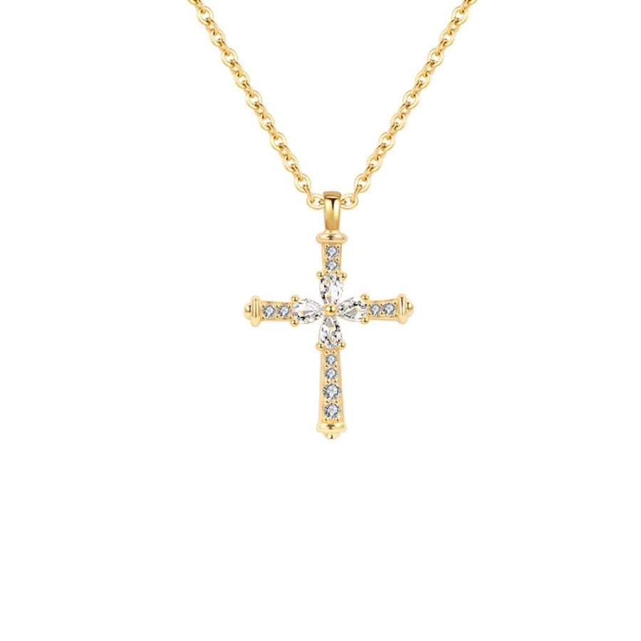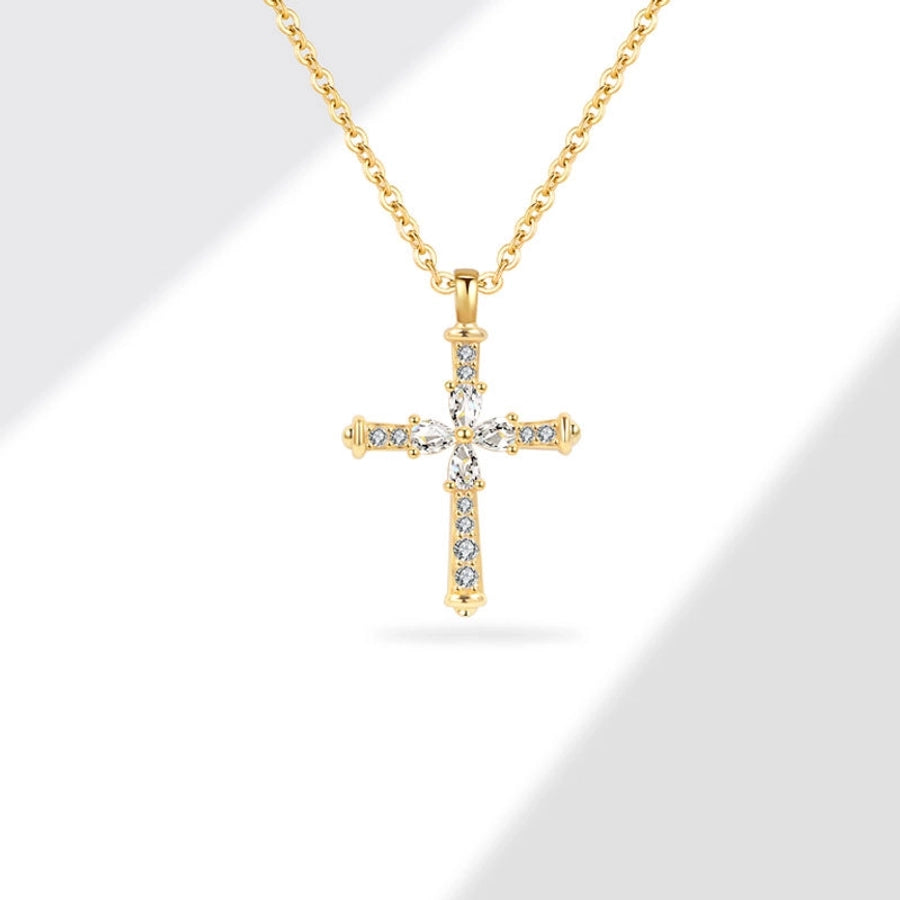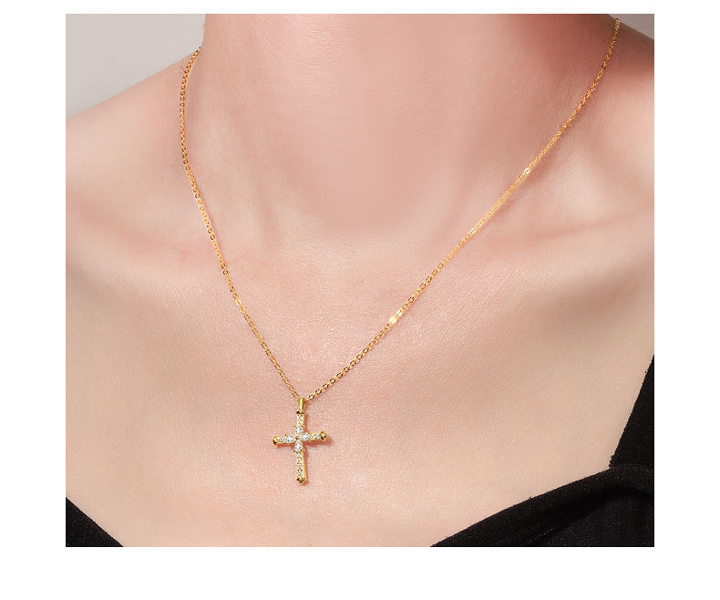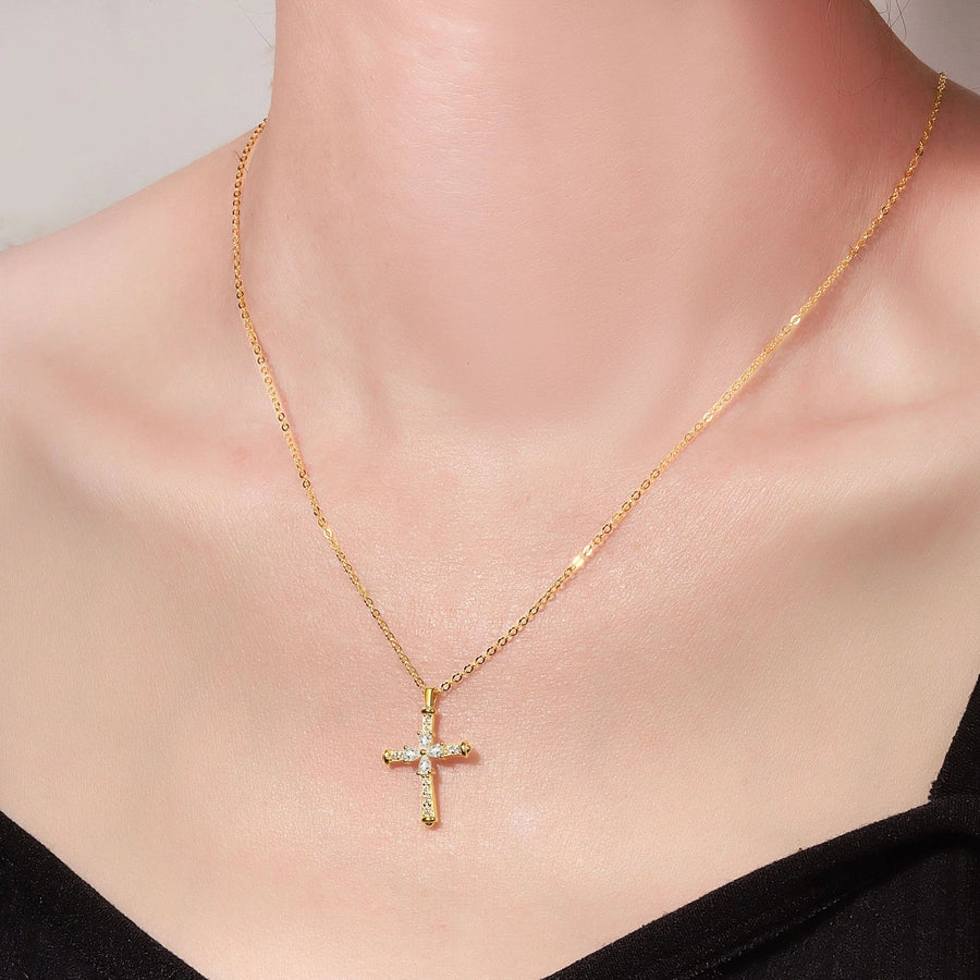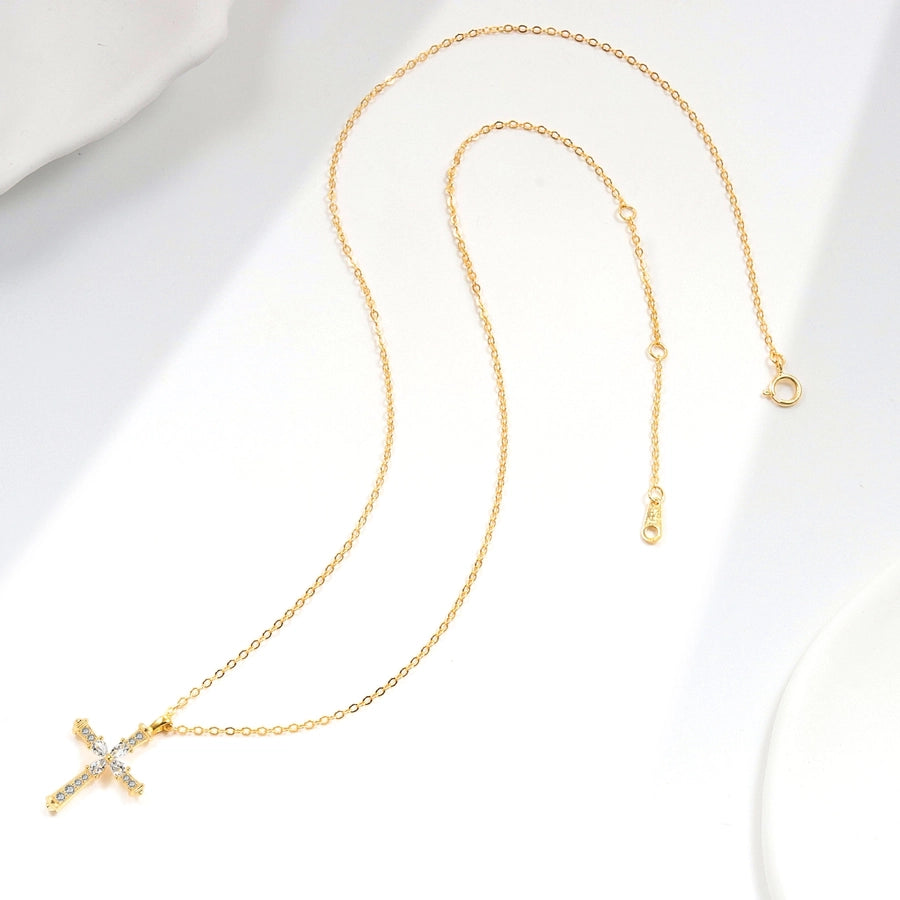 925 Sterling Silver Zircon cable chain Inlay Cross Pendant Necklace