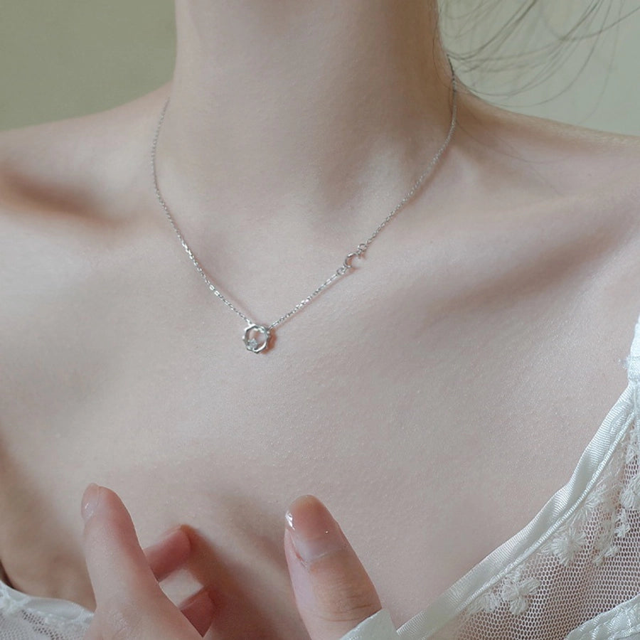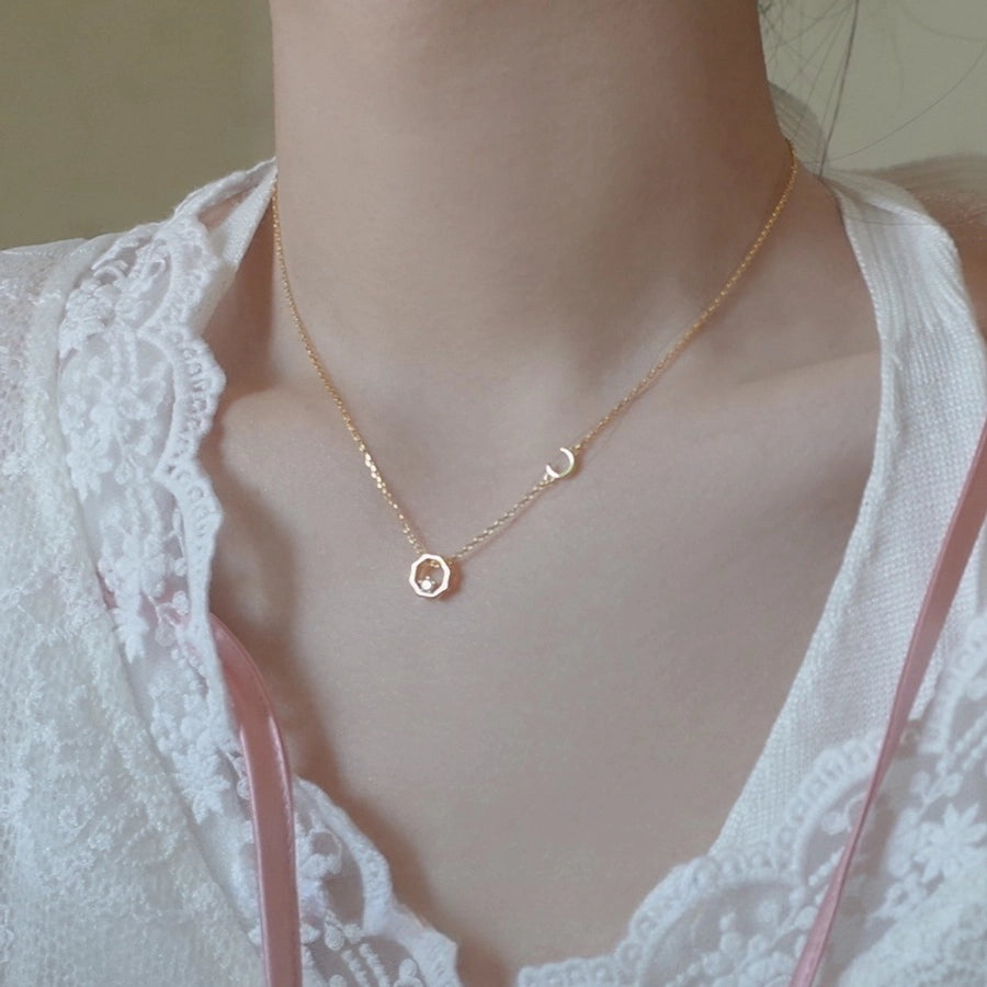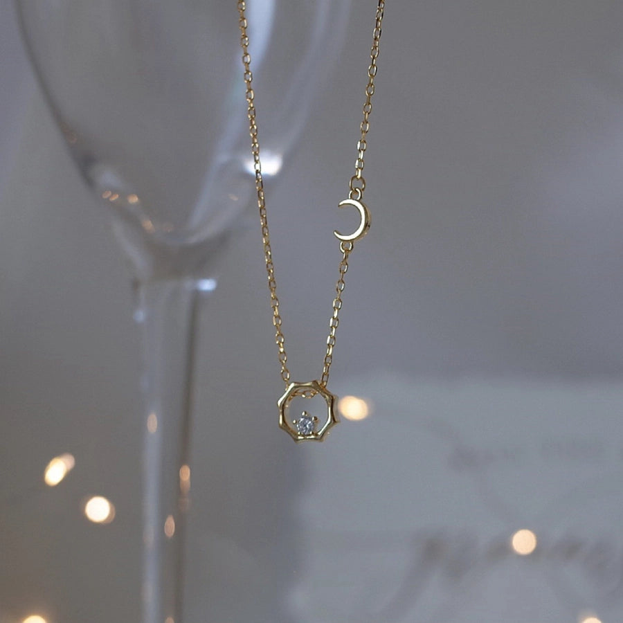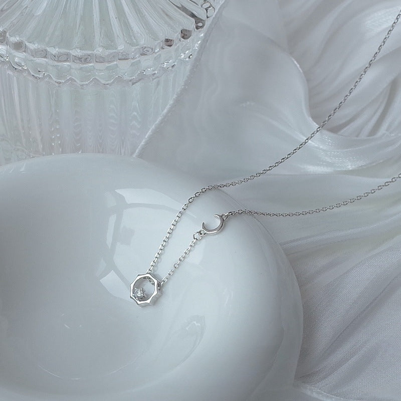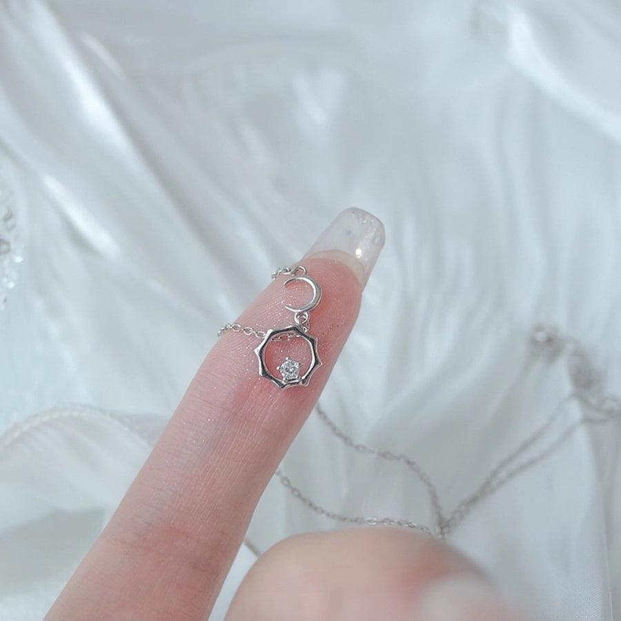 925 Sterling Silver Zircon cable chain Inlay Geometric Moon Necklace