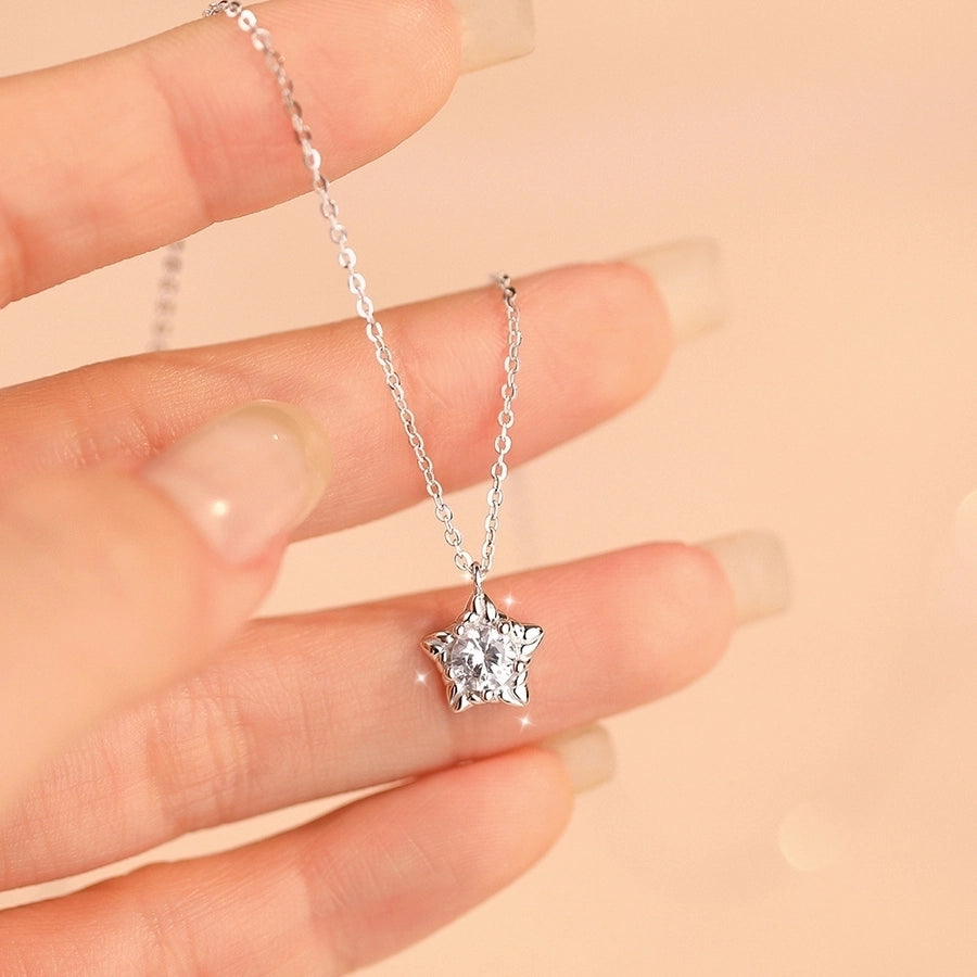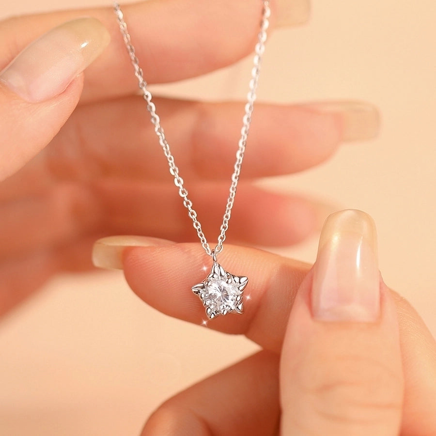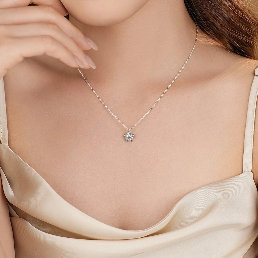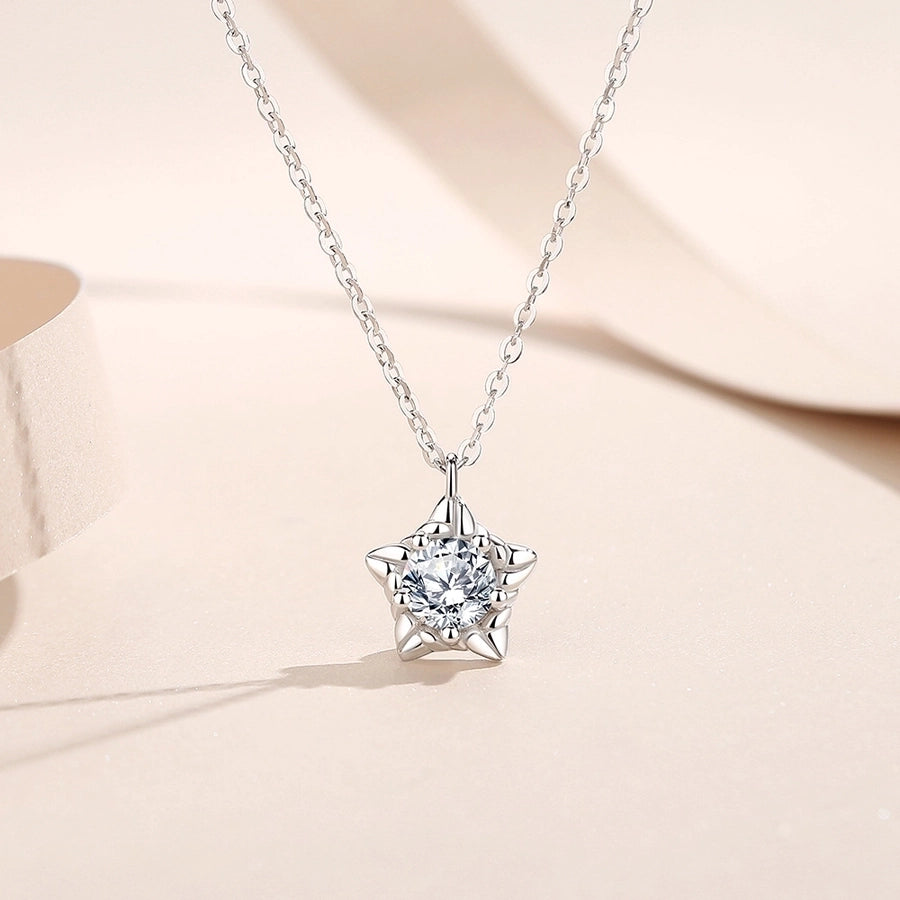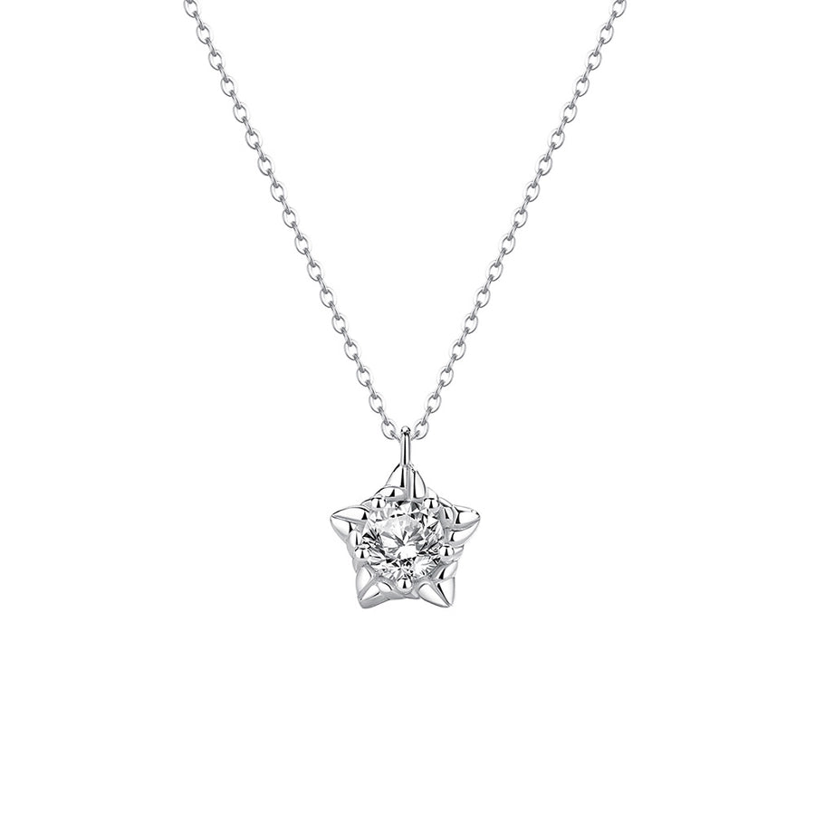 925 Sterling Silver Zircon cable chain Inlay Pentagram Pendant Necklace