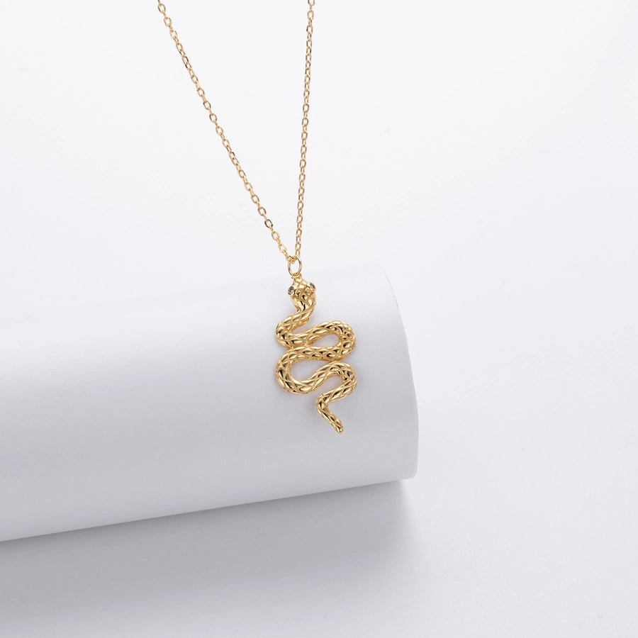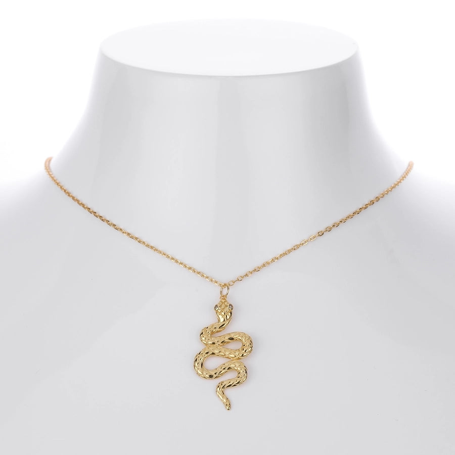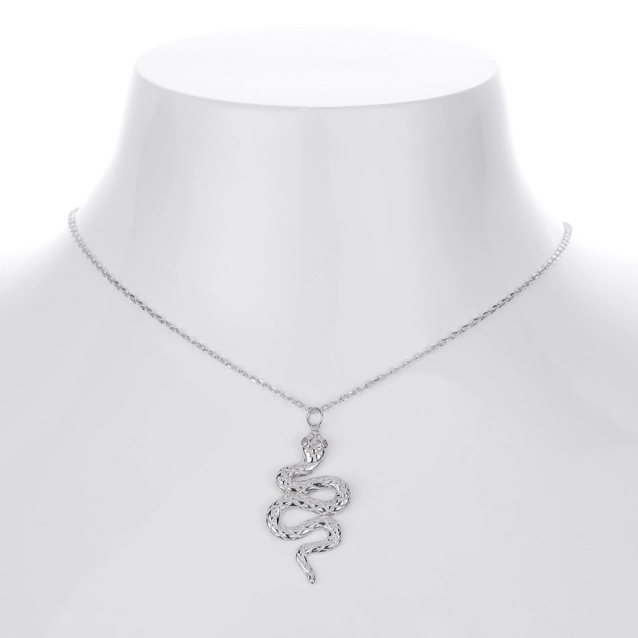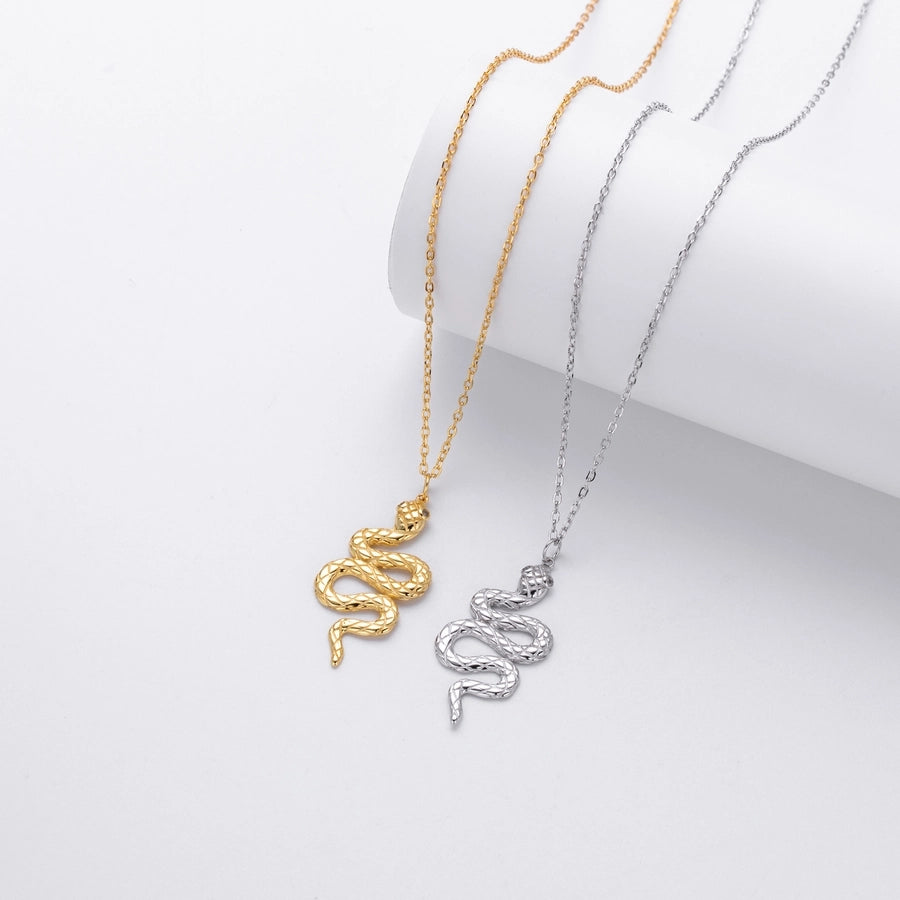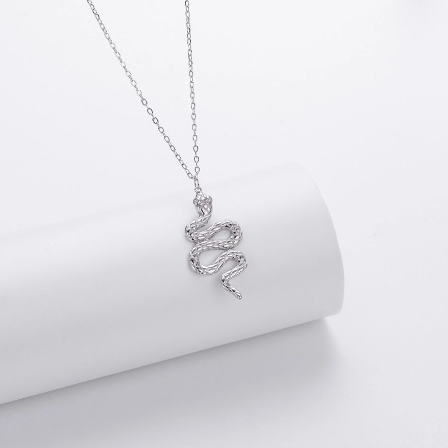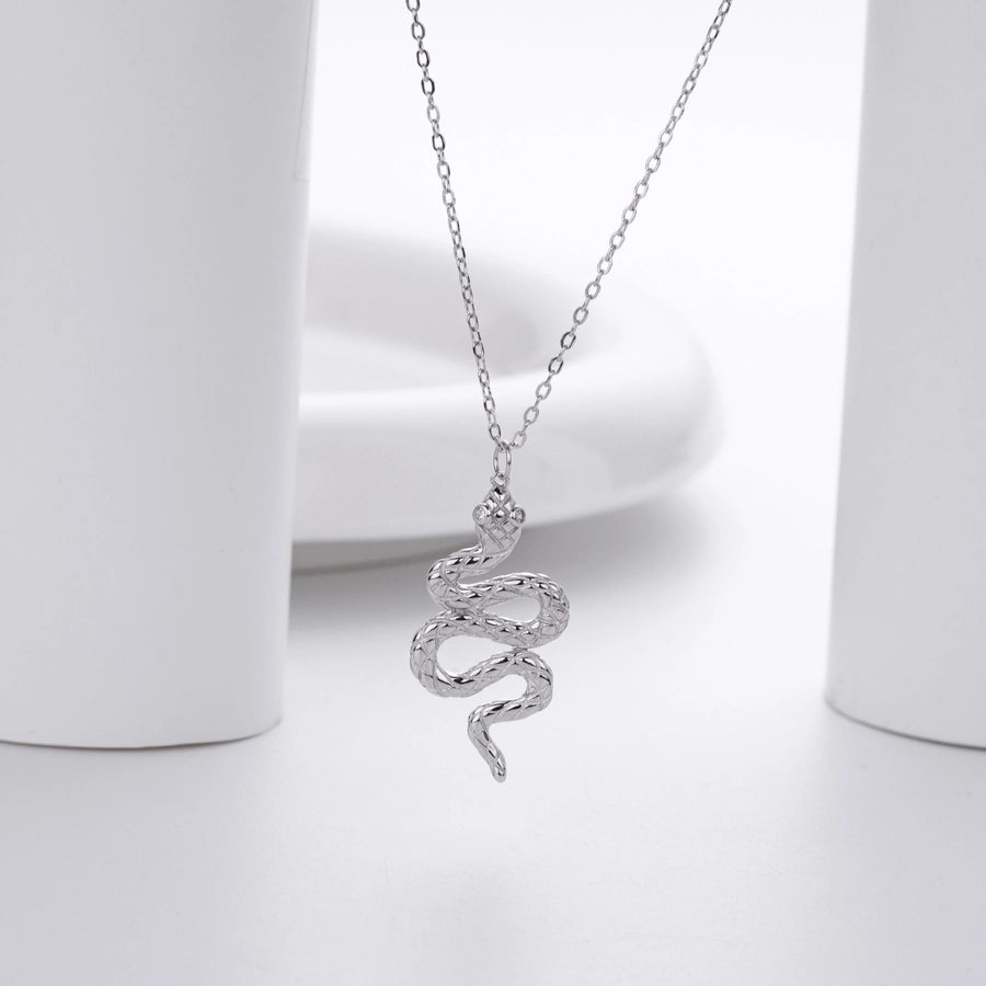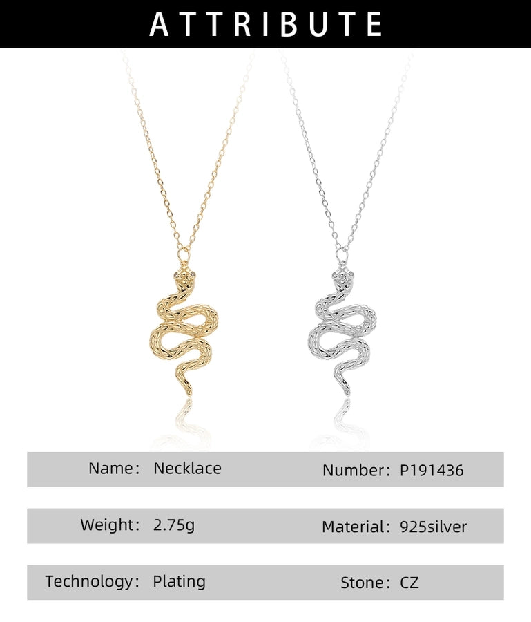 925 Sterling Silver Zircon cable chain Inlay Snake Pendant Necklace