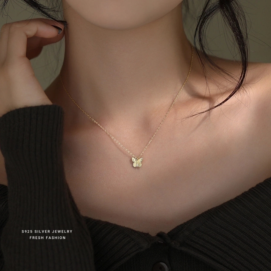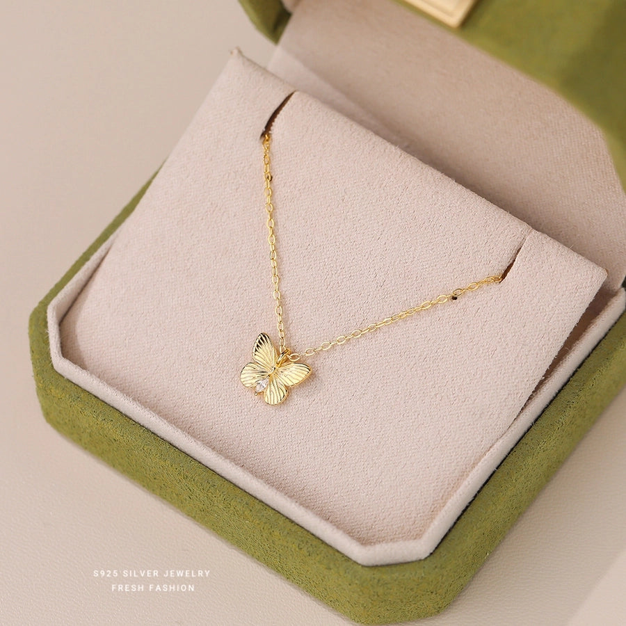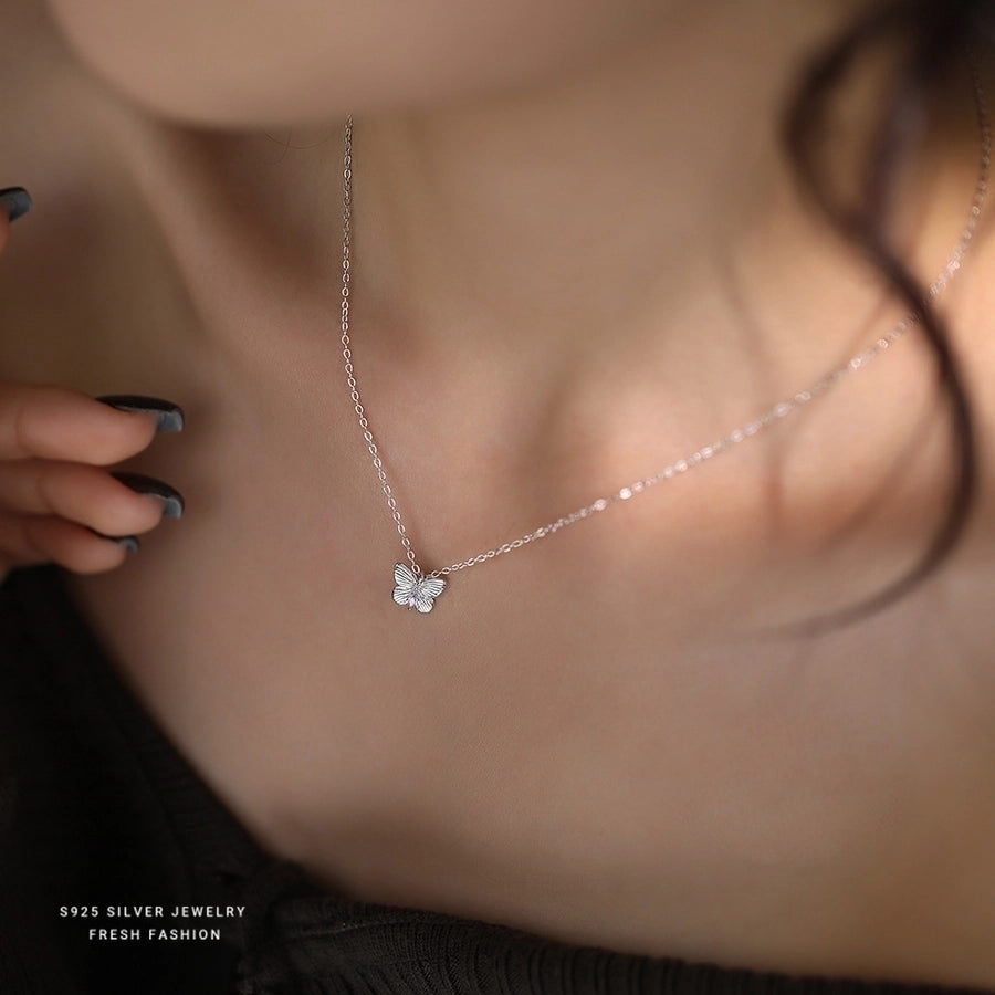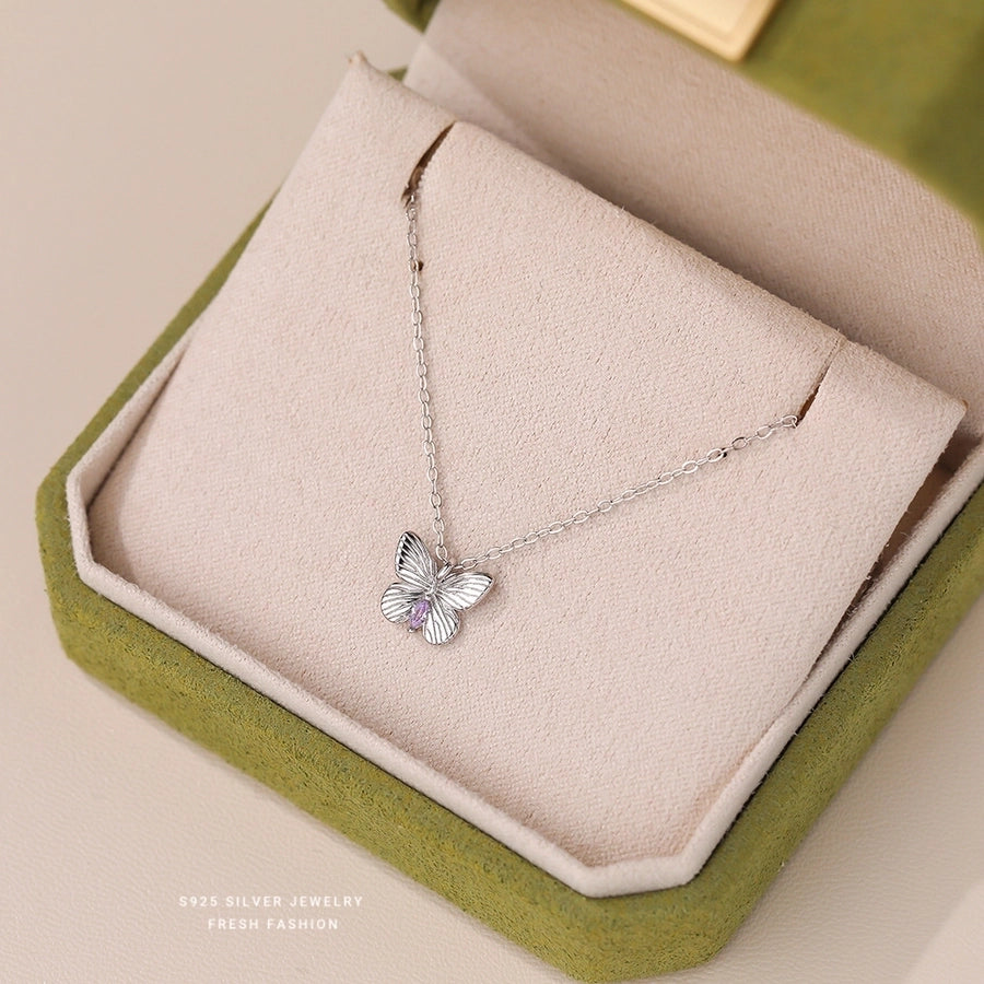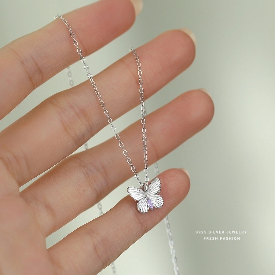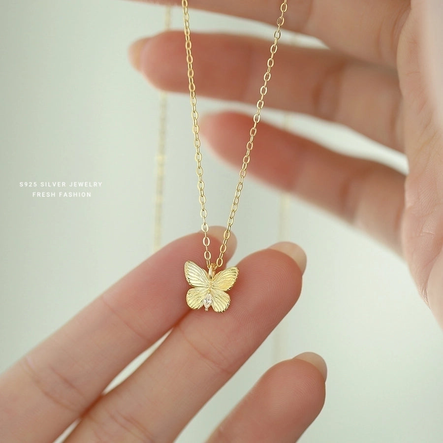 925 Sterling Silver Zircon cable chain Plating Butterfly Pendant Necklace