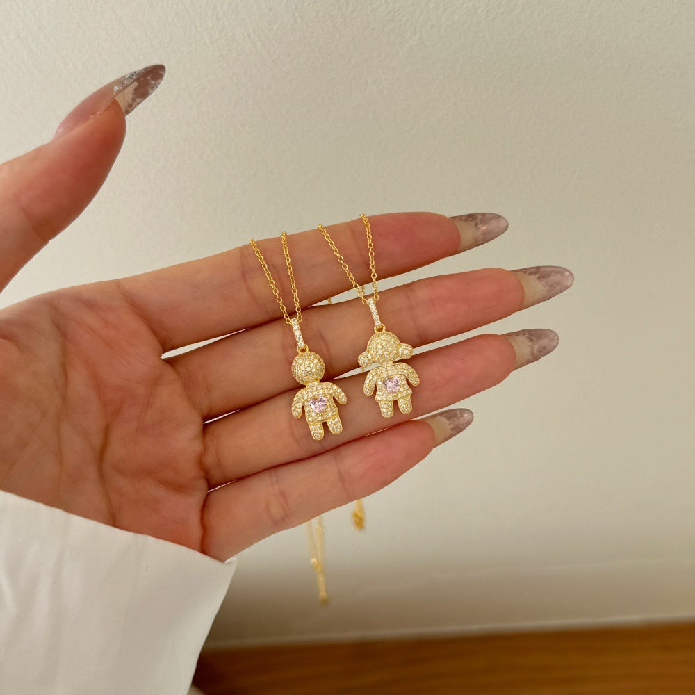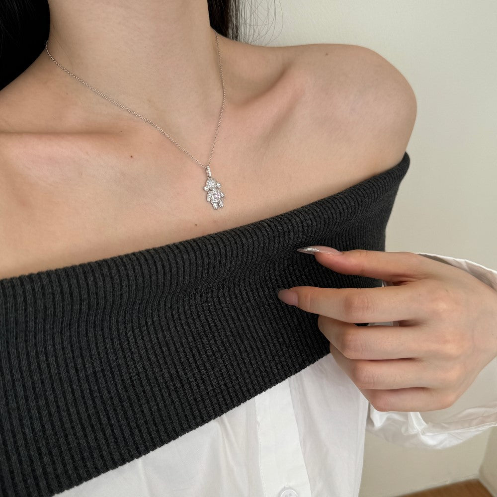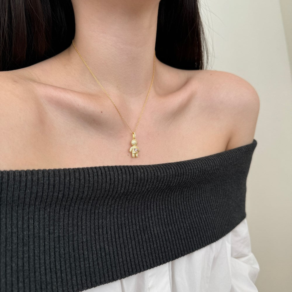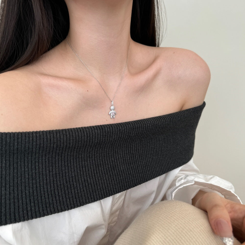 925 Sterling Silver Zircon cable chain Plating Cartoon Character Pendant Necklace