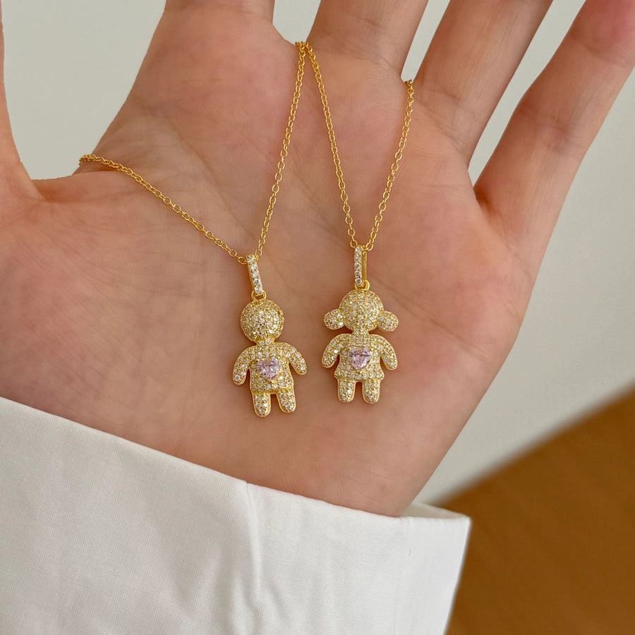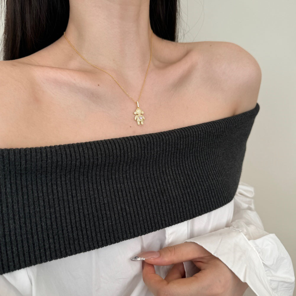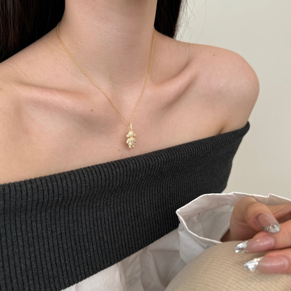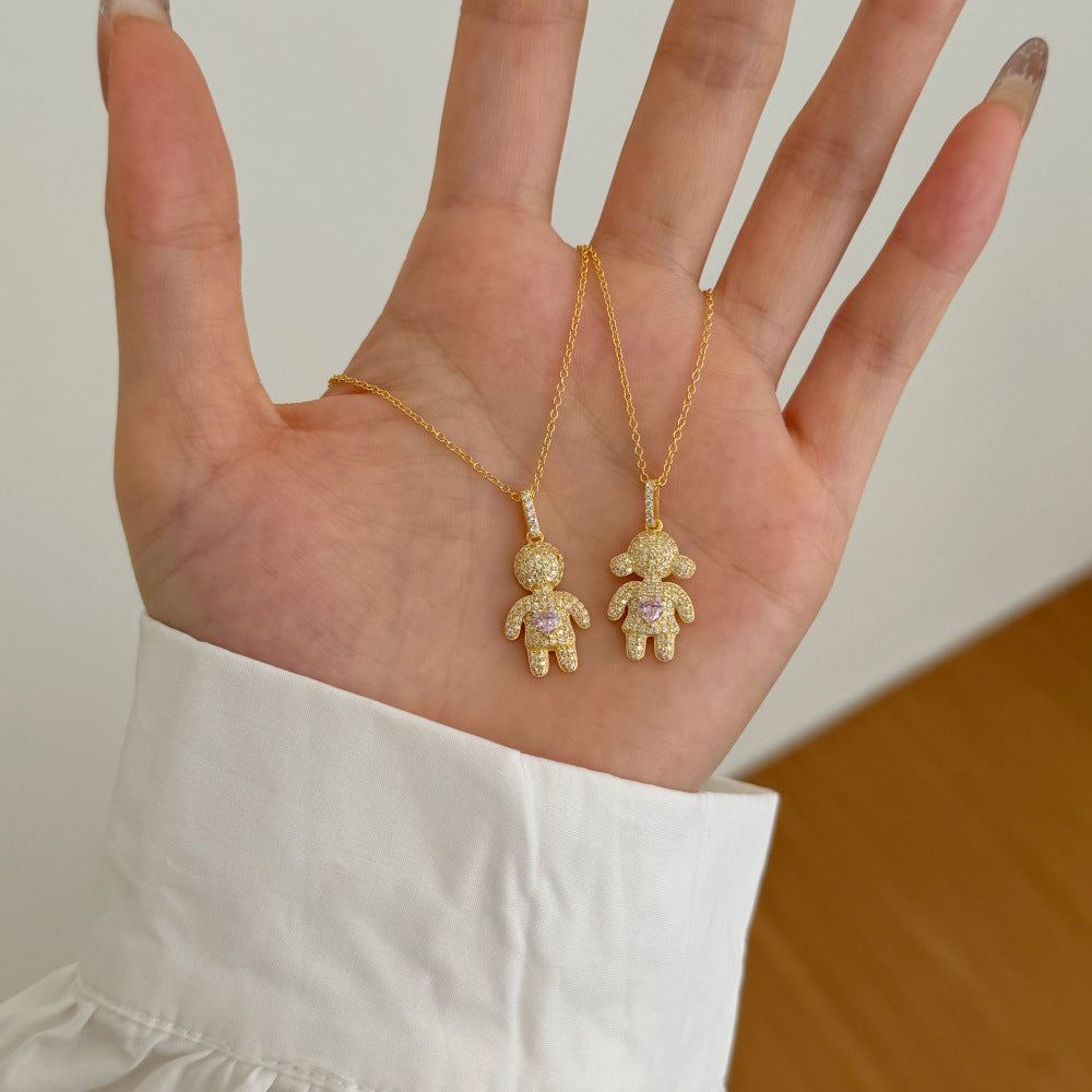 925 Sterling Silver Zircon cable chain Plating Cartoon Character Pendant Necklace