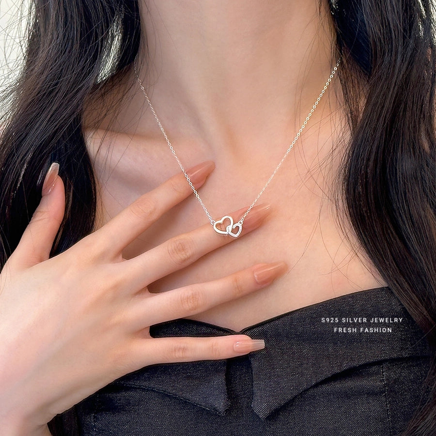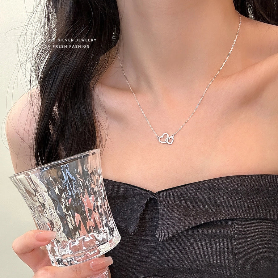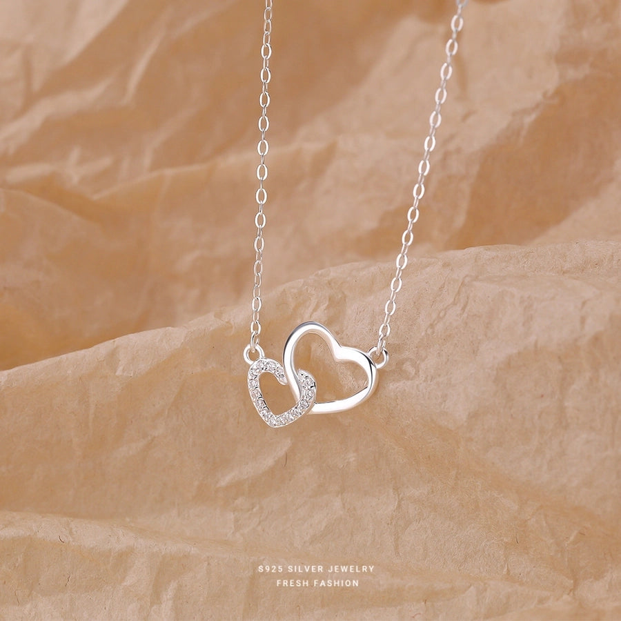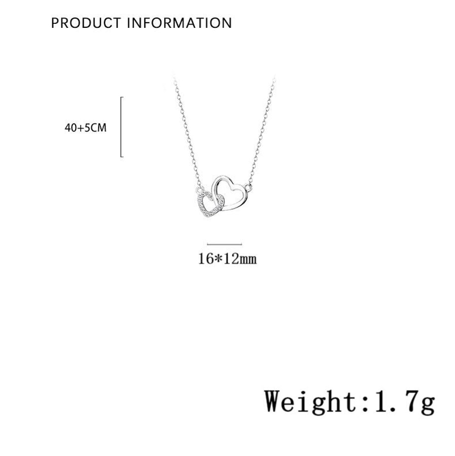 925 Sterling Silver Zircon cable chain Plating Double Heart Pendant Necklace