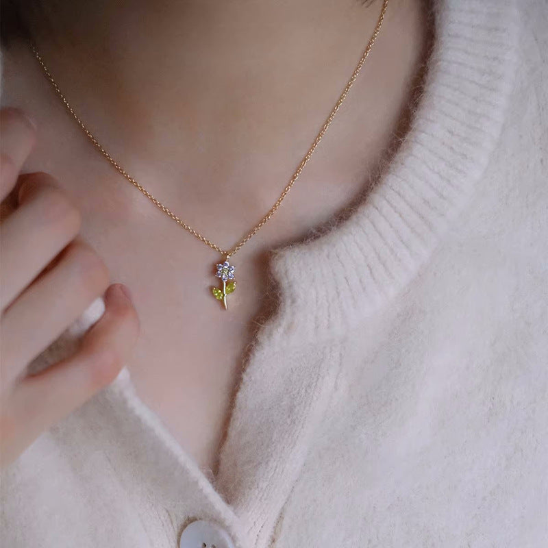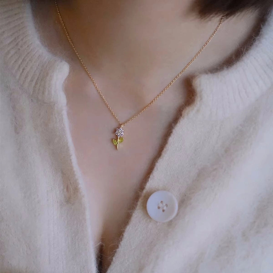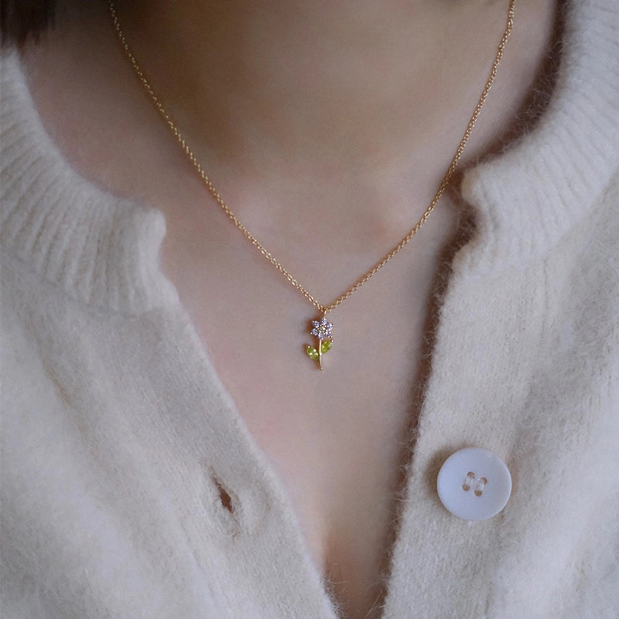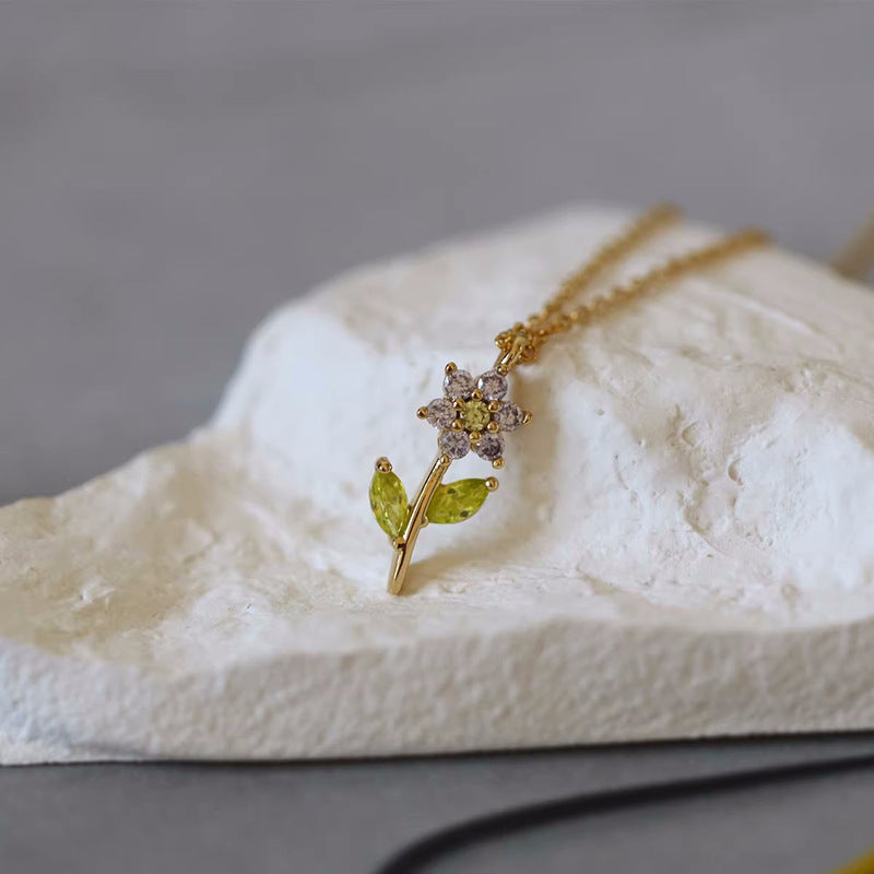 925 Sterling Silver Zircon cable chain Plating Flower Pendant Necklace