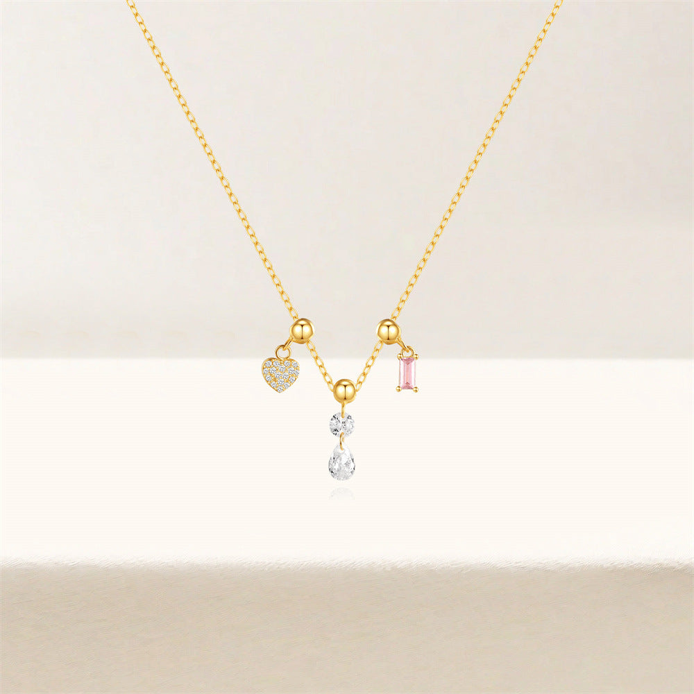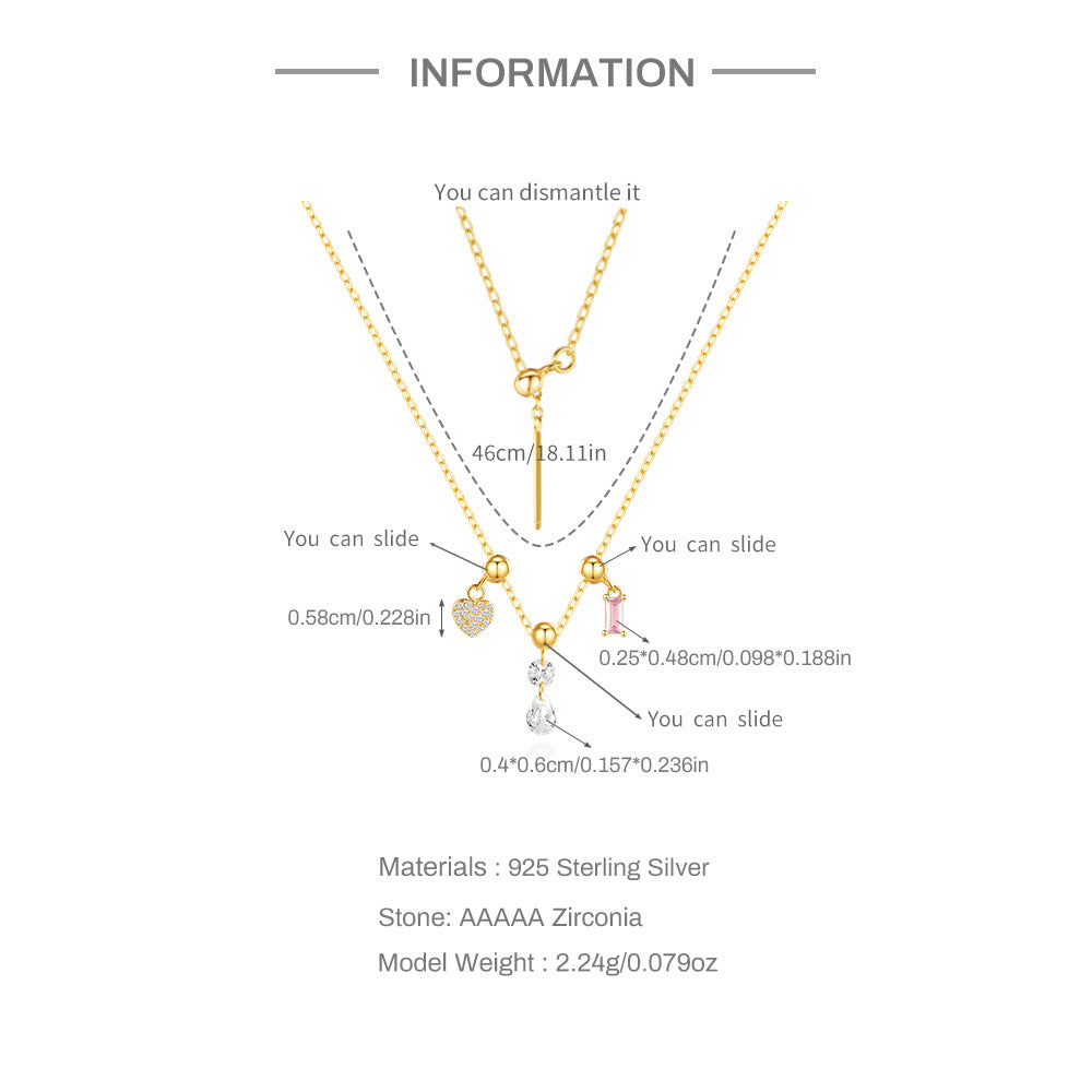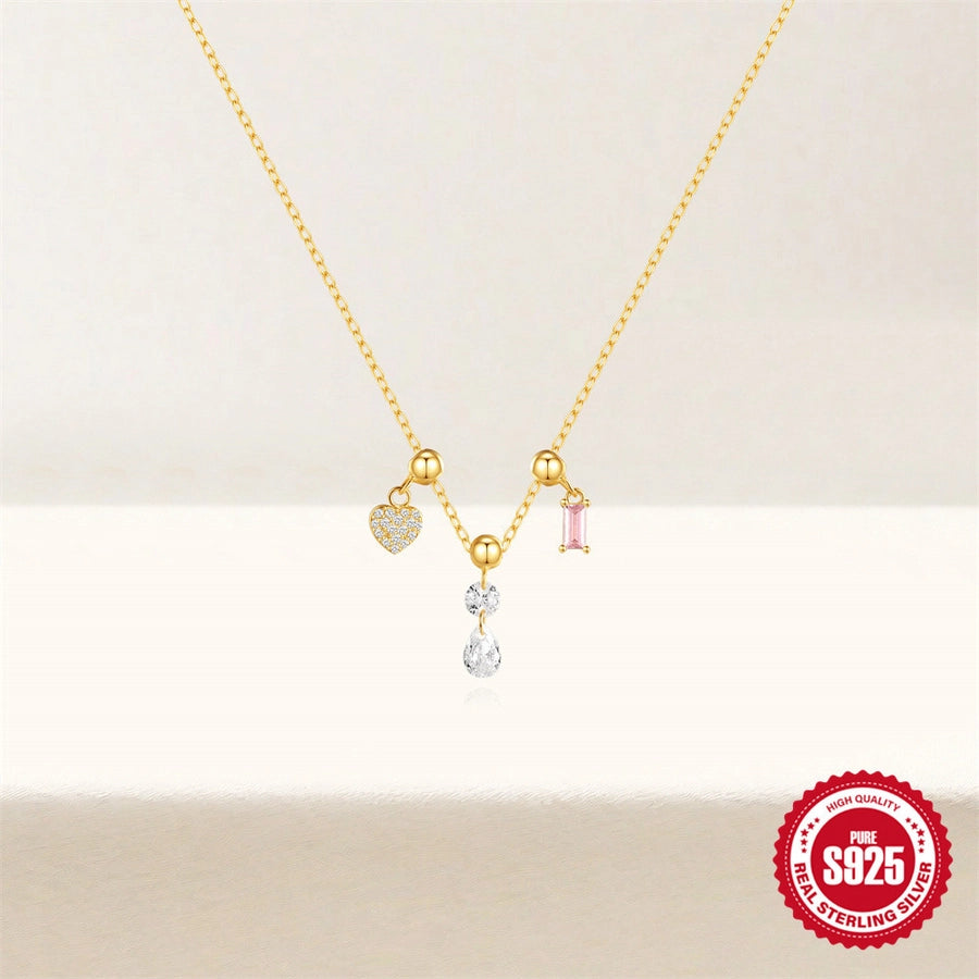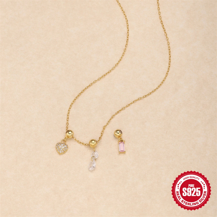 925 Sterling Silver Zircon cable chain Plating Geometric Heart Shape Multi Charms Necklace
