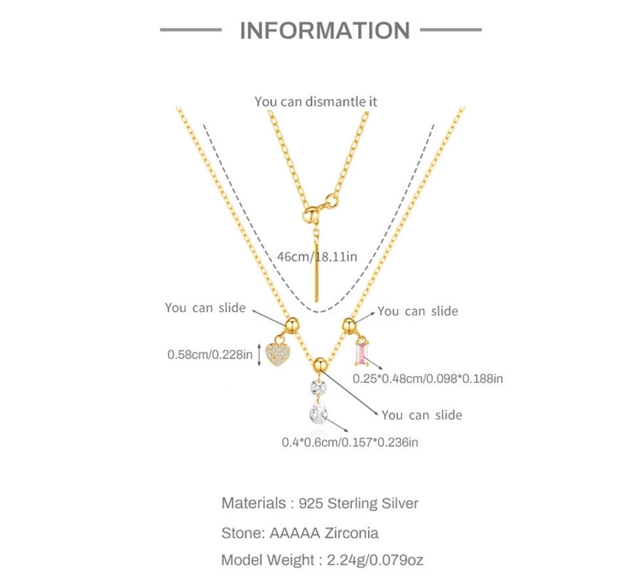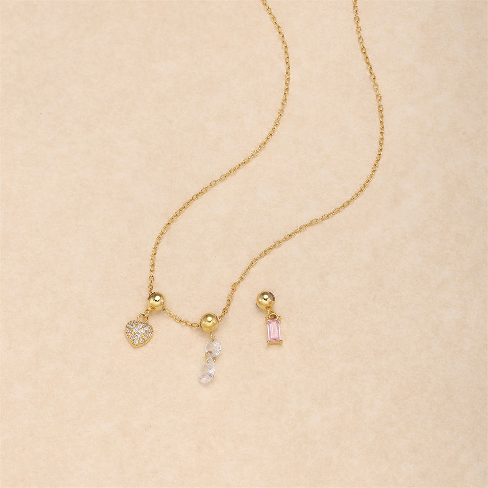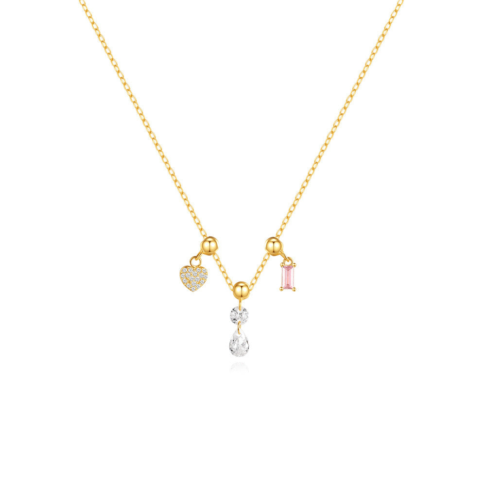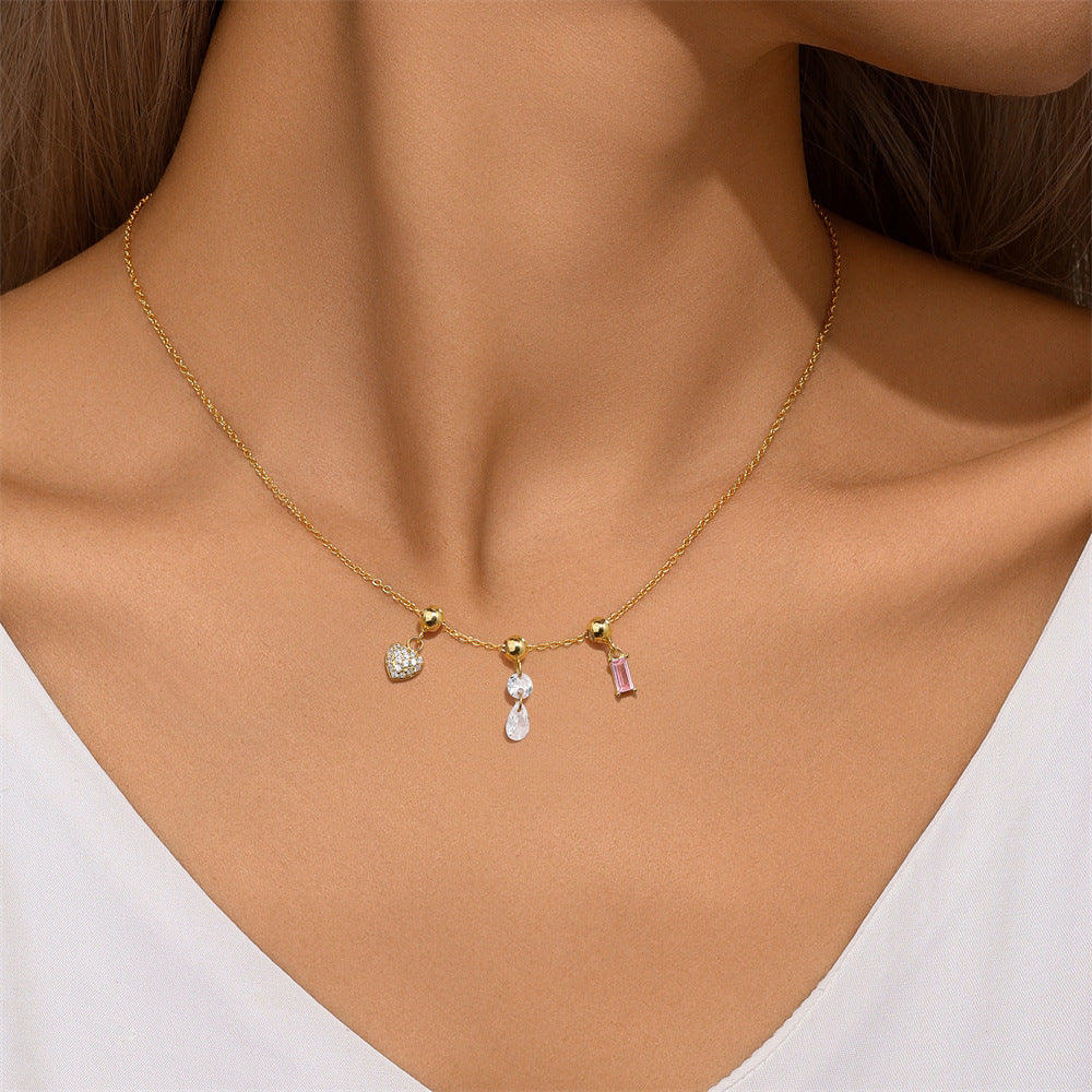 925 Sterling Silver Zircon cable chain Plating Geometric Heart Shape Multi Charms Necklace