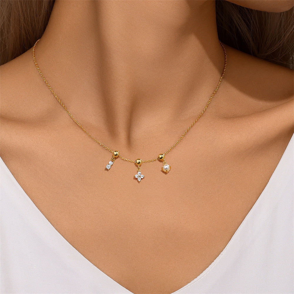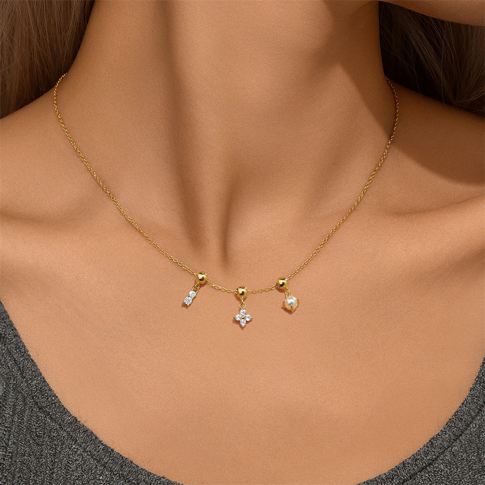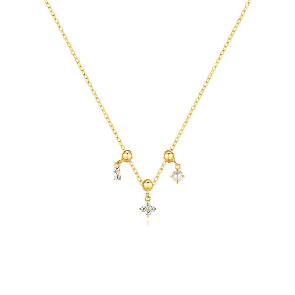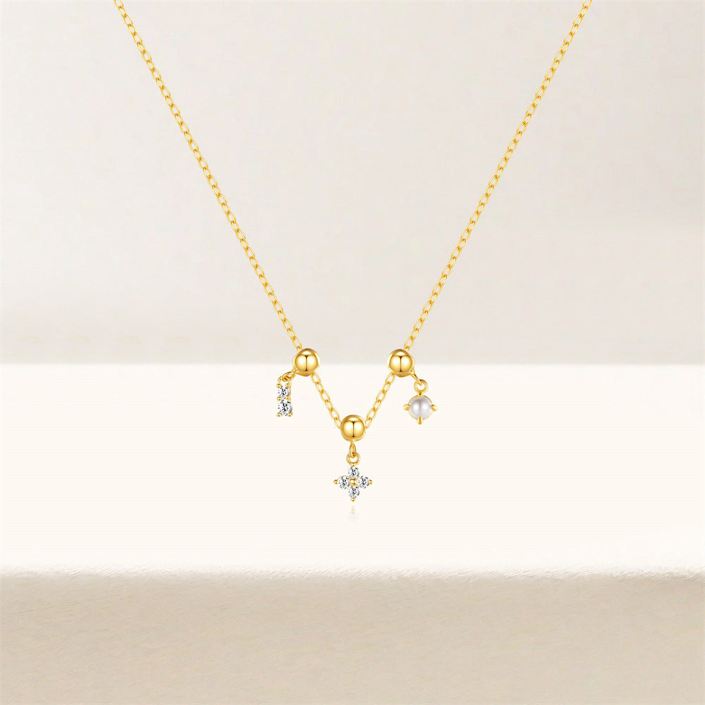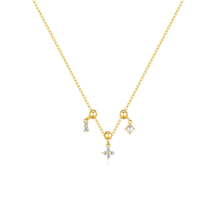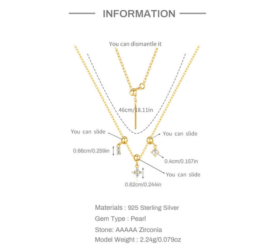 925 Sterling Silver Zircon cable chain Plating Geometric Multi Charms Necklace