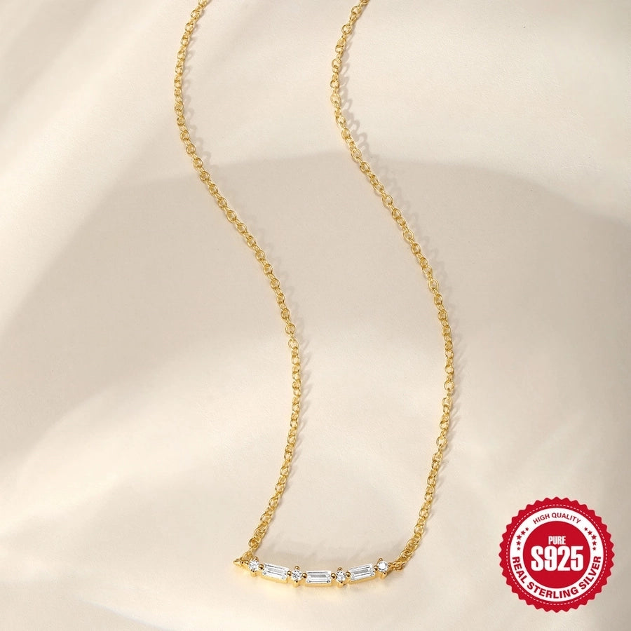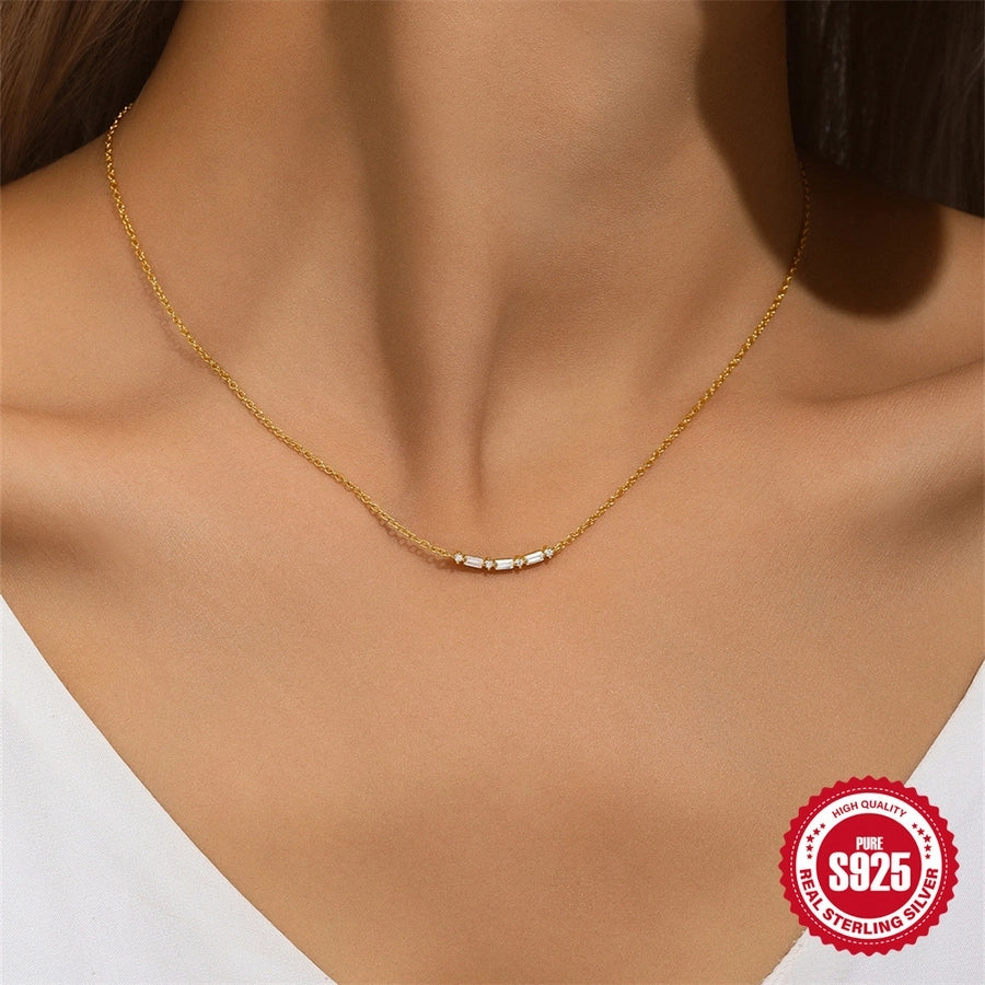 925 Sterling Silver Zircon cable chain Plating Geometric Pendant Necklace