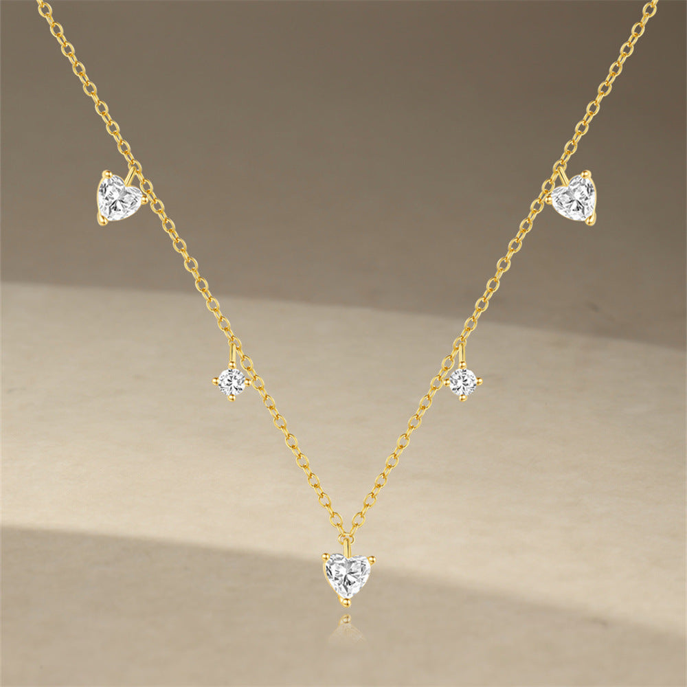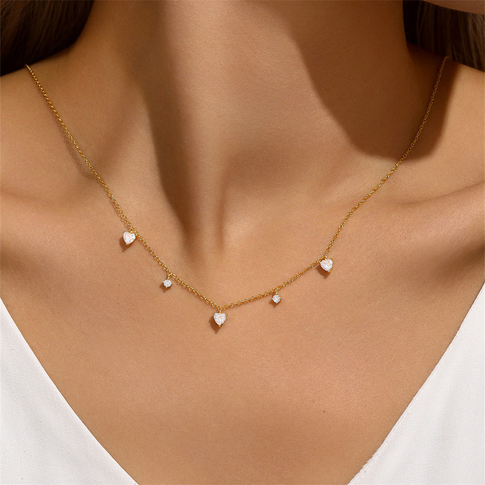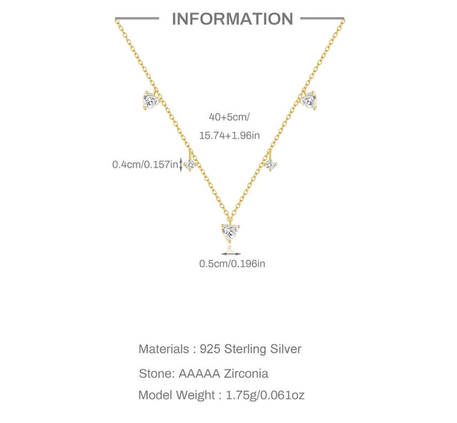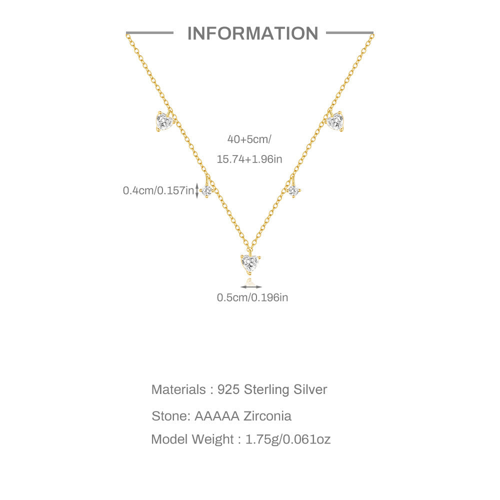 925 Sterling Silver Zircon cable chain Plating Heart Shape Multi Charms Necklace