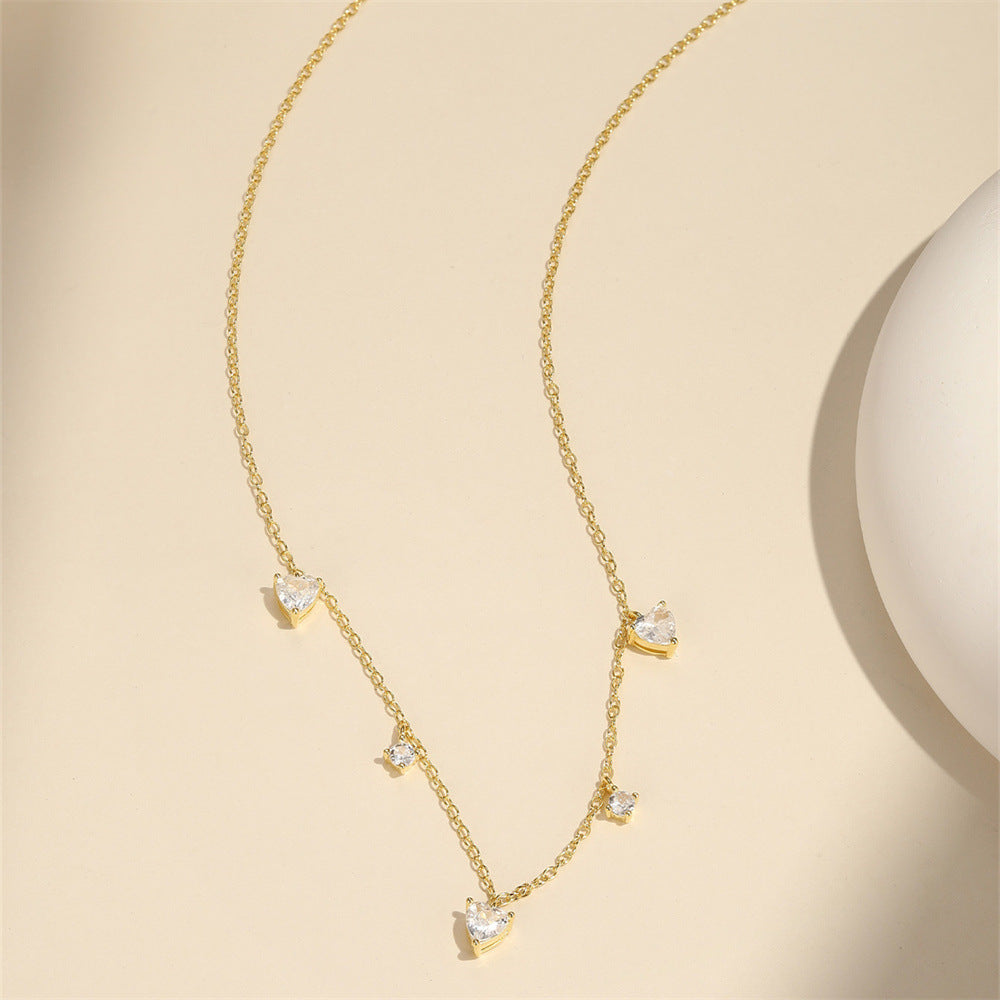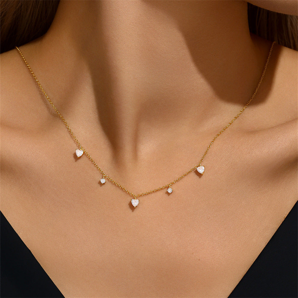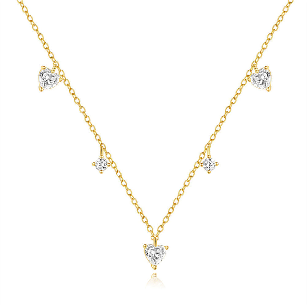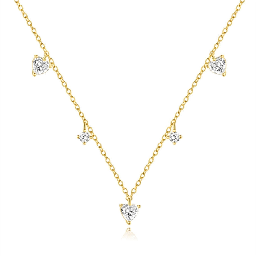 925 Sterling Silver Zircon cable chain Plating Heart Shape Multi Charms Necklace