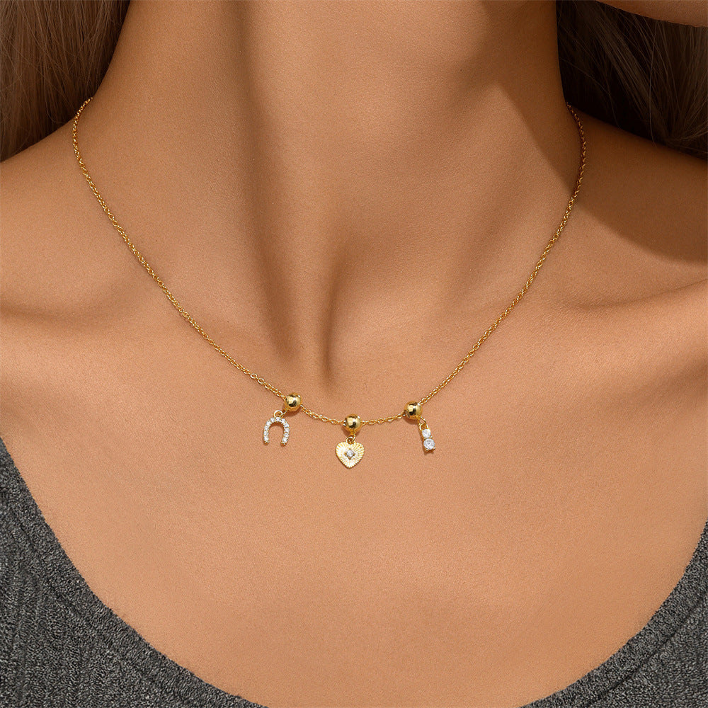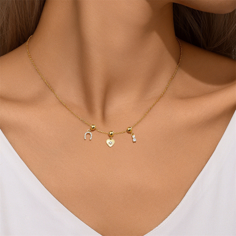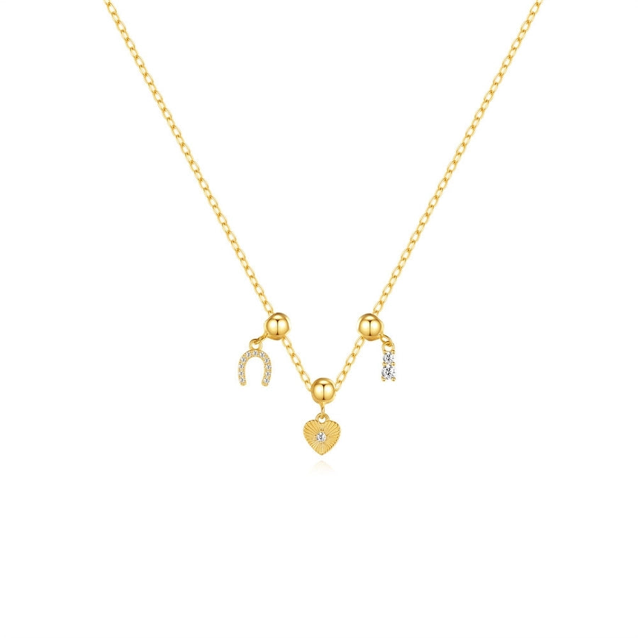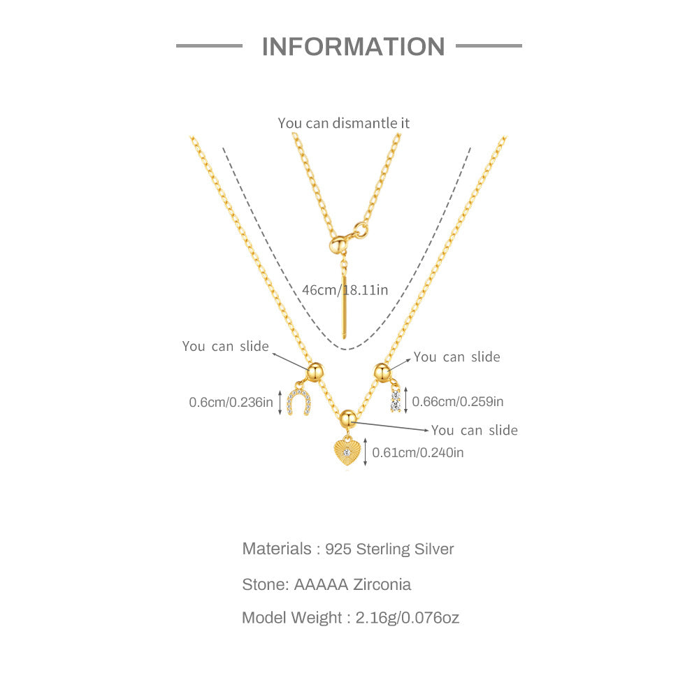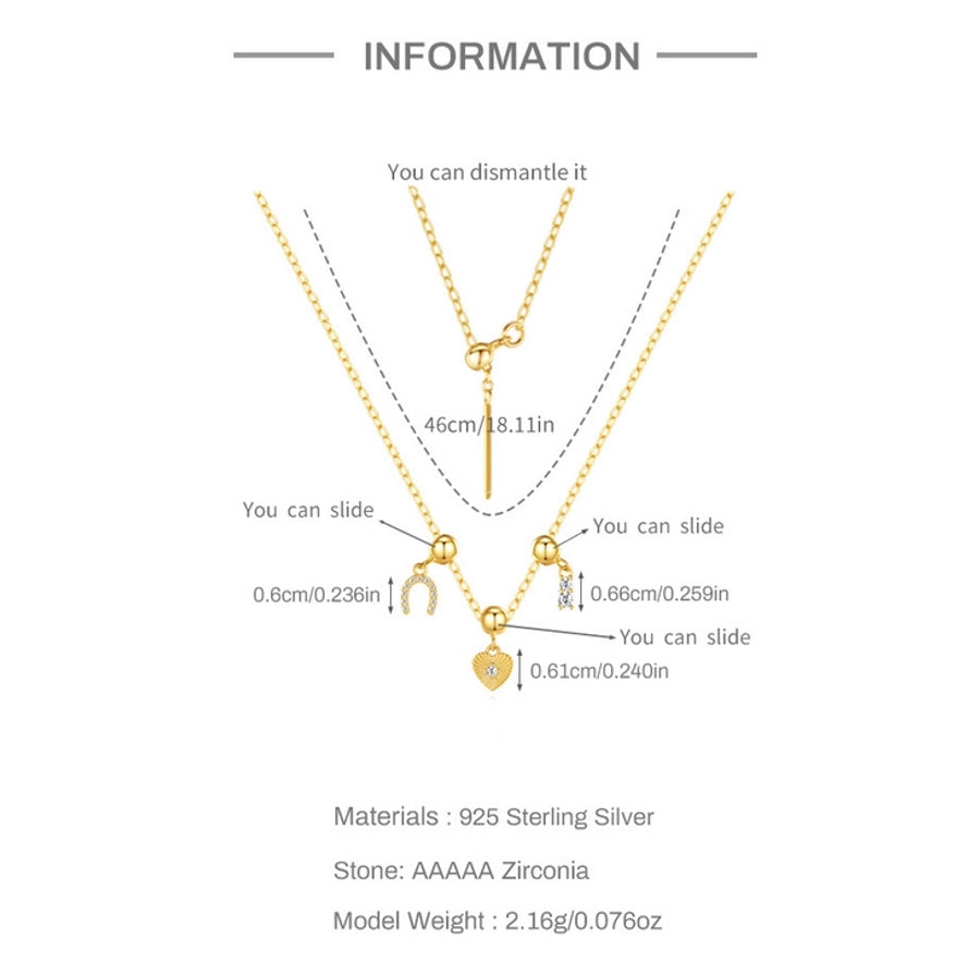 925 Sterling Silver Zircon cable chain Plating Heart Shape Multi Charms Necklace