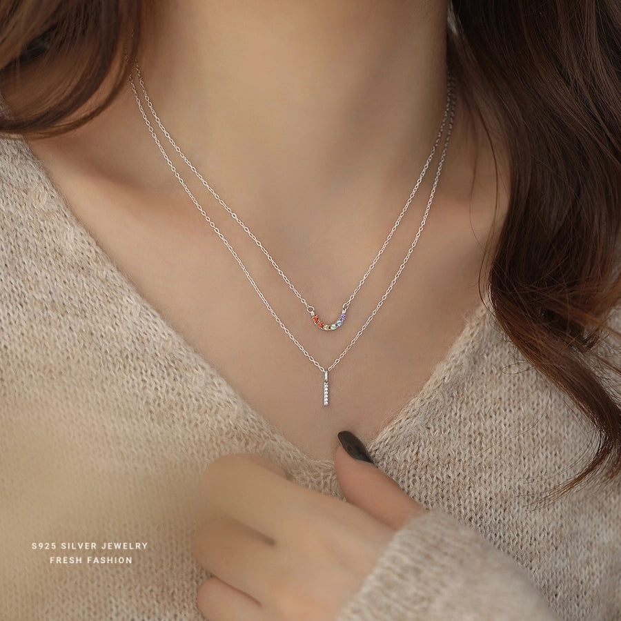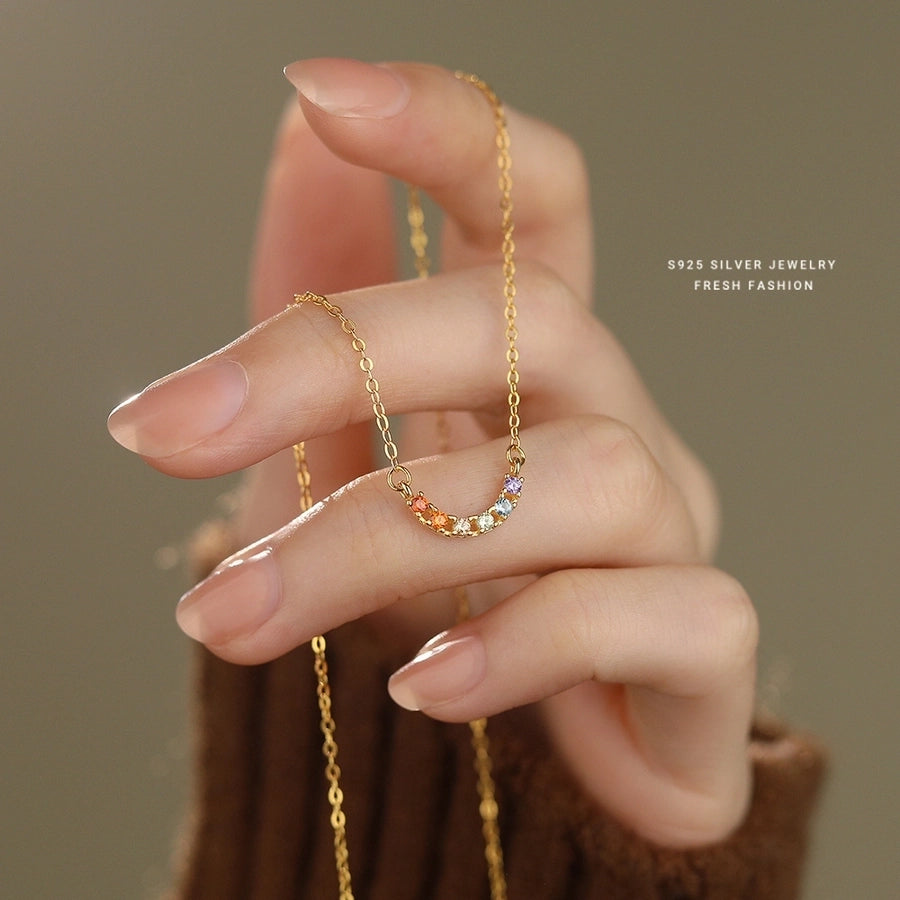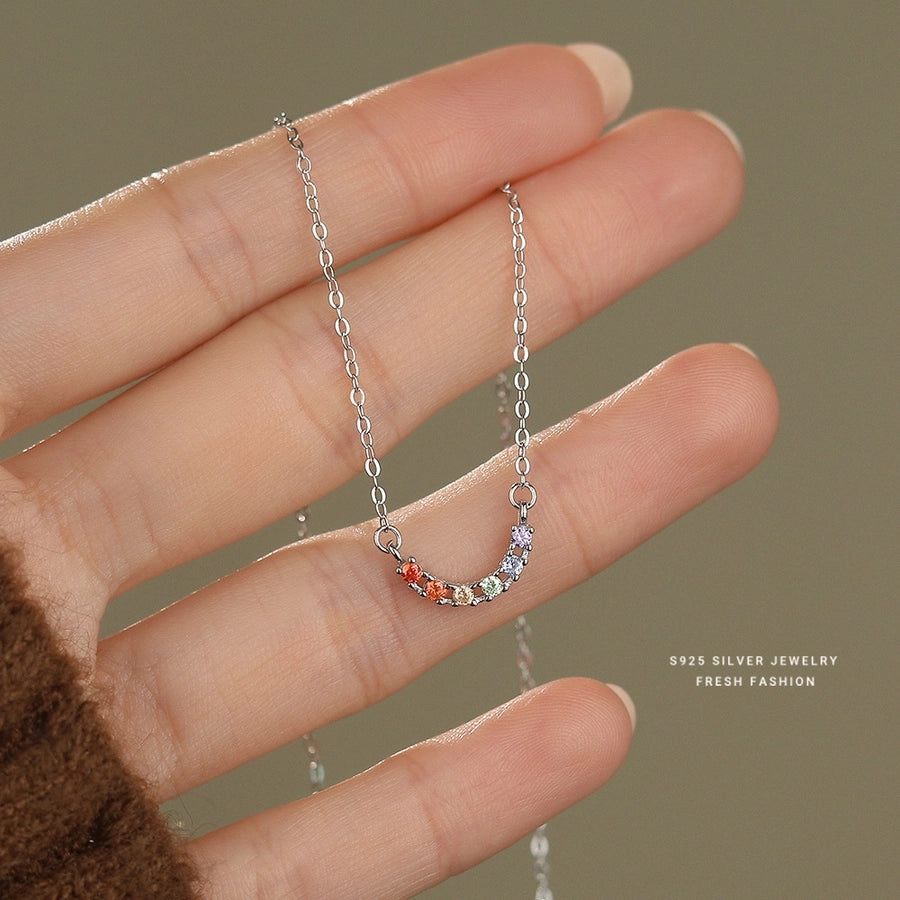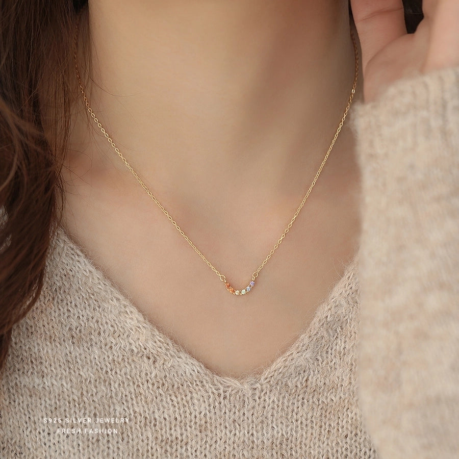 925 Sterling Silver Zircon cable chain Smile Face Necklace