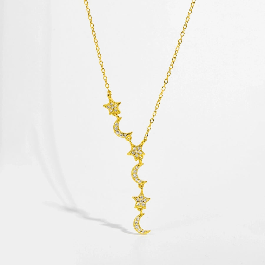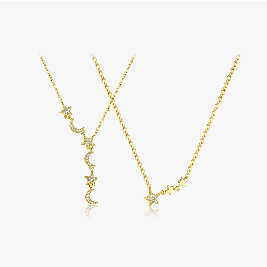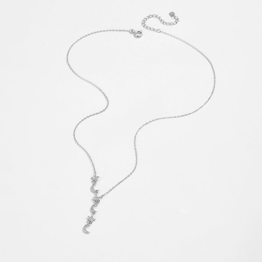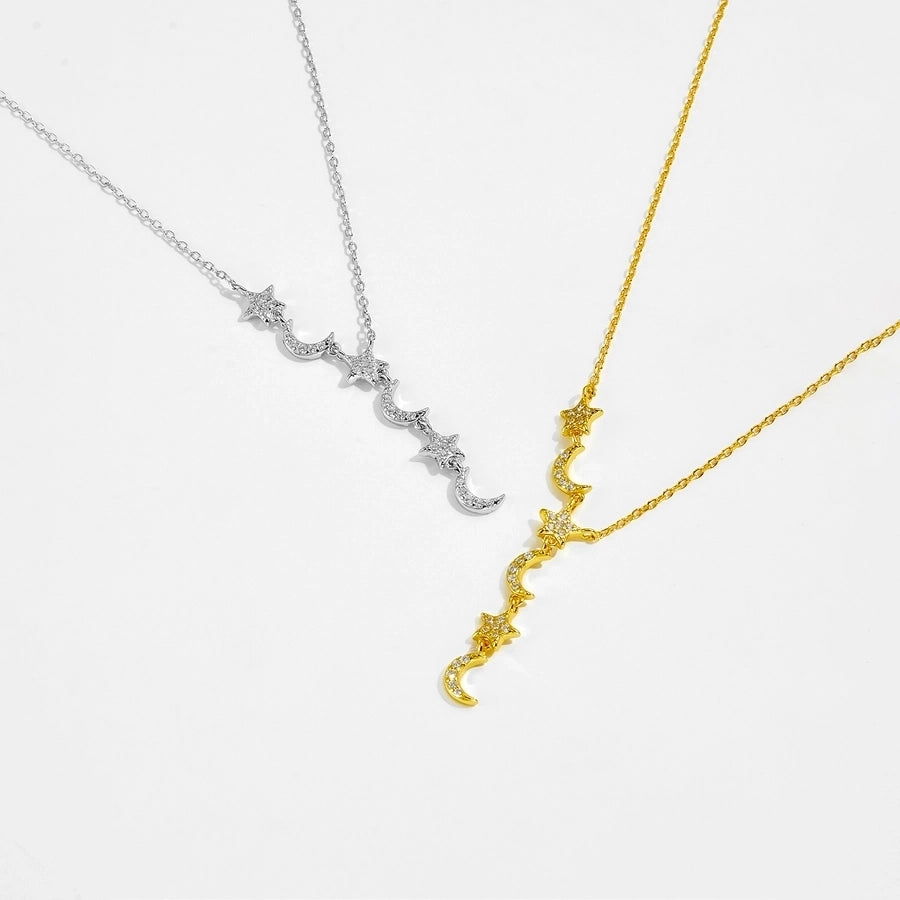 925 Sterling Silver Zircon cable chain Star Moon Pendant Necklace