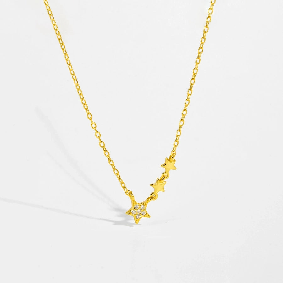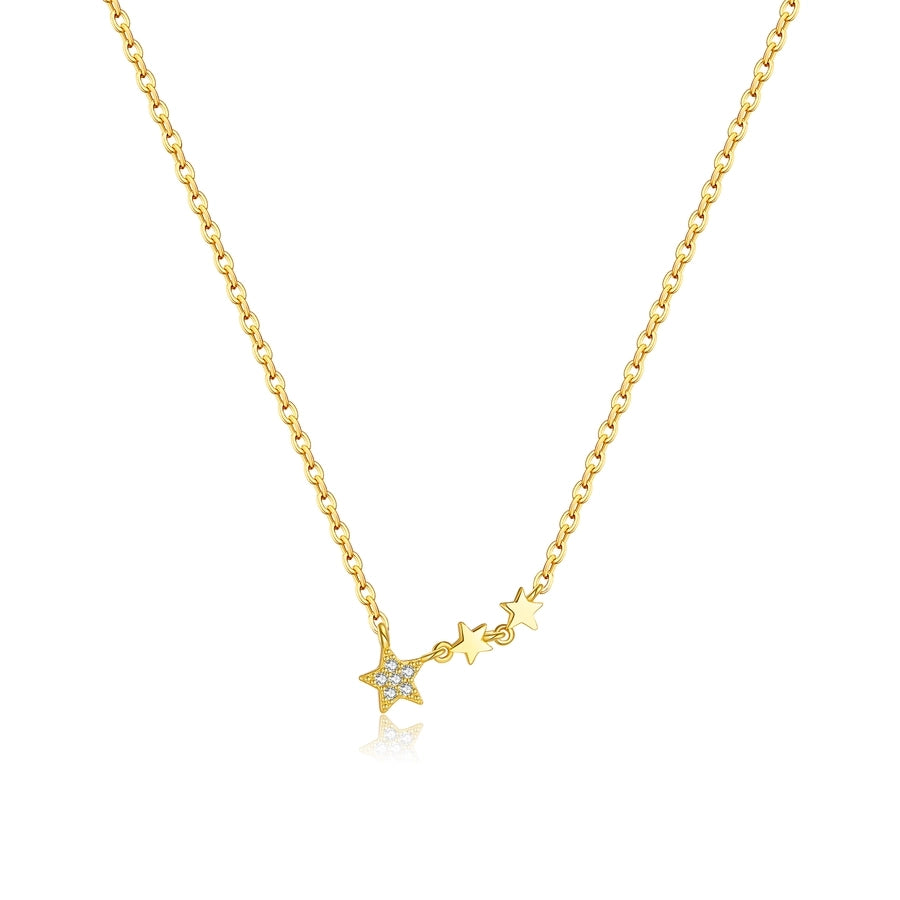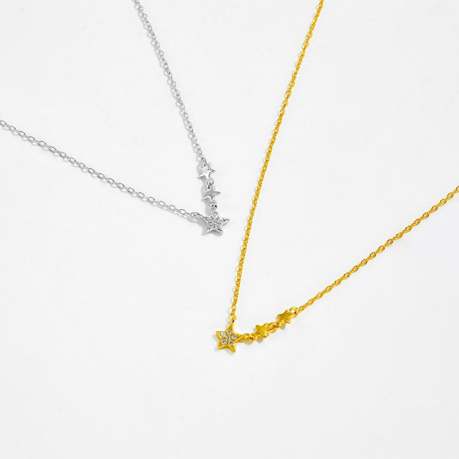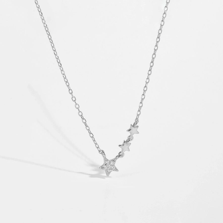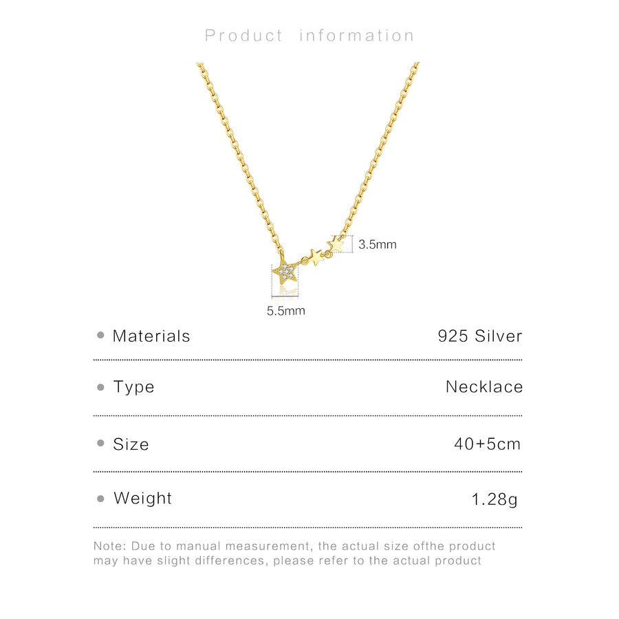 925 Sterling Silver Zircon cable chain Star Moon Pendant Necklace