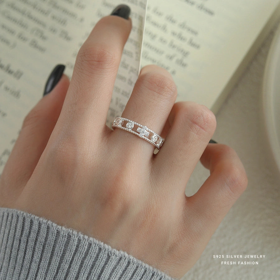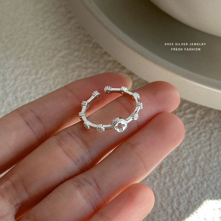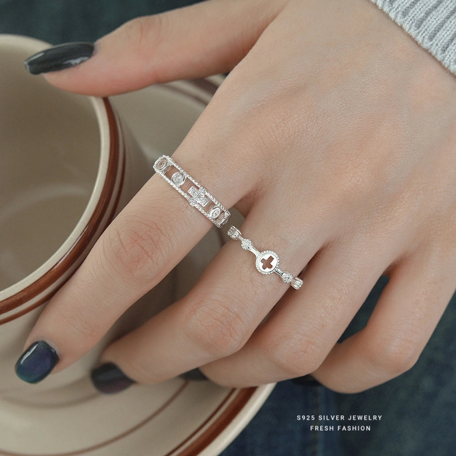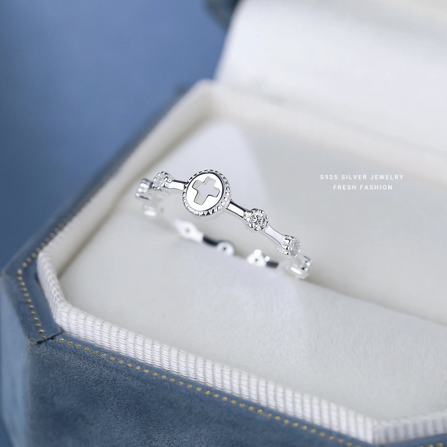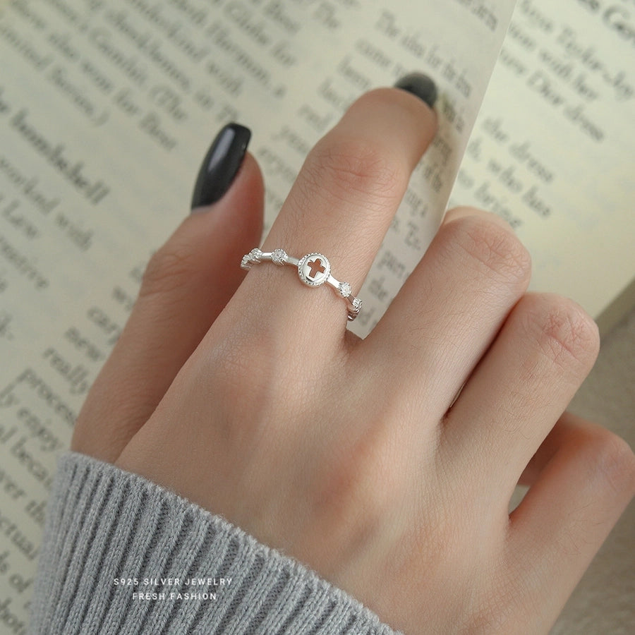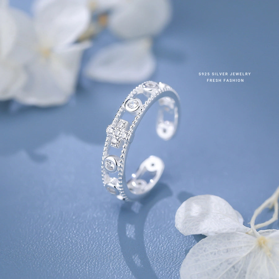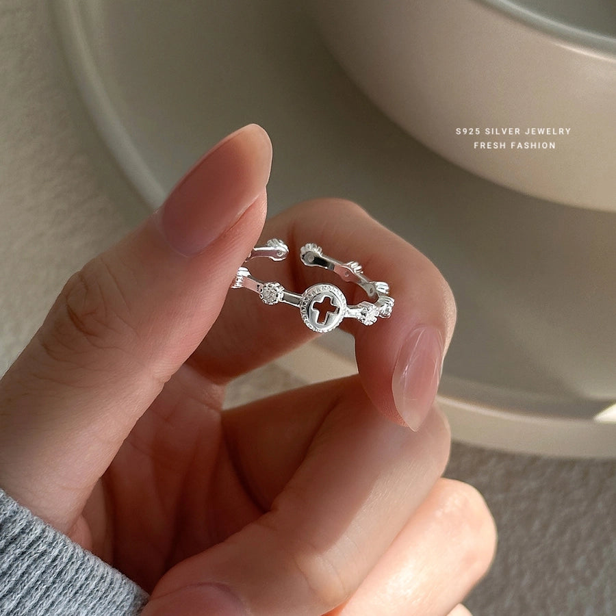 925 Sterling Silver Zircon Cross Open Rings 925 Sterling Silver Rings