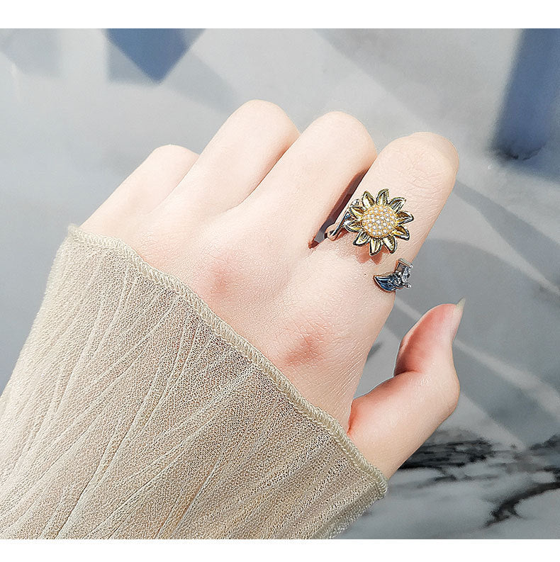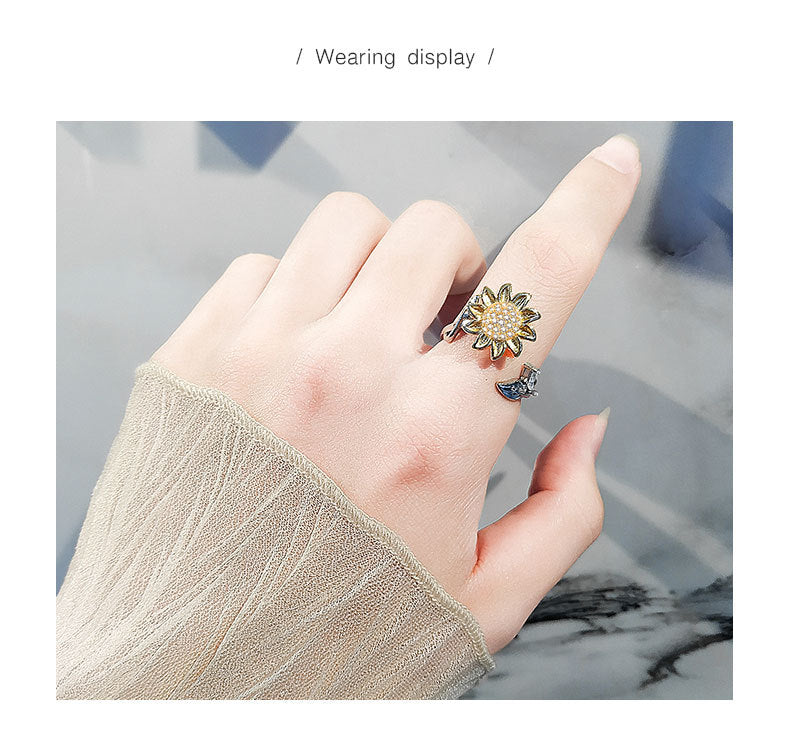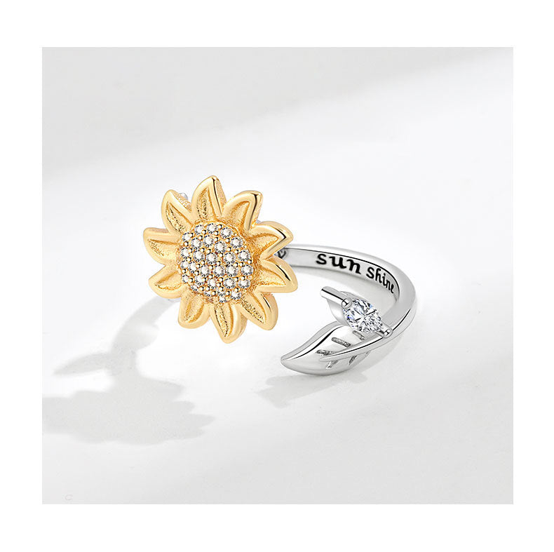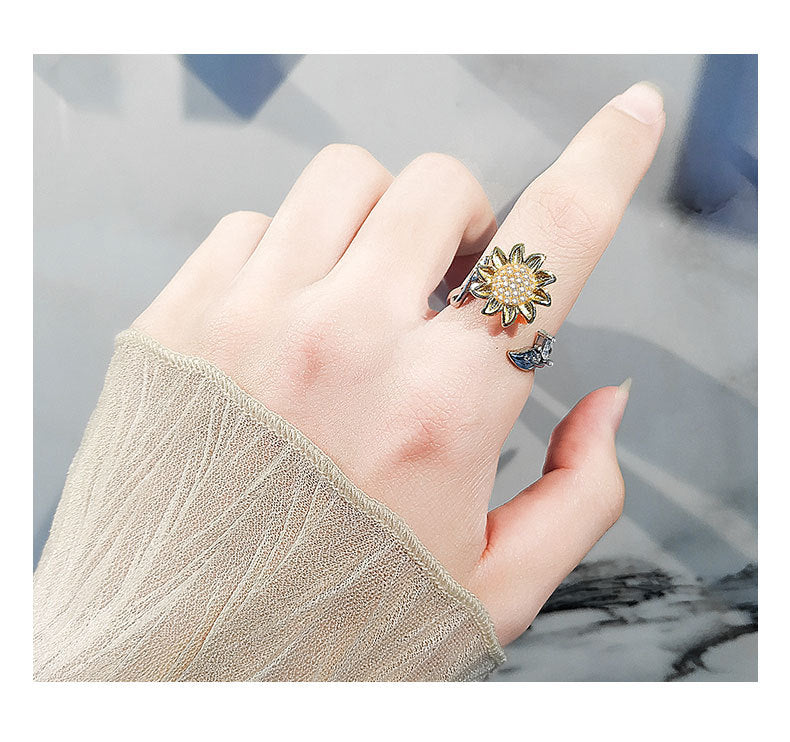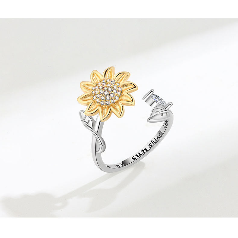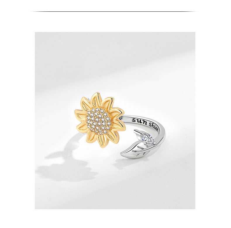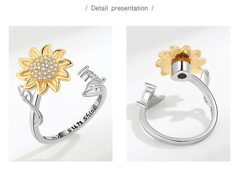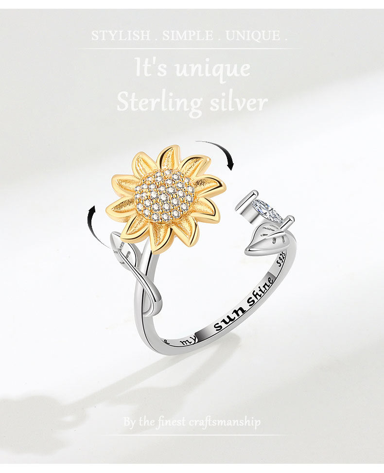 925 Sterling Silver Zircon Flower Open Rings Anxiety Ring 925 Sterling Silver Rings