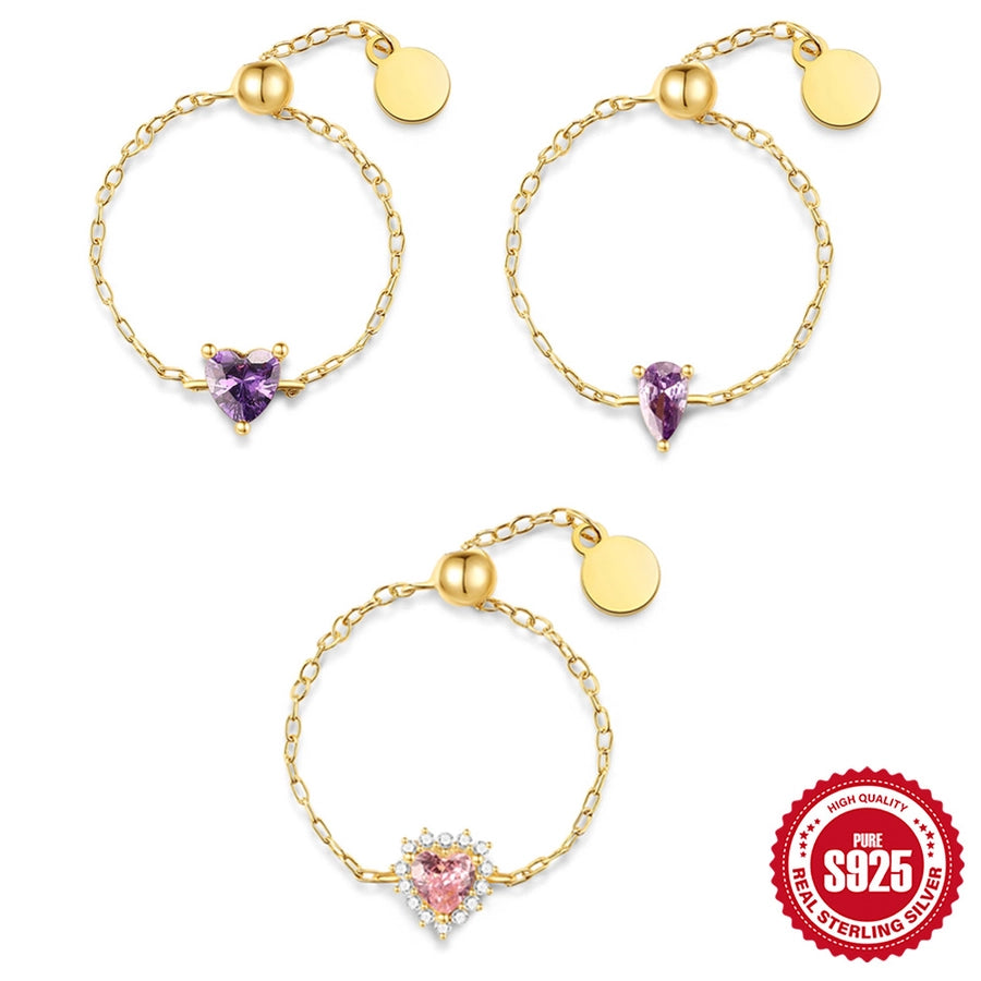 925 Sterling Silver Zircon Geometric Adjustable Ring 925 Sterling Silver Rings