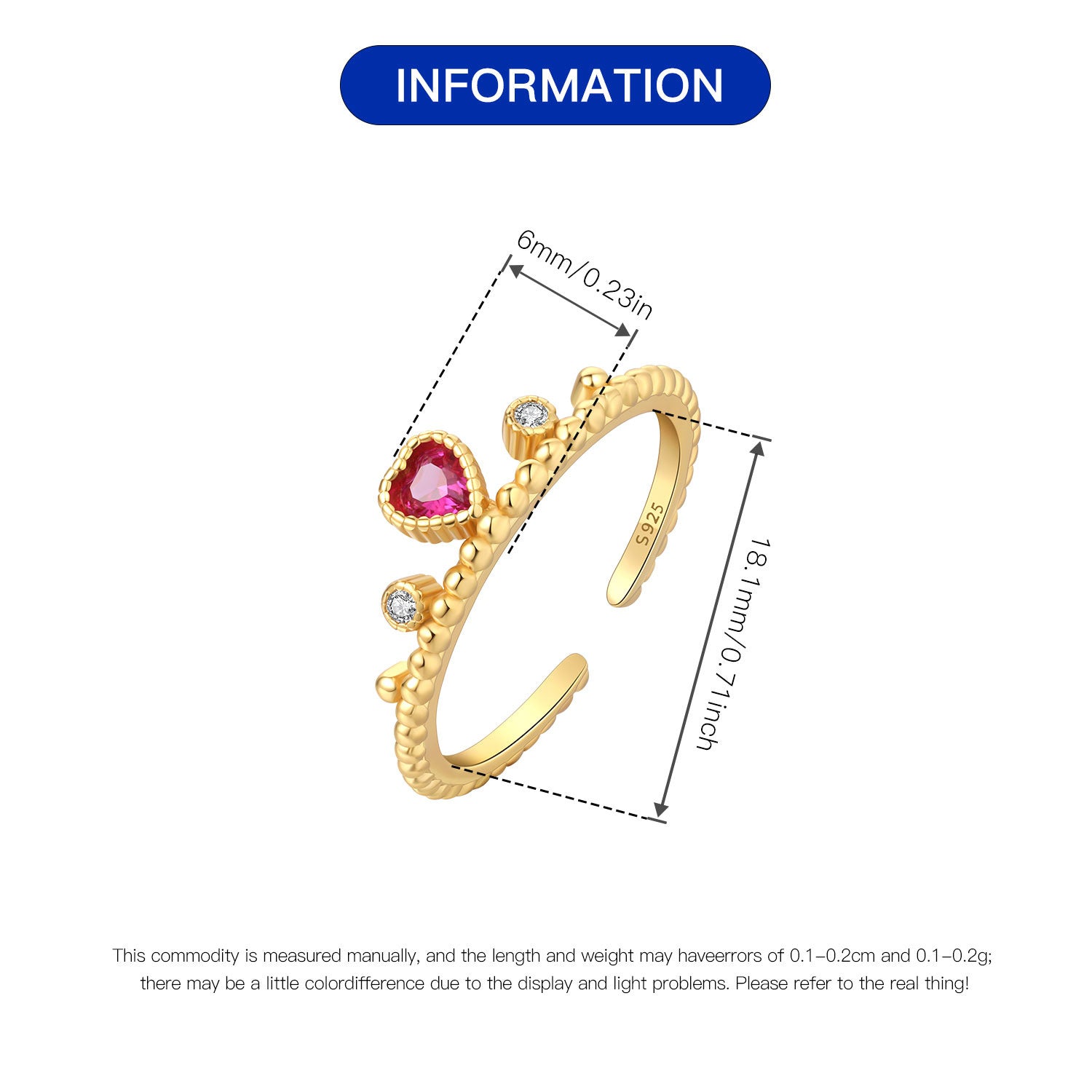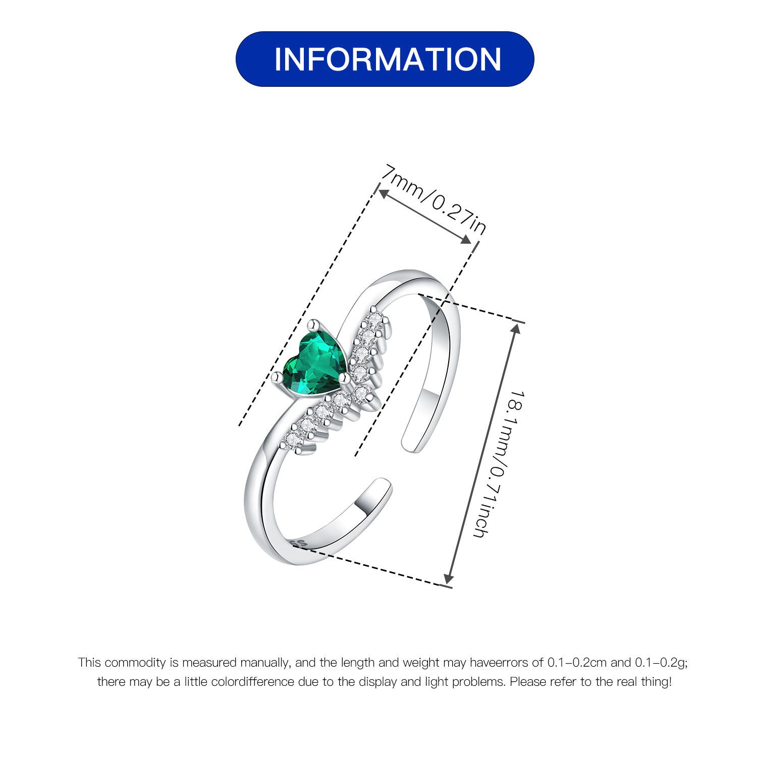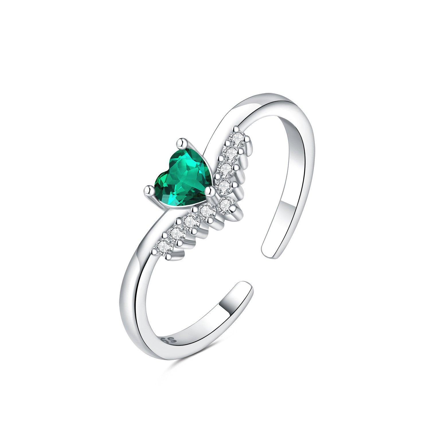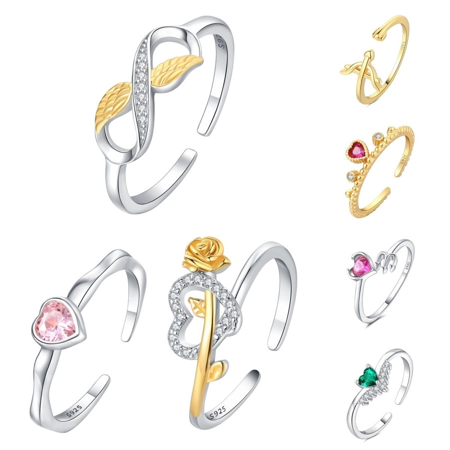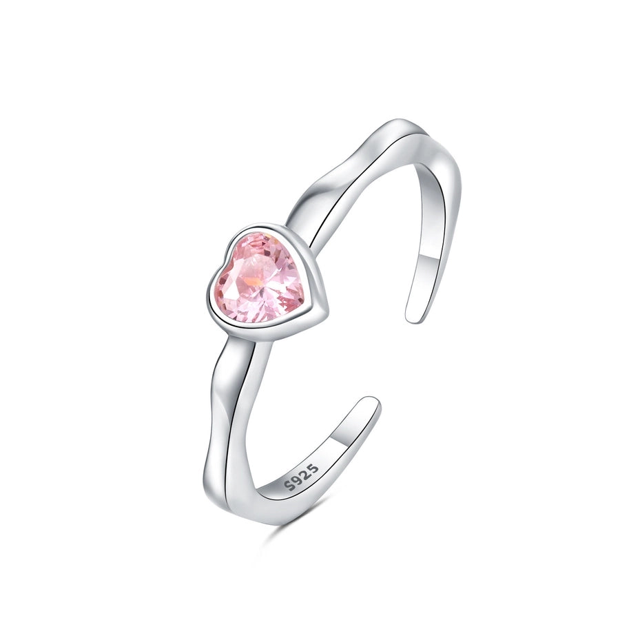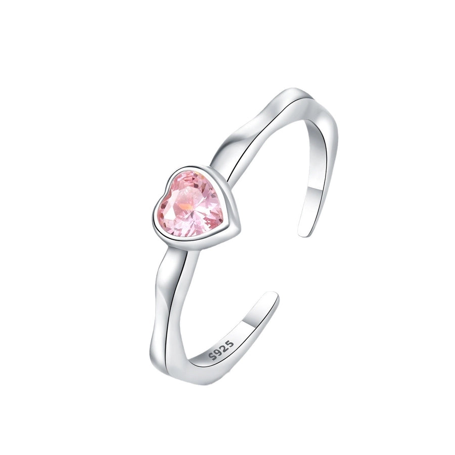 925 Sterling Silver Zircon Heart Shape Open Rings 925 Sterling Silver Rings
