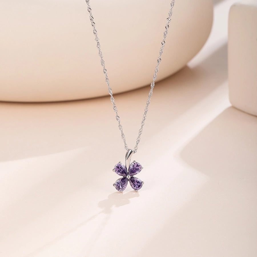 925 Sterling Silver Zircon Polishing Inlay Flower Pendant Necklace
