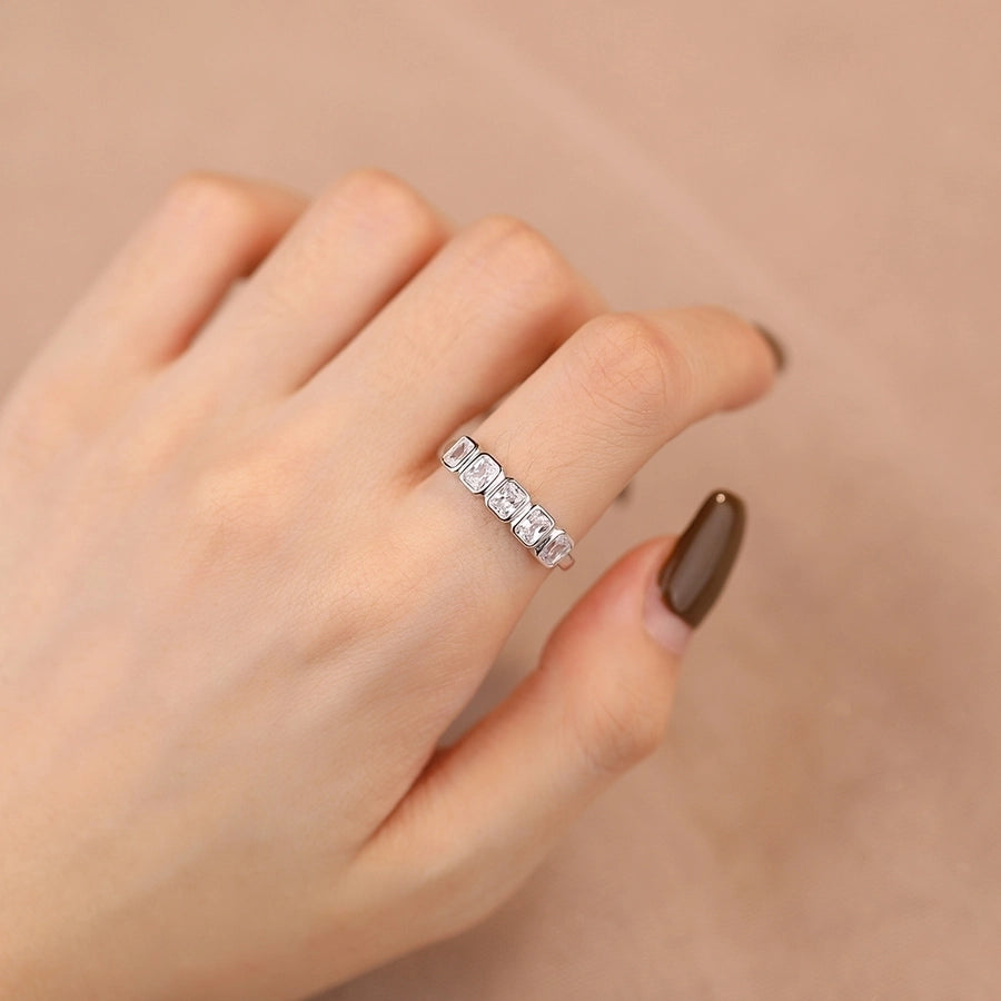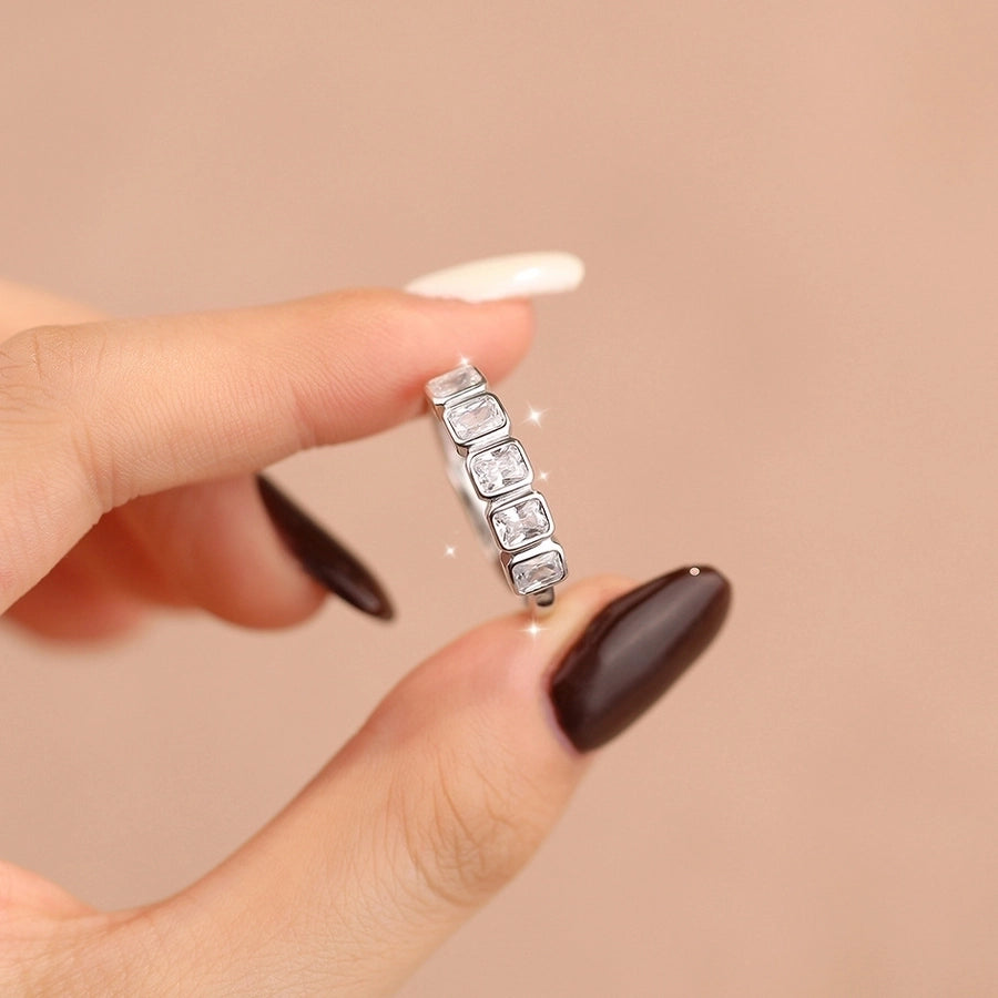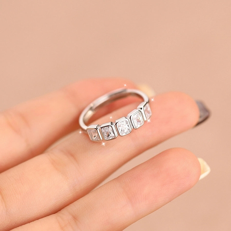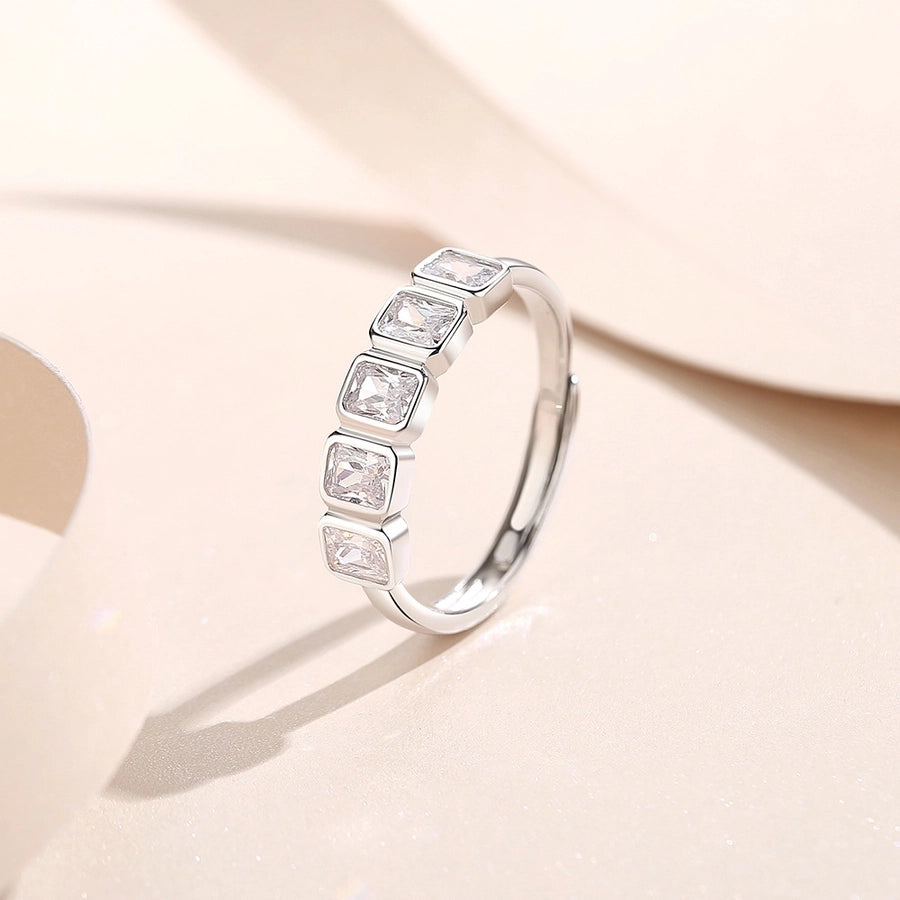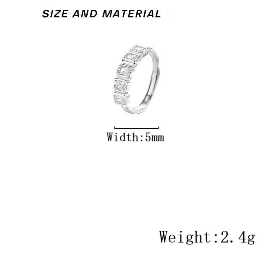 925 Sterling Silver Zircon Square Adjustable Ring 925 Sterling Silver Rings