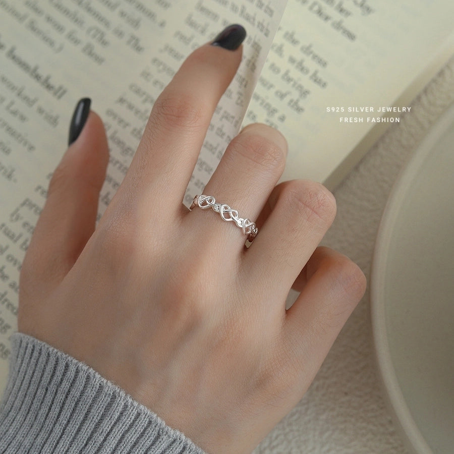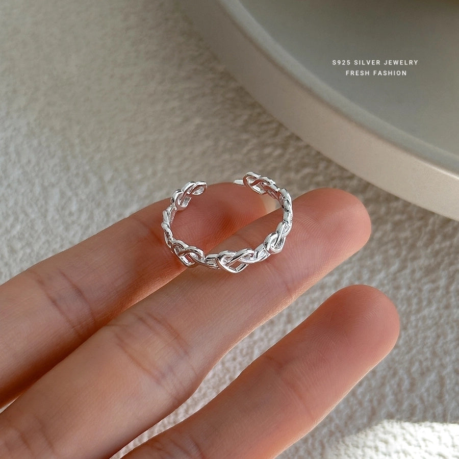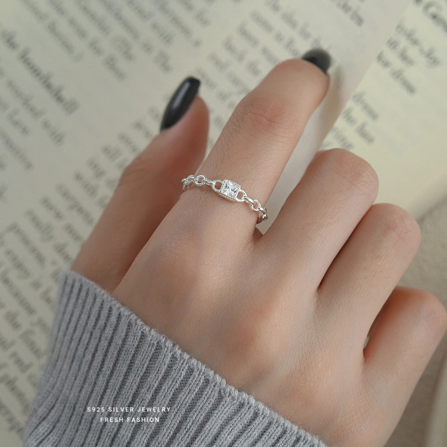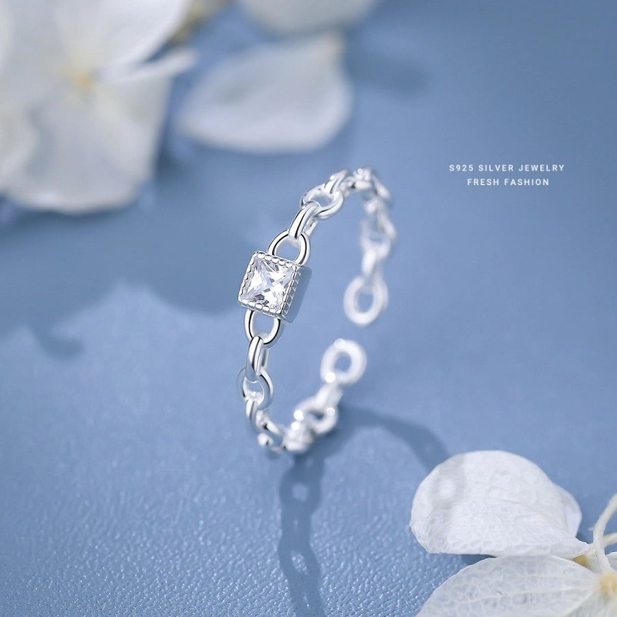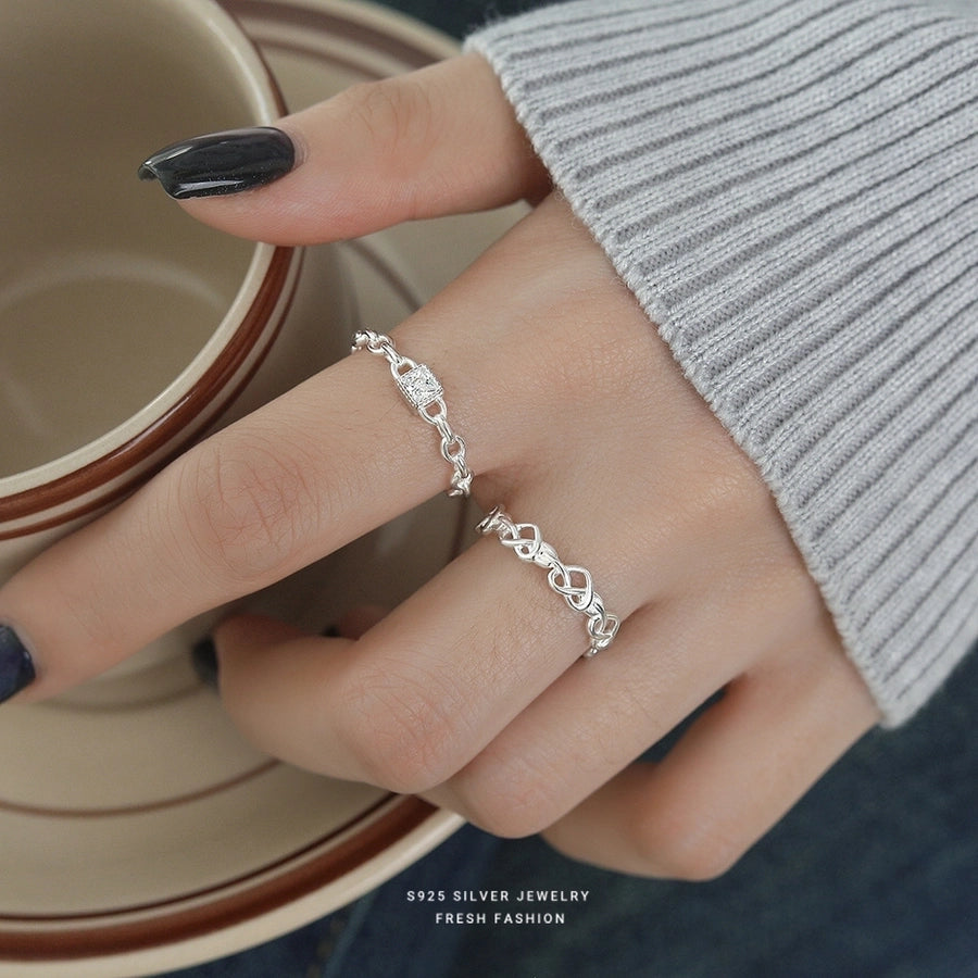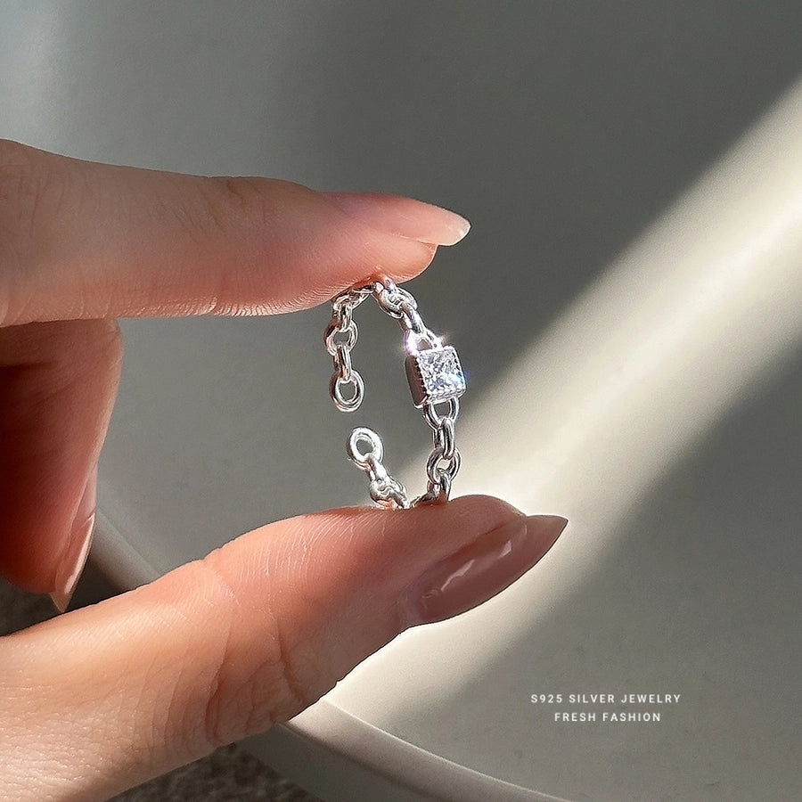 925 Sterling Silver Zircon Square Heart Shape Open Rings 925 Sterling Silver Rings