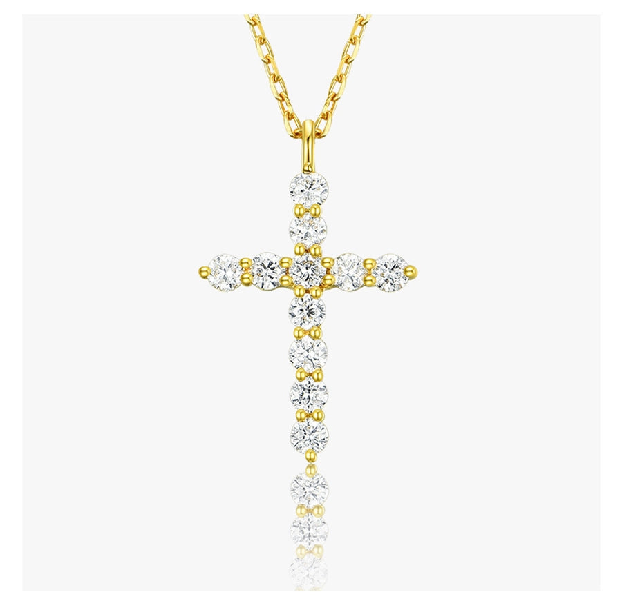 Copper Zircon O-shaped chain Inlay Cross Necklace