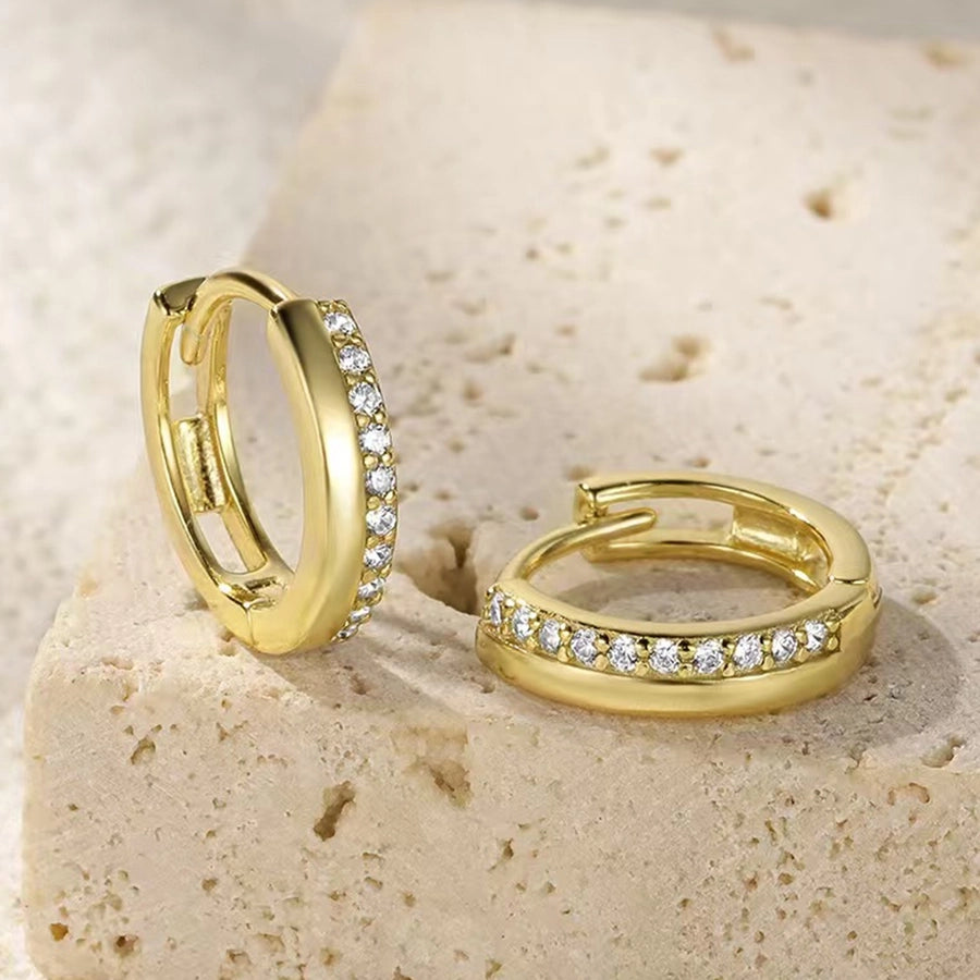 K Gold Plated White Gold Plated 925 Sterling Silver Zircon 925 Sterling Silver Earrings Geometric Hoop Earrings