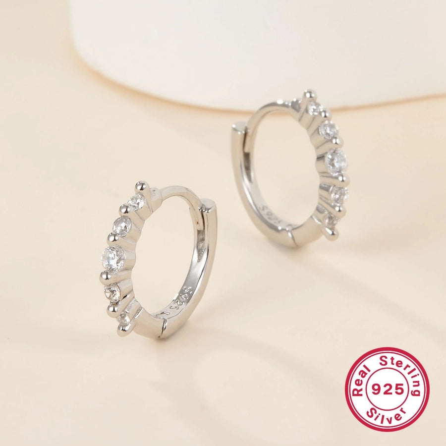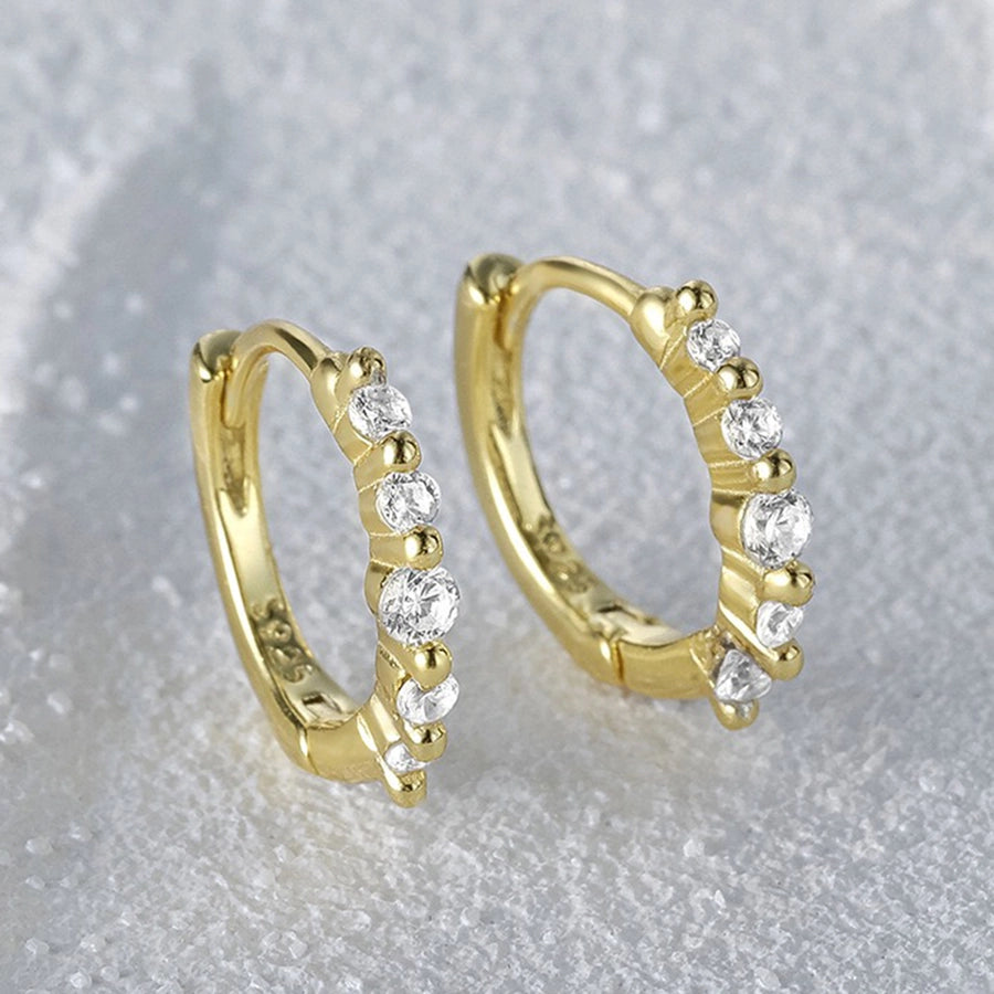 K Gold Plated White Gold Plated 925 Sterling Silver Zircon 925 Sterling Silver Earrings Geometric Hoop Earrings