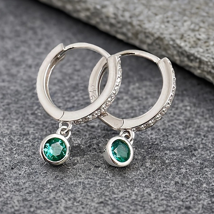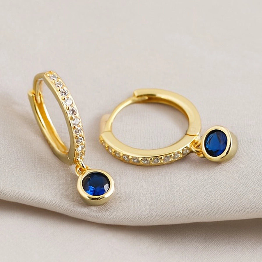 K Gold Plated White Gold Plated 925 Sterling Silver Zircon 925 Sterling Silver Earrings Geometric Round Drop Earrings