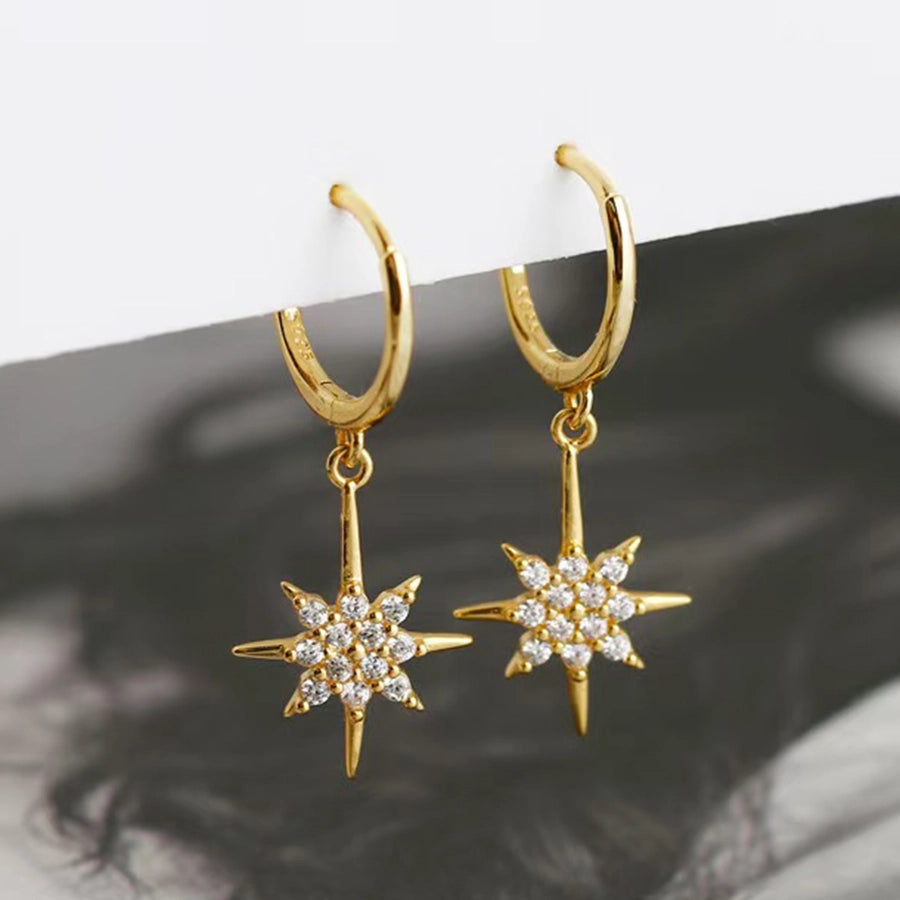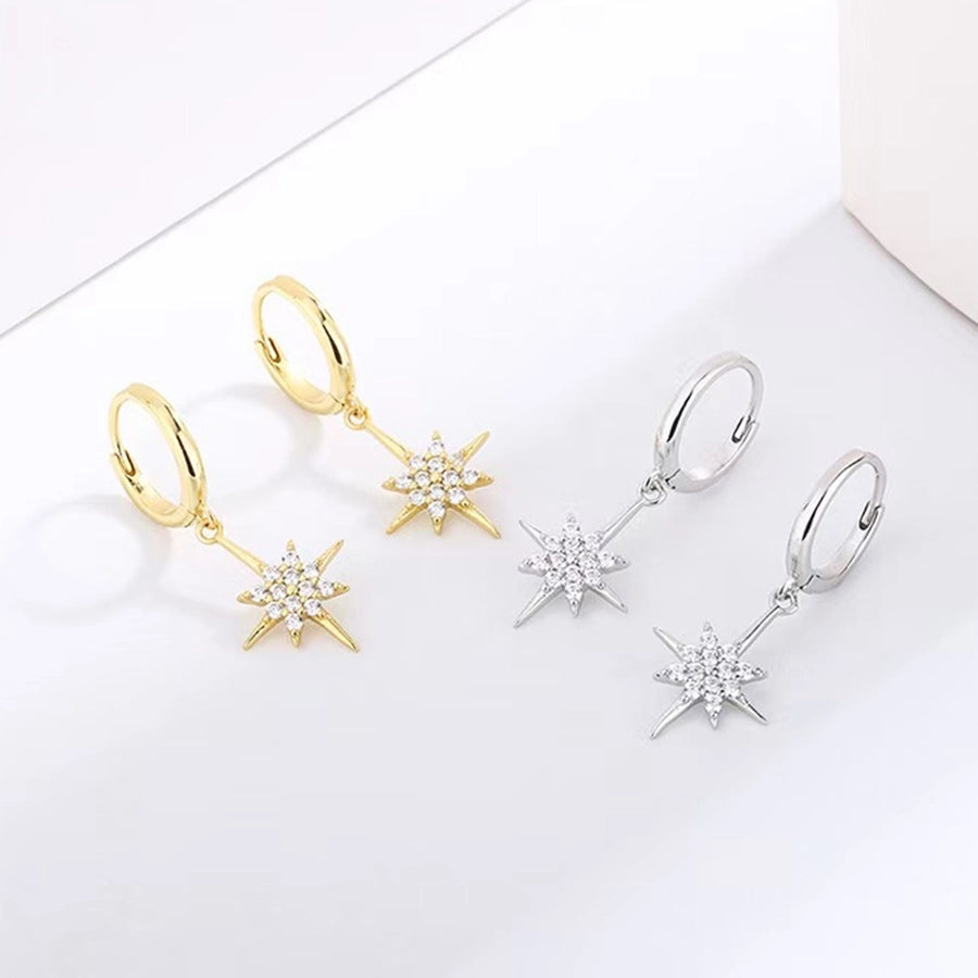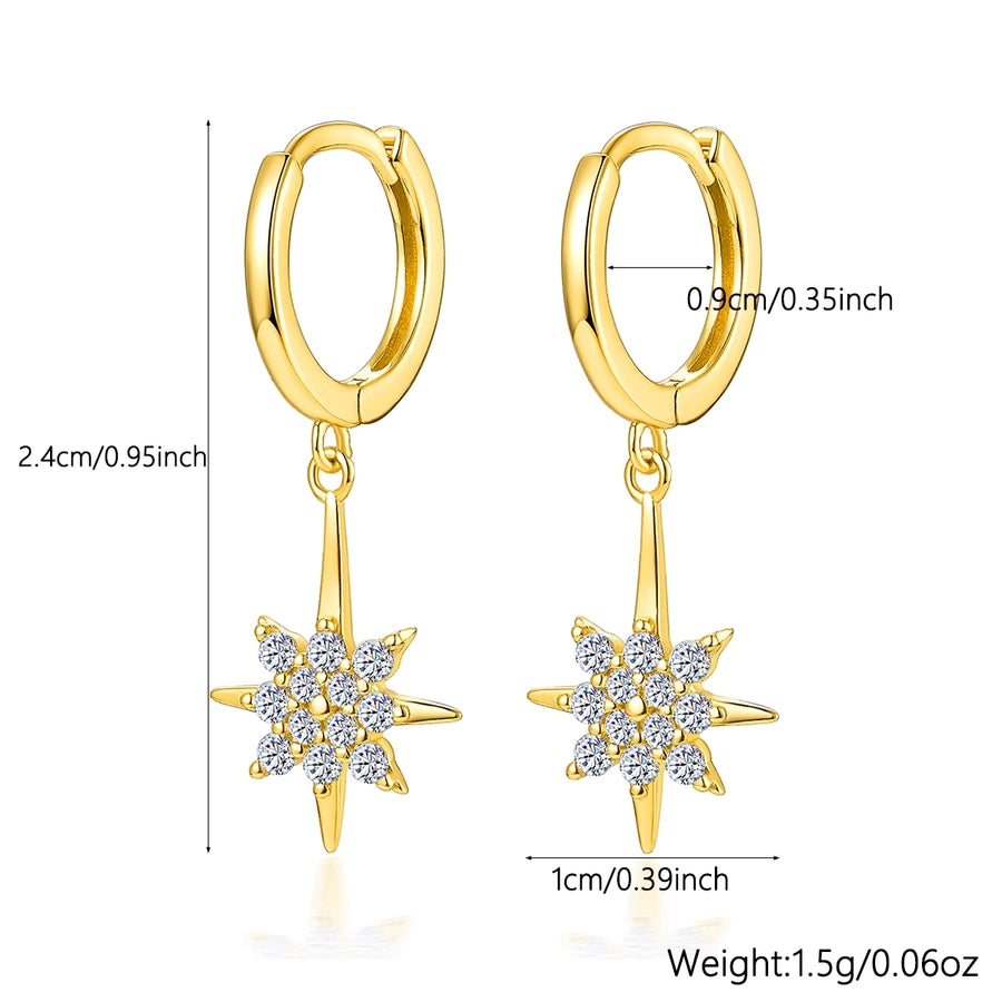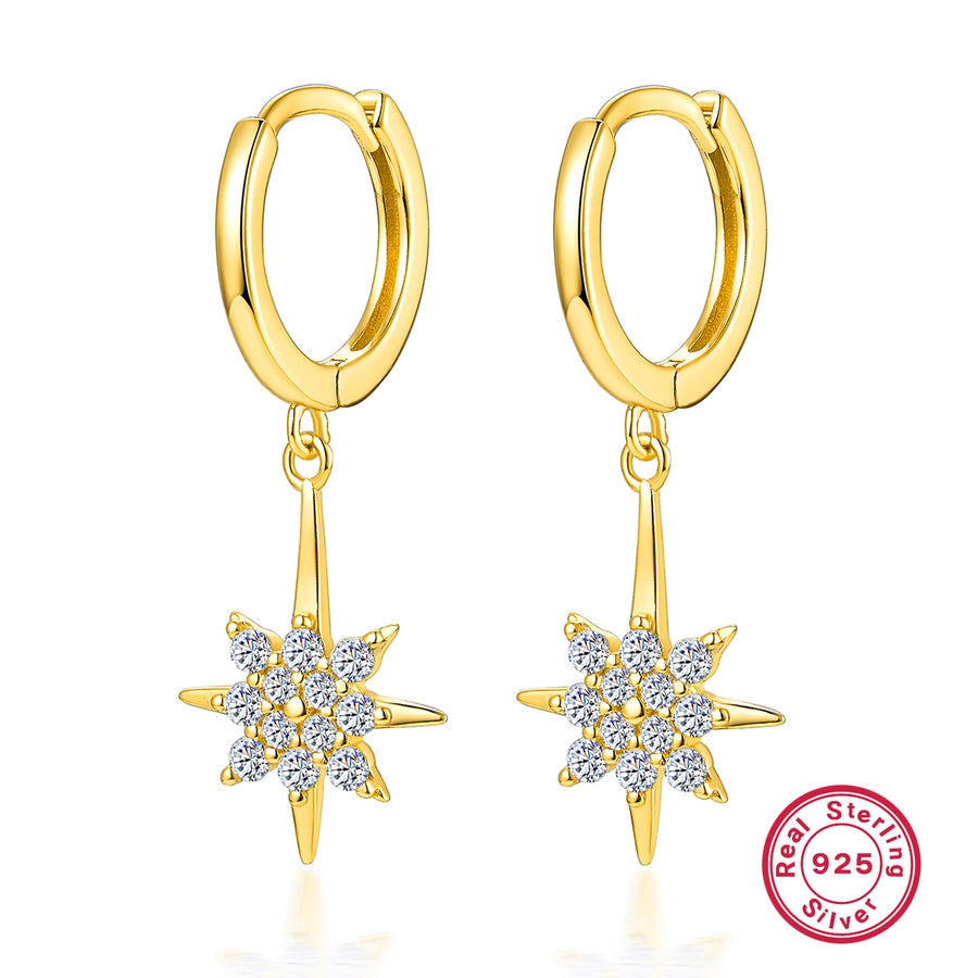 K Gold Plated White Gold Plated 925 Sterling Silver Zircon 925 Sterling Silver Earrings Star Drop Earrings