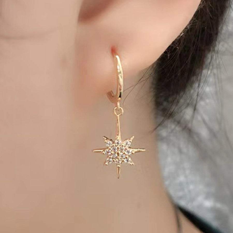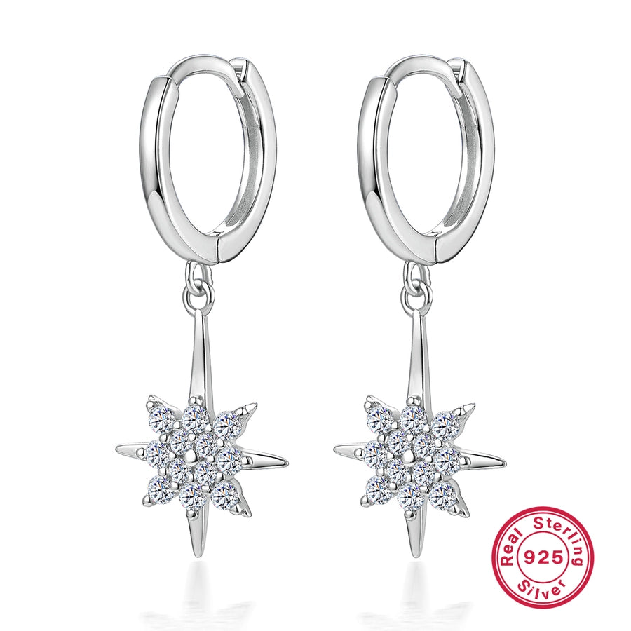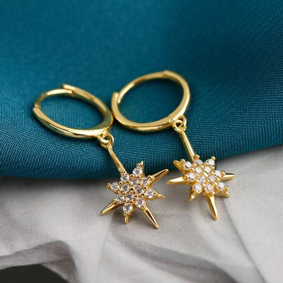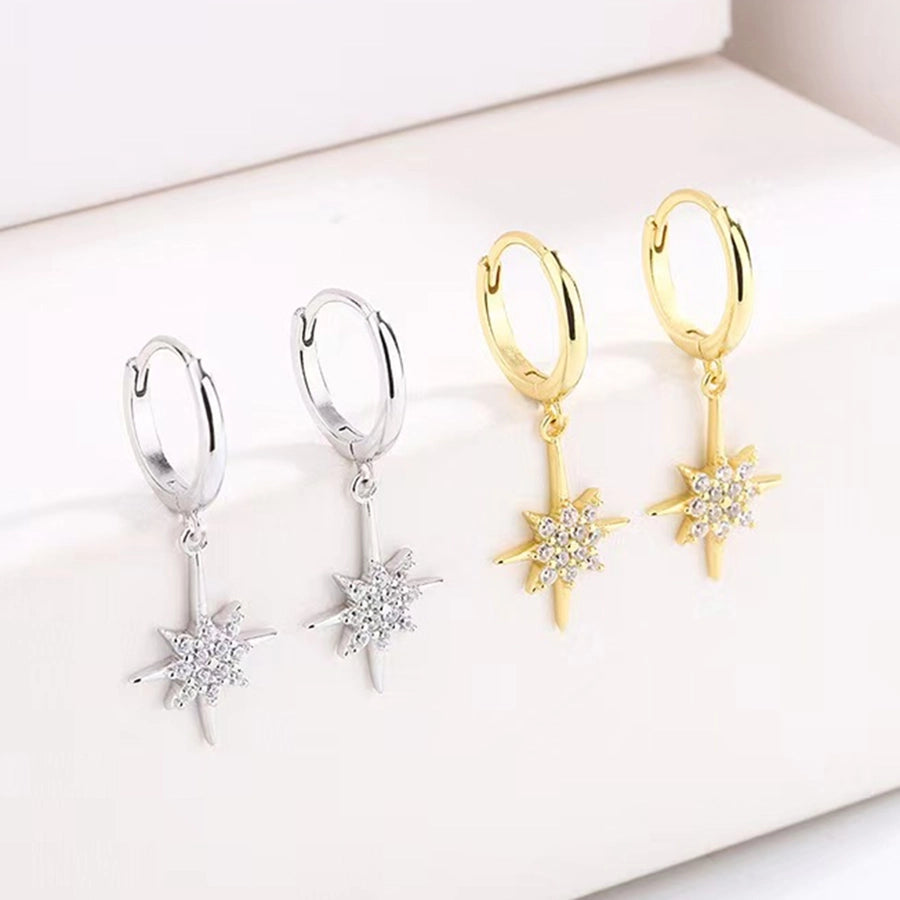 K Gold Plated White Gold Plated 925 Sterling Silver Zircon 925 Sterling Silver Earrings Star Drop Earrings