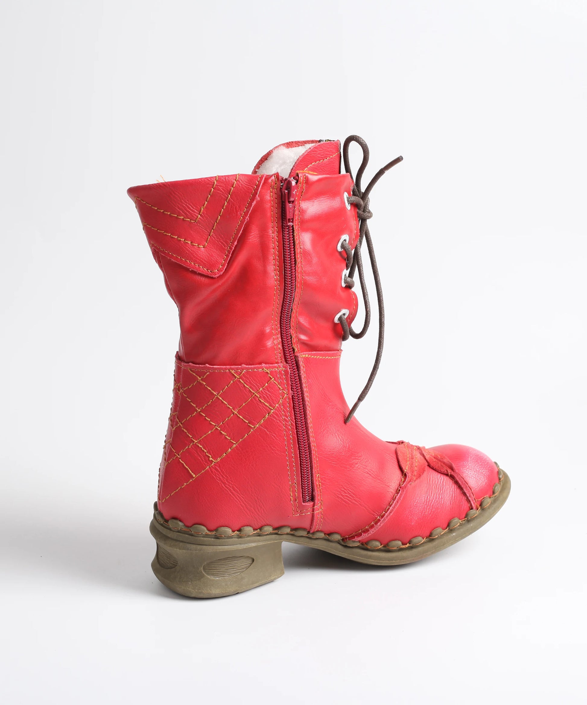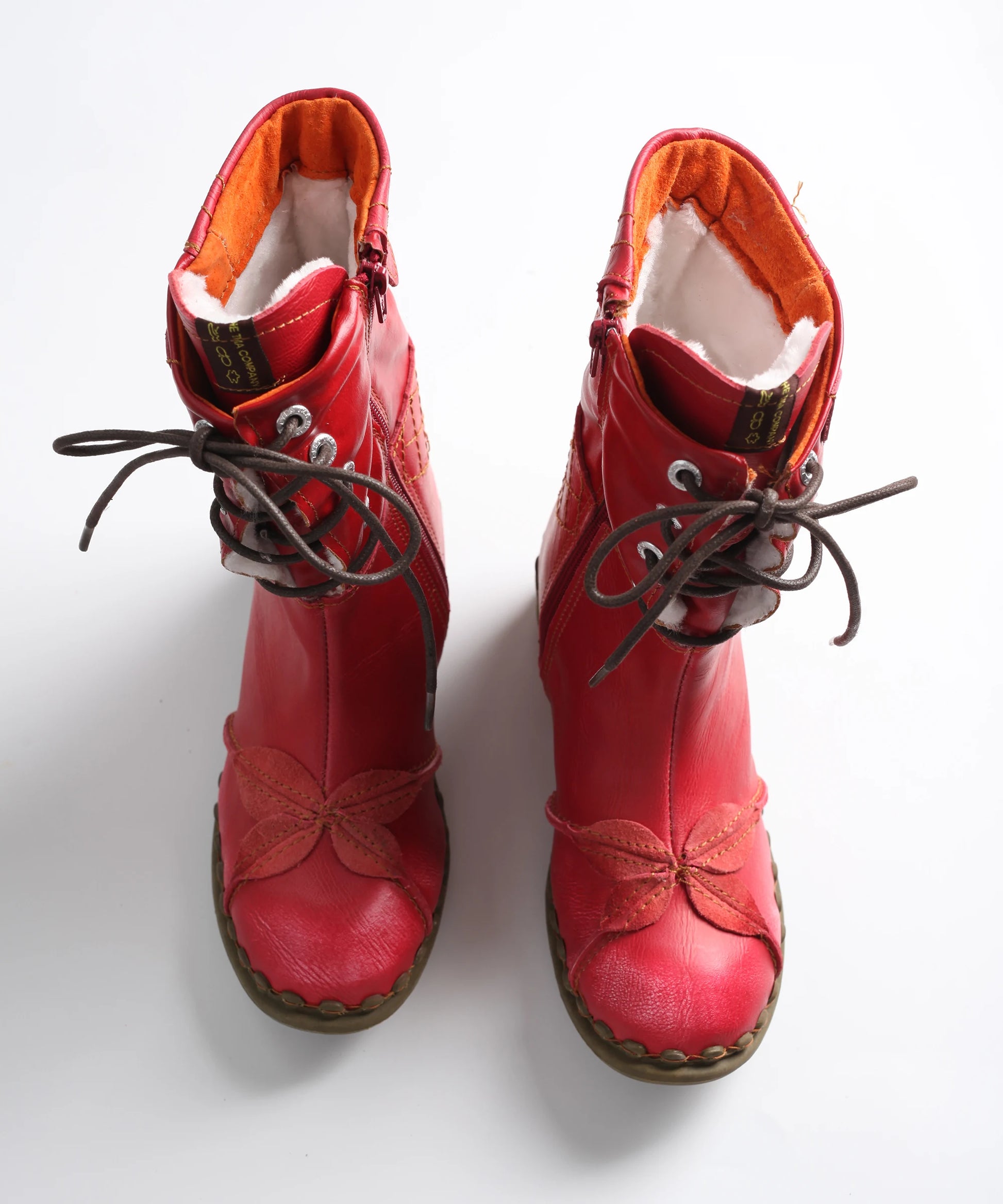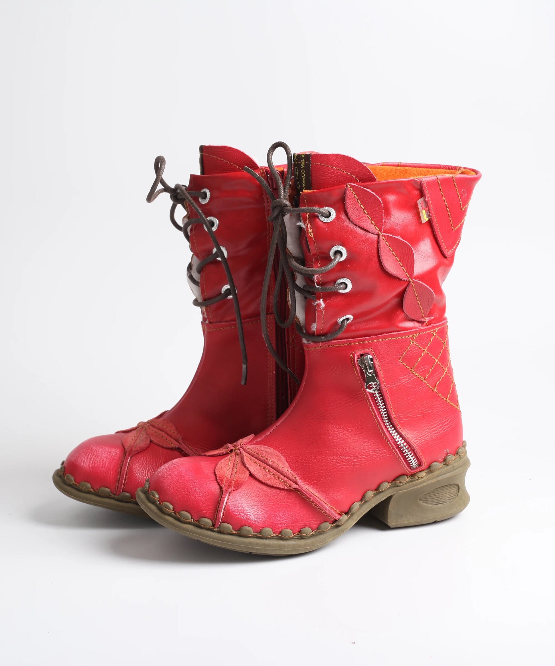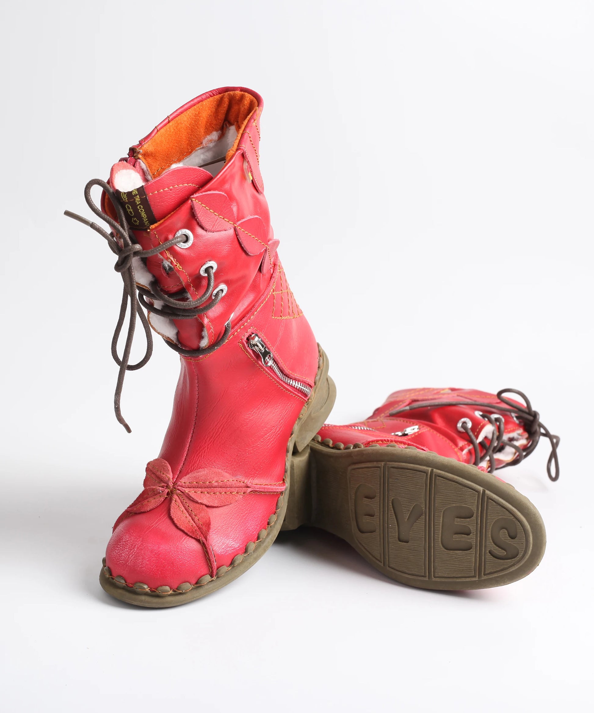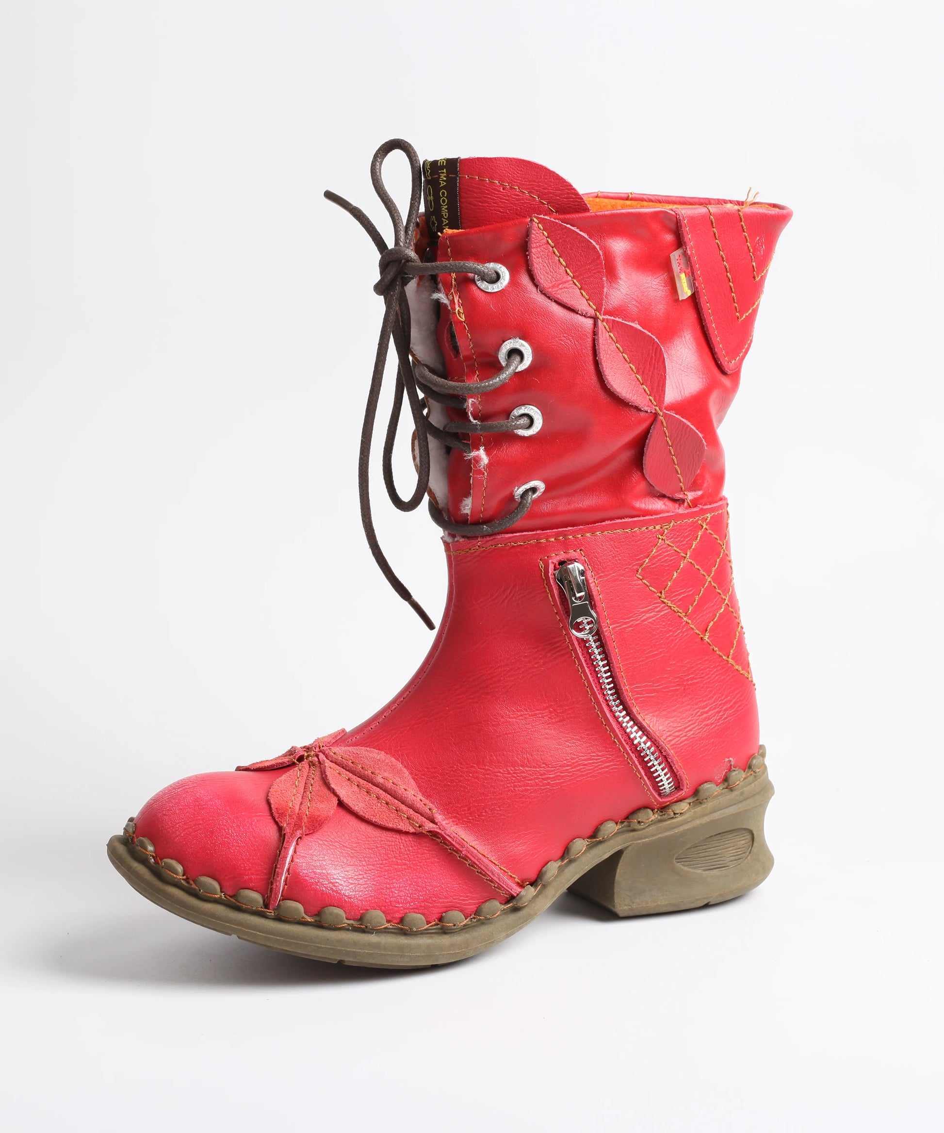 Crafted with the signature whimsical leaf accents you know and love, these boots bring a playful twist to practical footwear. Available in bold red, classic black, and icy white, they let you express your unique personality while keeping your toes toasty. The thoughtful side zipper makes slipping them on a breeze, while the lace-up front ensures a custom fit that feels as good as it looks.