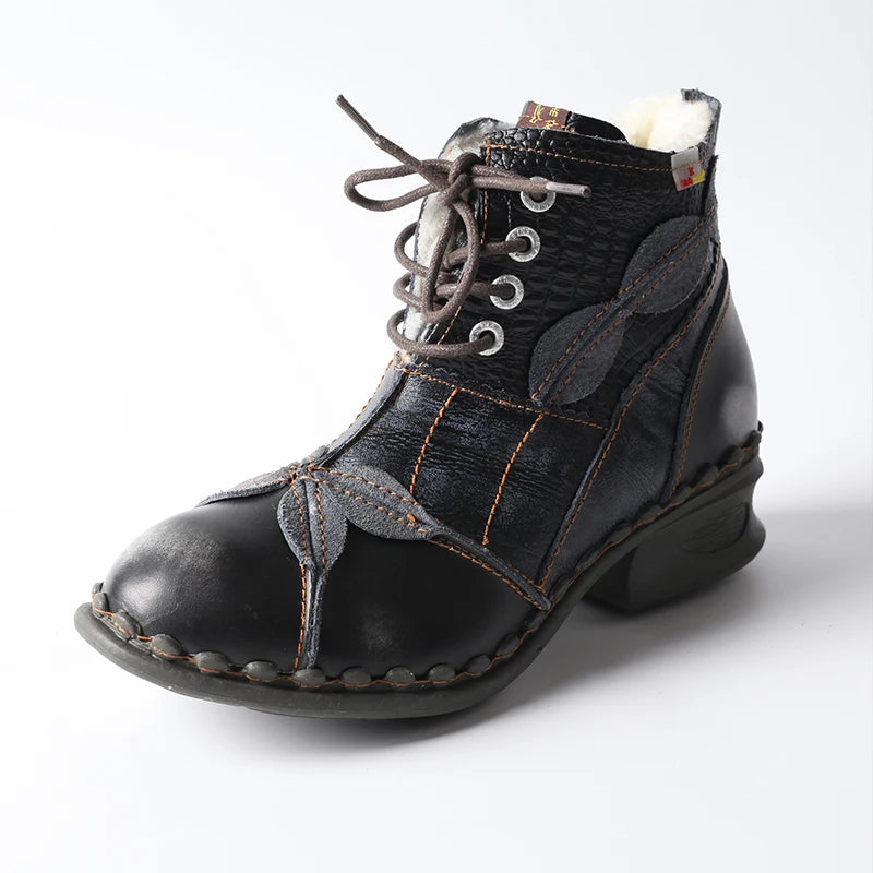Leafy Lace Snuggies: Cozy Winter Ankle Boots with Stylish Leaf Lovin'