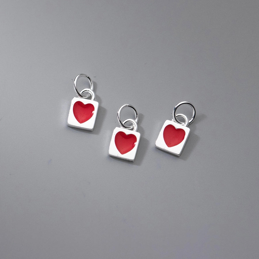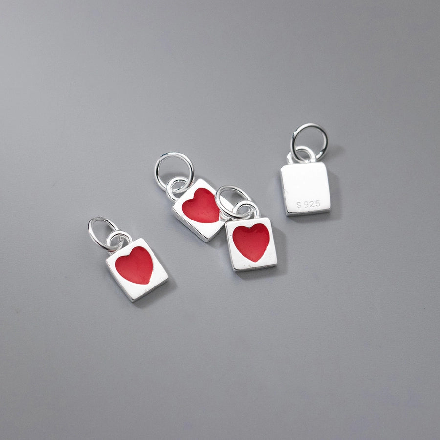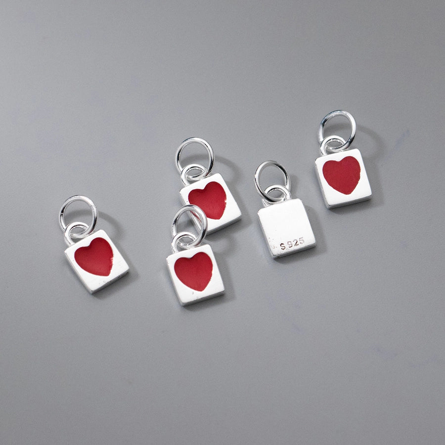 S925 Silver Electroplated Epoxy Love Square Plate Pendant Peach Heart Pendant DIY Bracelet Braid Rope Pendant Q0061