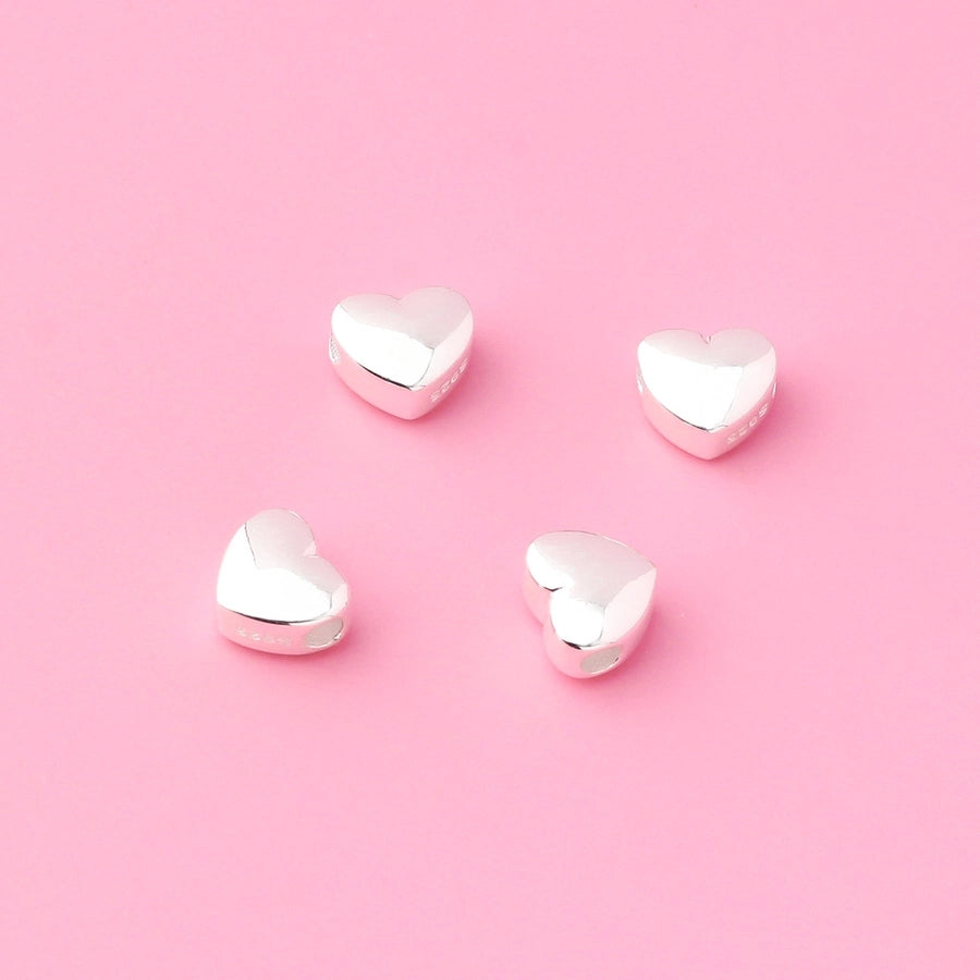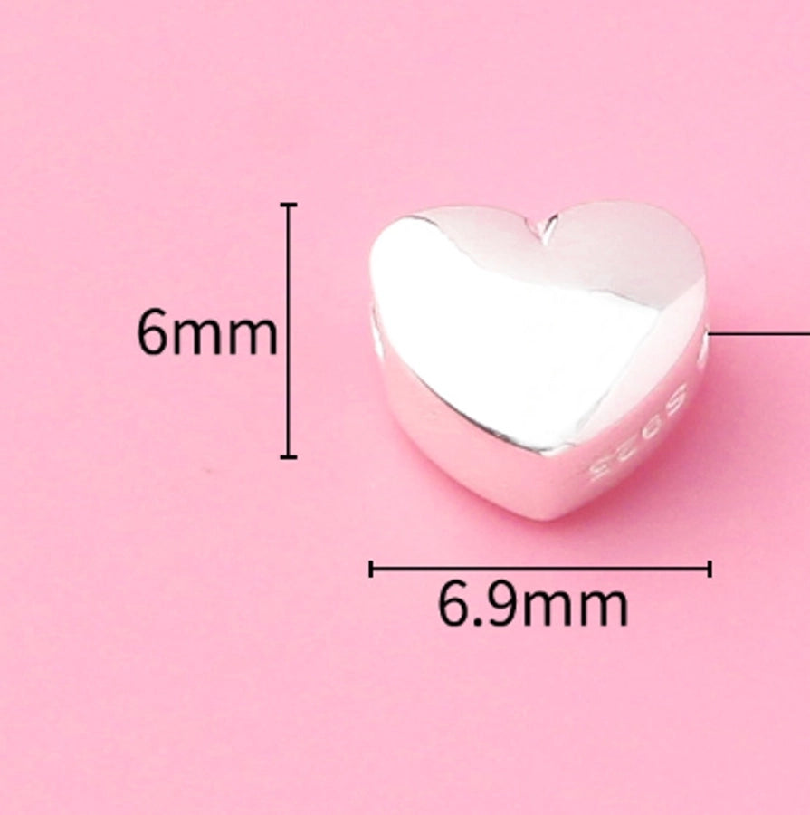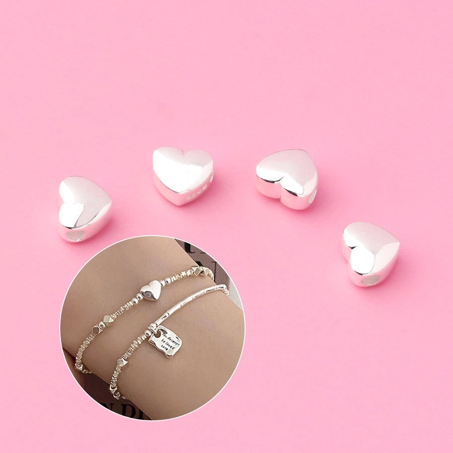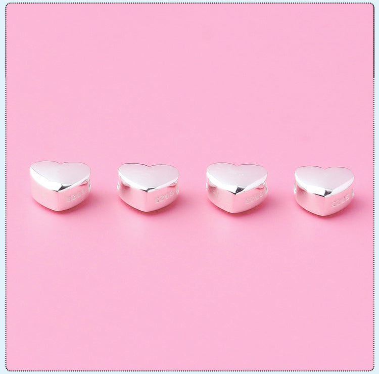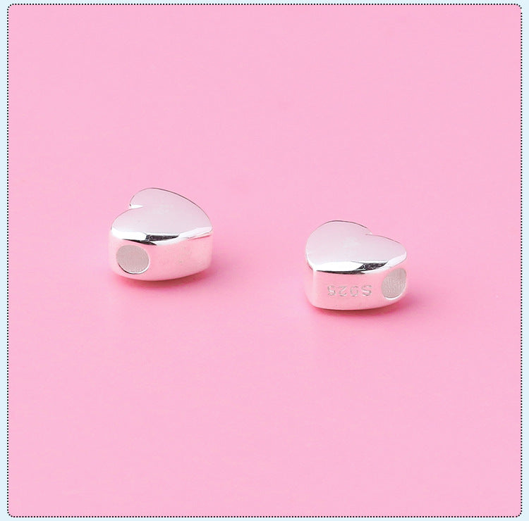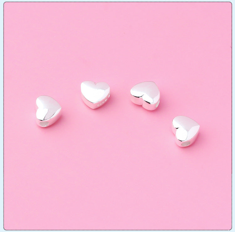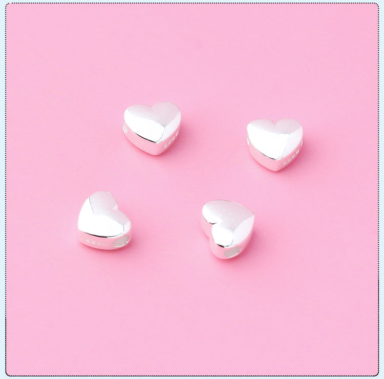 S925 Silver Prime Silver Solid Horizontal Glossy Heart-Shaped Spacer Beads Heart-Shaped Sliver Beads DIY Beaded Bracelet Silver Accessories