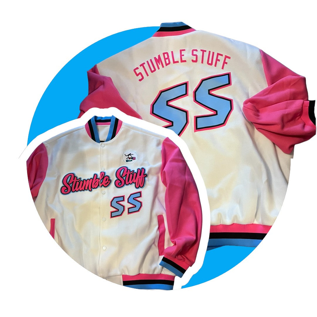 Step into the bold, colorful world of Stumble Stuff with Stumble Stuff’s Pastel Punch Retro Varsity Jacket—the must-have piece that’s equal parts retro charm and modern flair. This jacket is more than just a statement—it’s an invitation to embrace your individuality and make this brand a part of your personal style story.