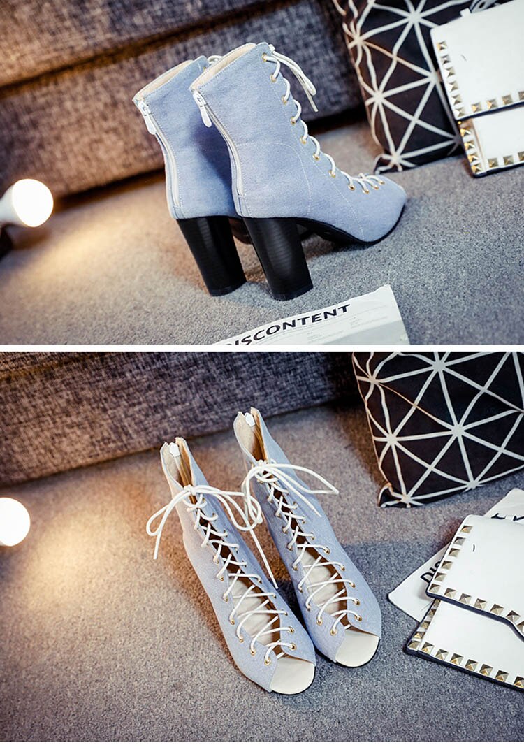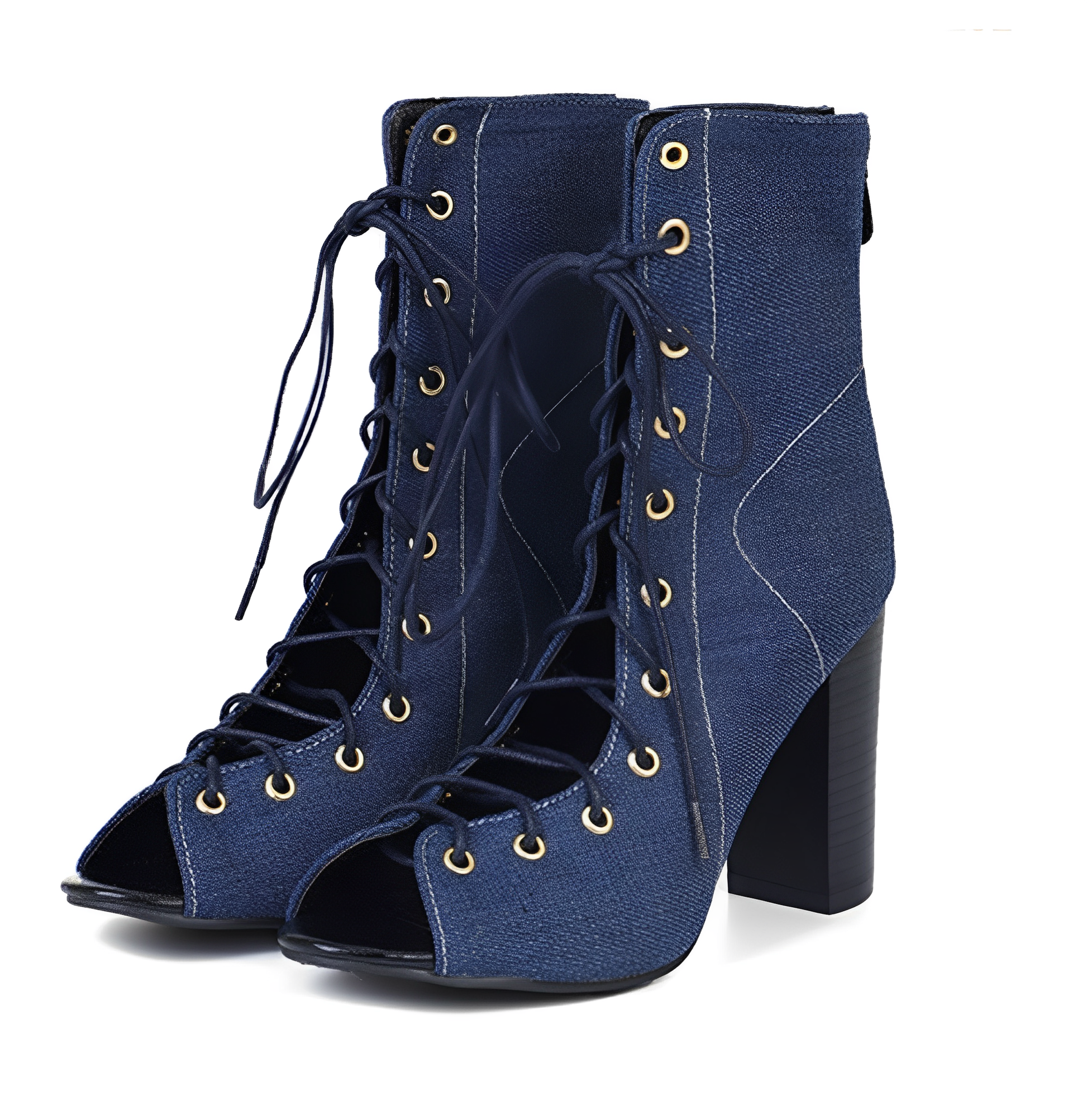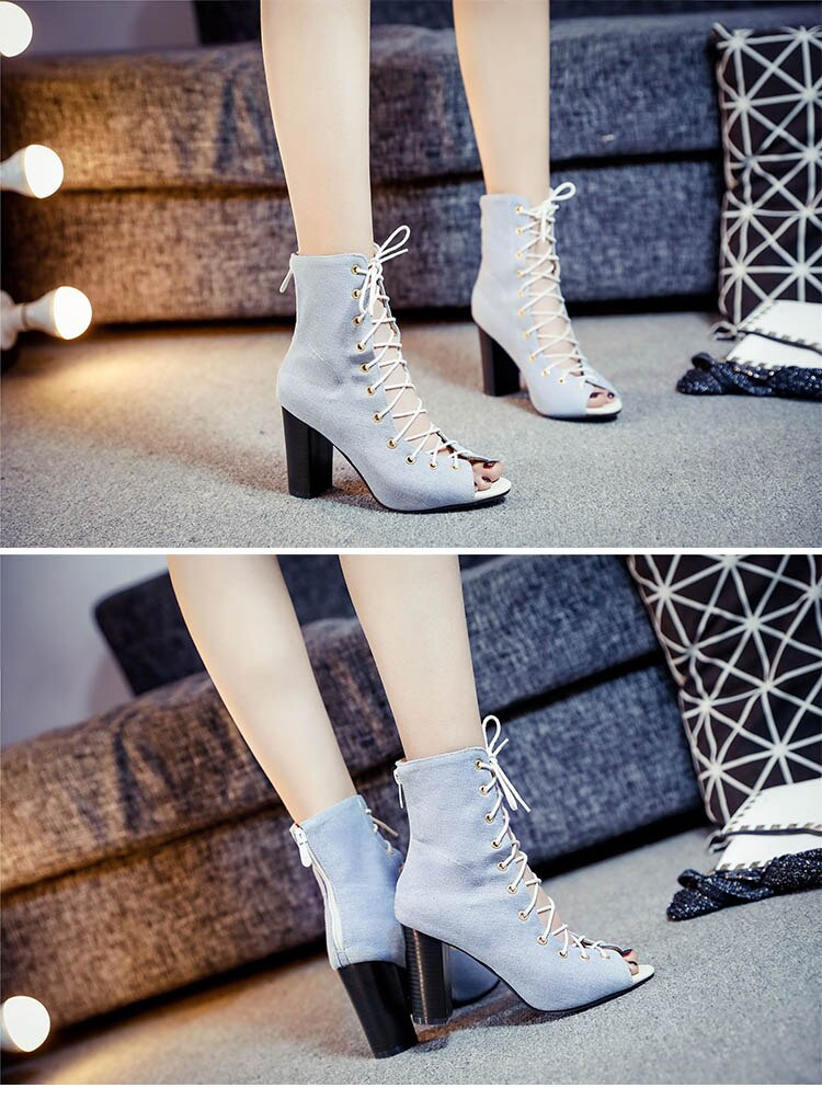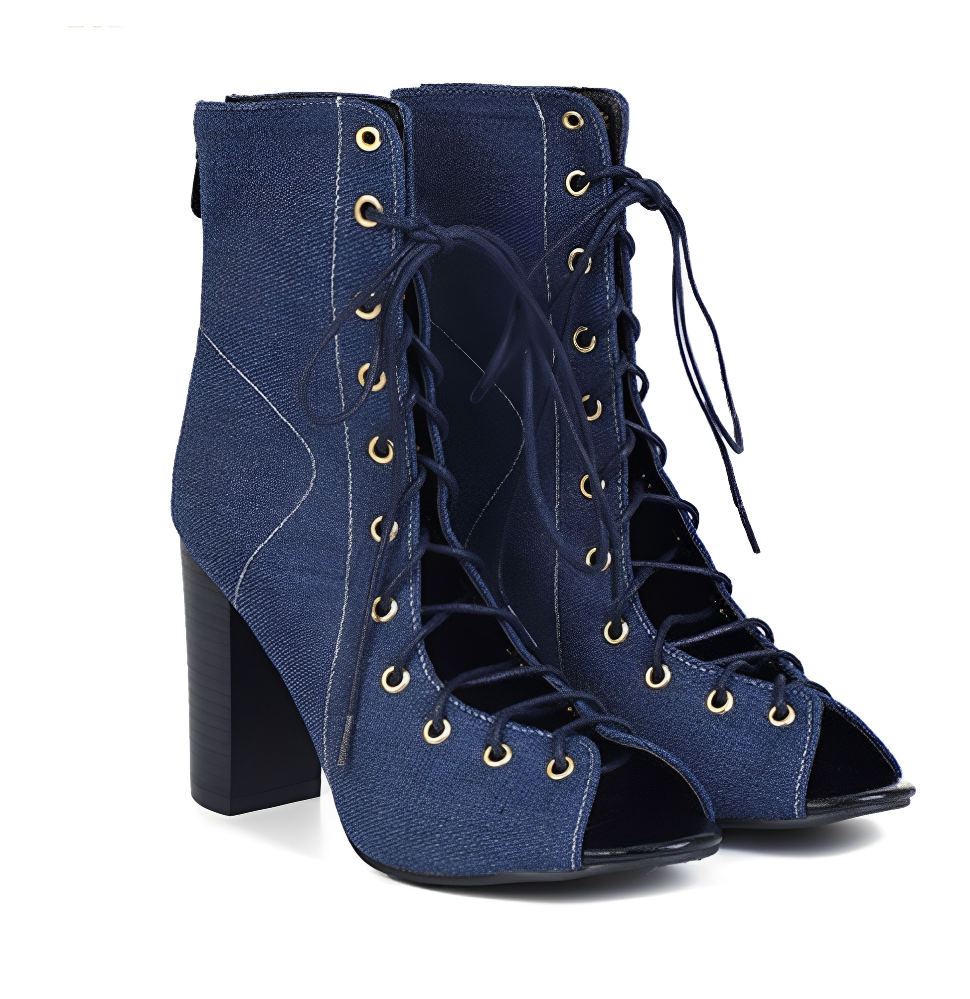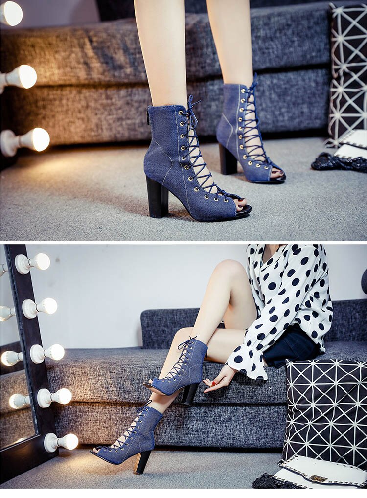 Summer Chic Denim Boots Sandals - Lace-Up Ankle Boots with Peep Toe Design