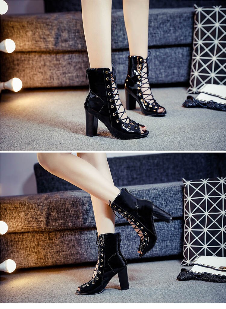 Step into the season with our Summer Chic Denim Boots Sandals, a must-have addition to your wardrobe! These lace-up ankle boots feature a stylish peep-toe design that adds a touch of sexy sophistication to any outfit.