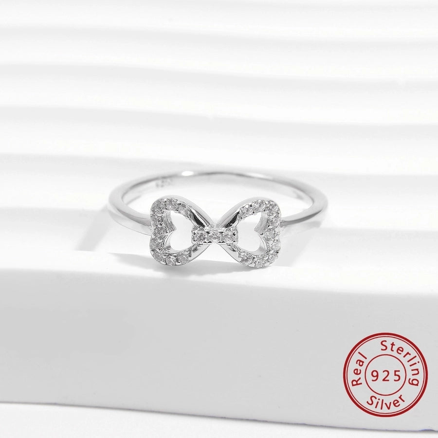 White Gold Plated 925 Sterling Silver Zircon Bow Knot Rings 925 Sterling Silver Rings