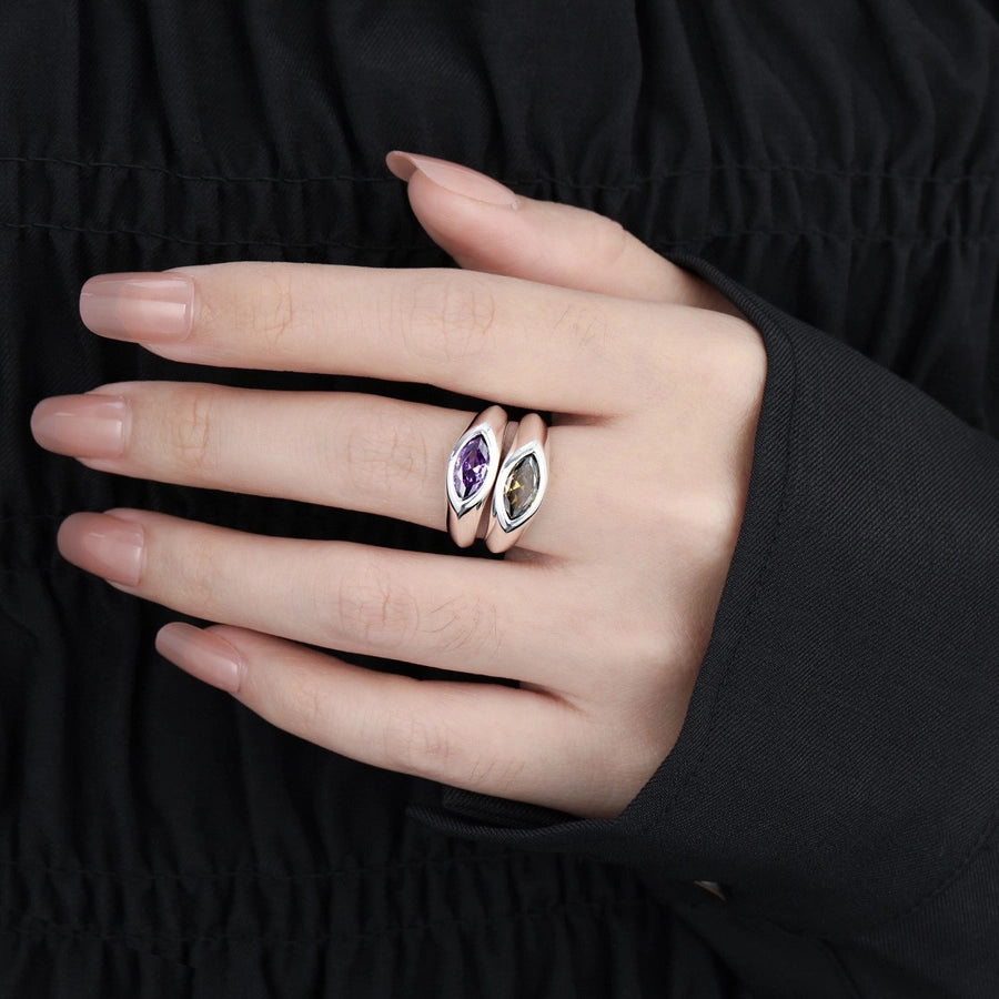 White Gold Plated 925 Sterling Silver Zircon Geometric Rings 925 Sterling Silver Rings