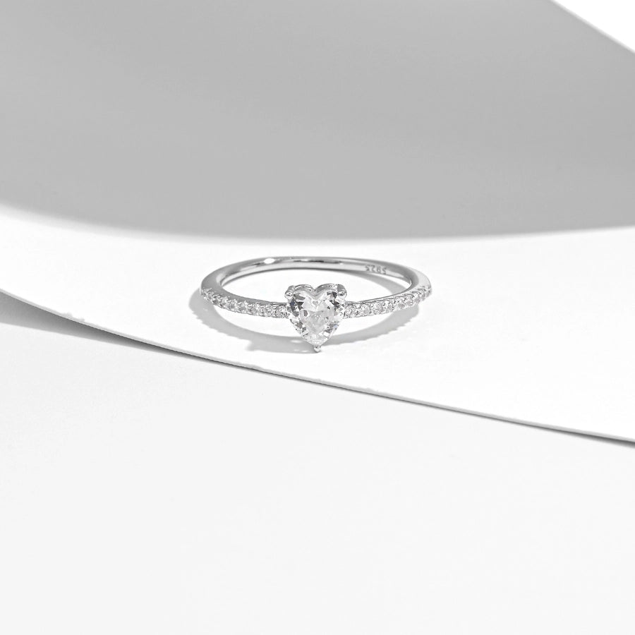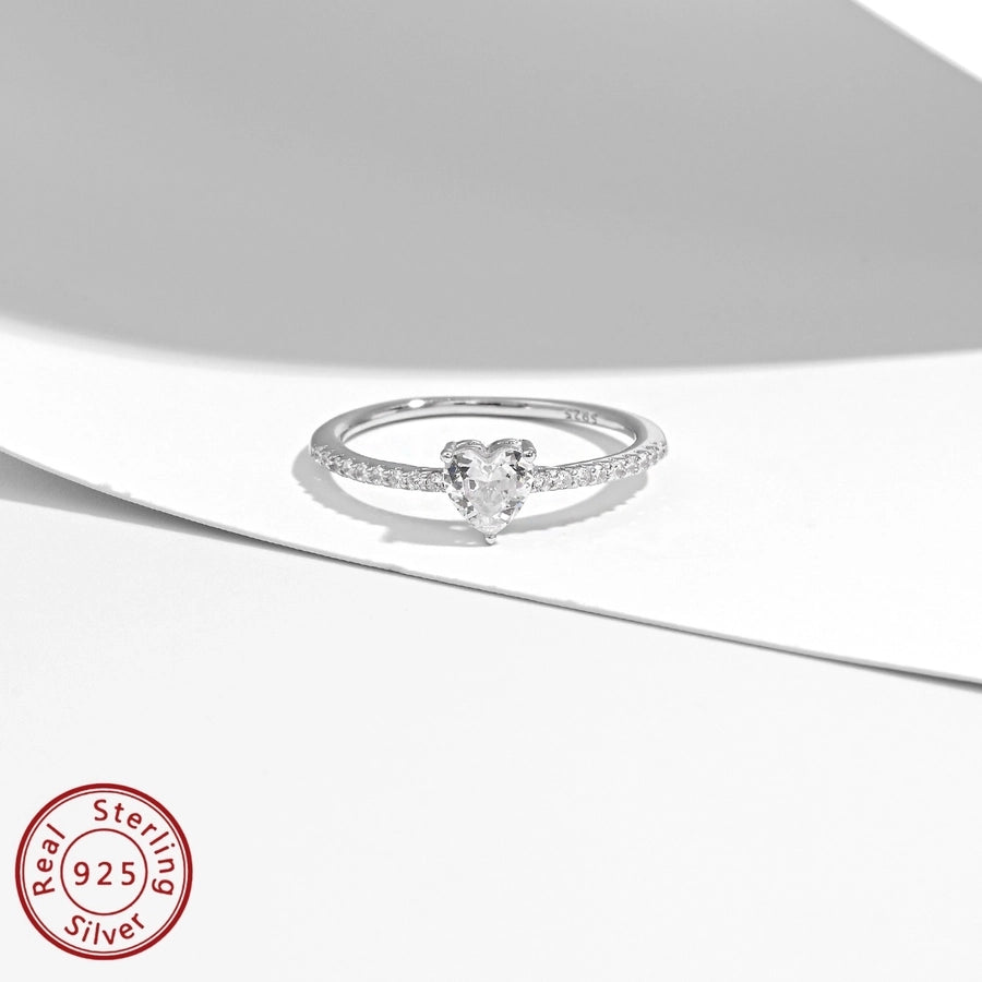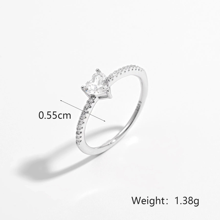 White Gold Plated 925 Sterling Silver Zircon Heart Shape Rings 925 Sterling Silver Rings