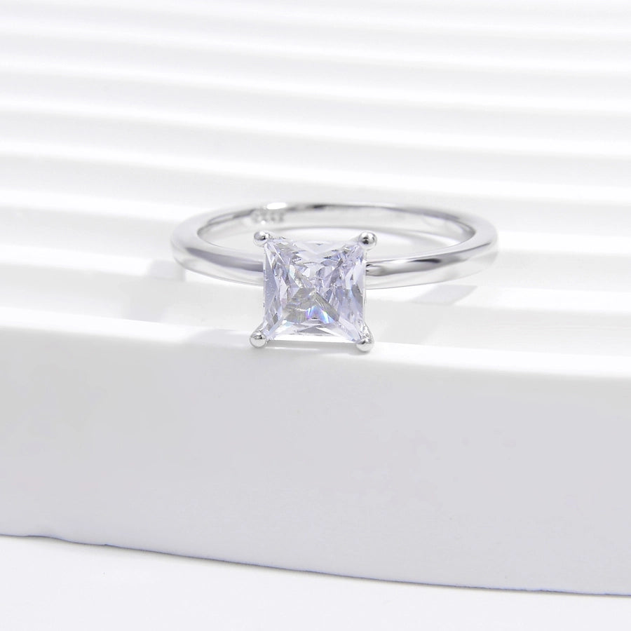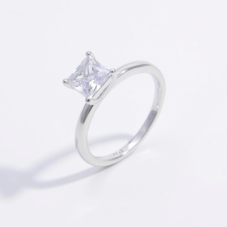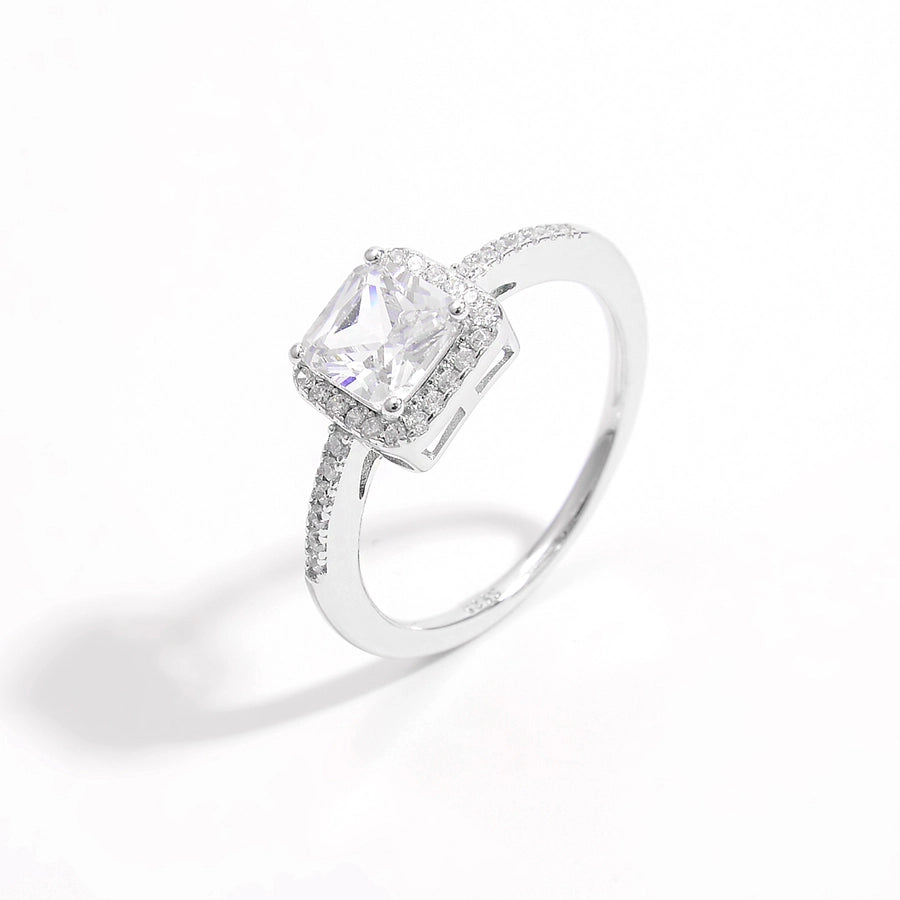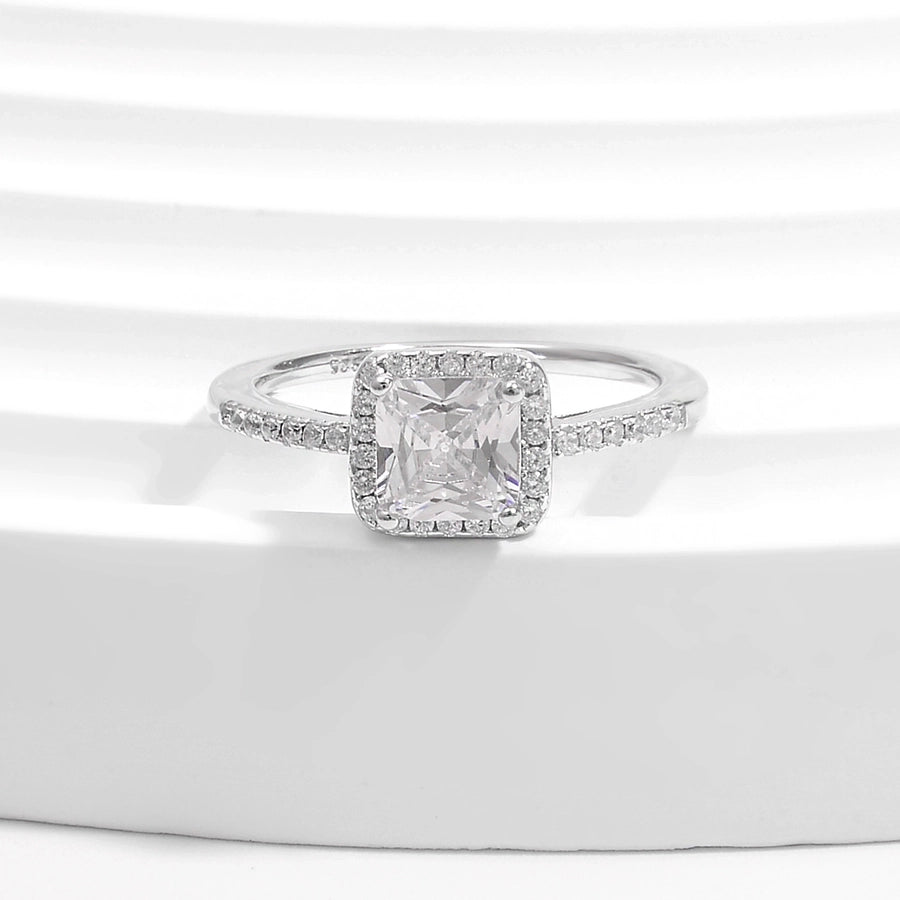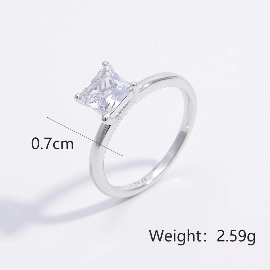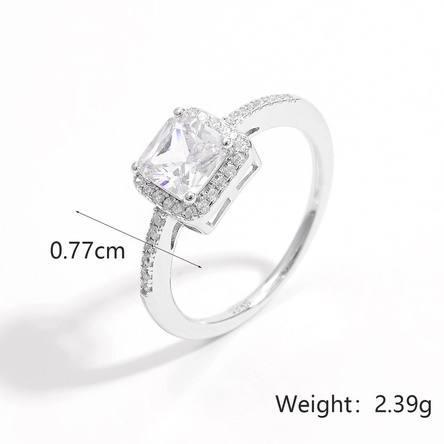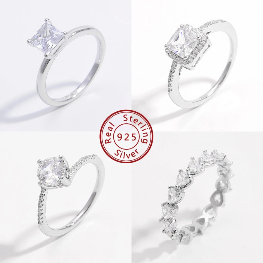 White Gold Plated 925 Sterling Silver Zircon Square Heart Shape Rings 925 Sterling Silver Rings