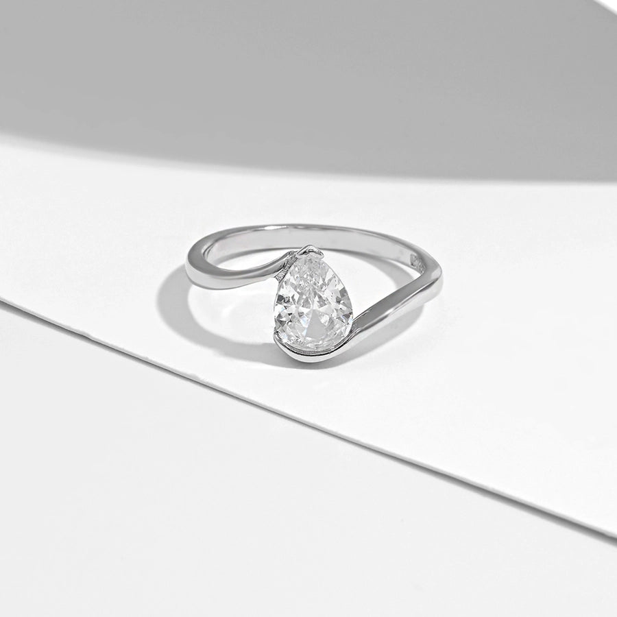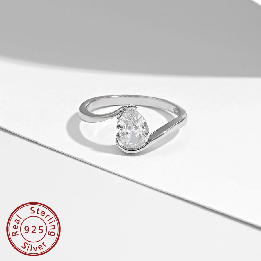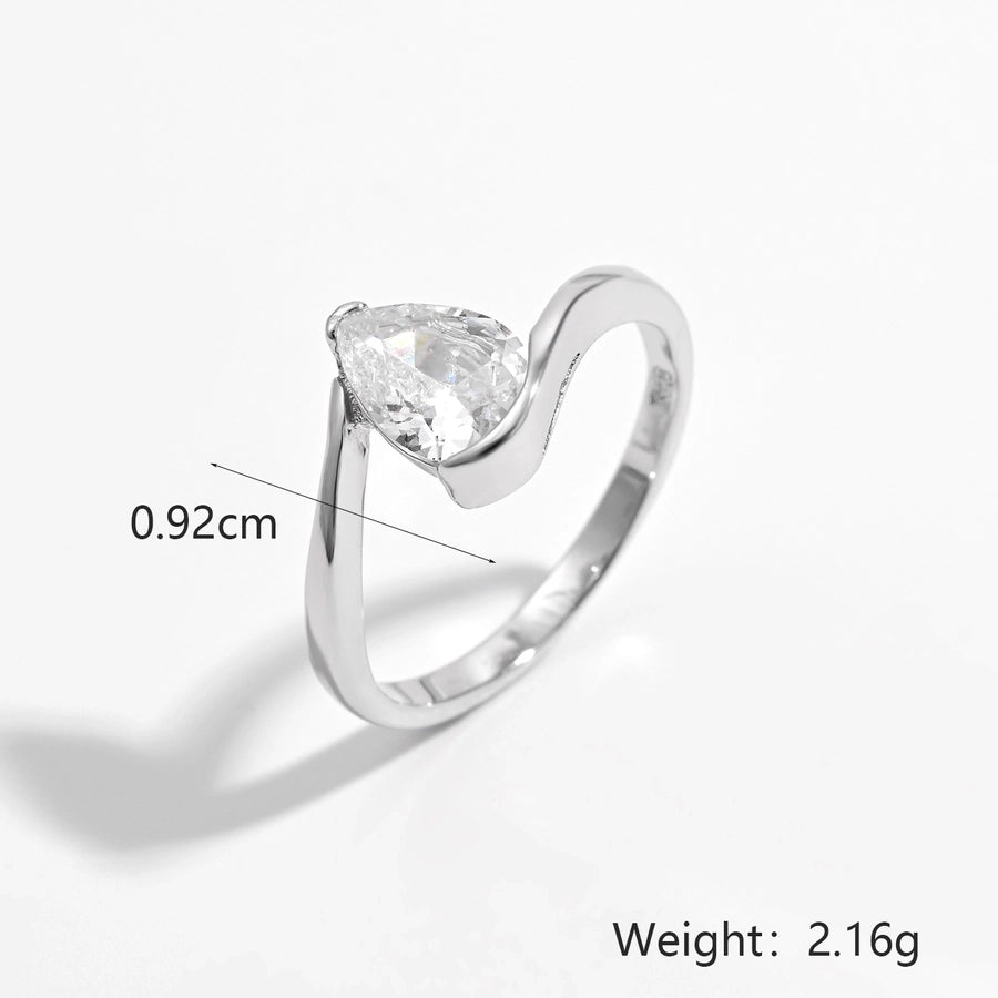 White Gold Plated 925 Sterling Silver Zircon Water Droplets Rings 925 Sterling Silver Rings