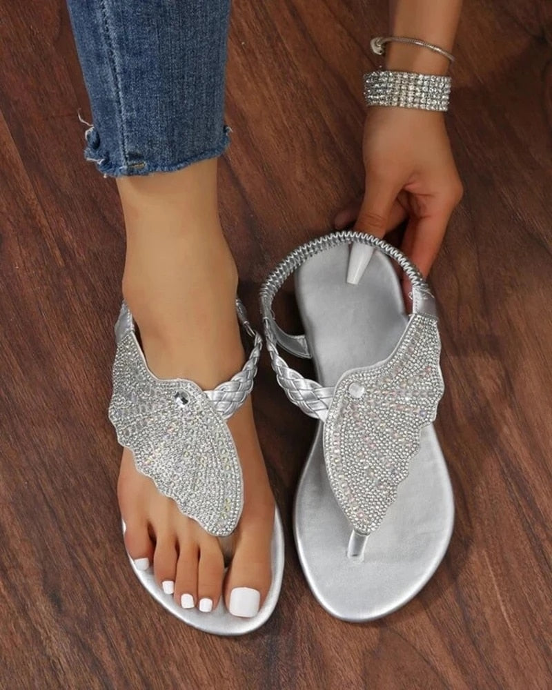 Women's Bohemian Style Half Shell Rhinestone Summer Beach Sandals