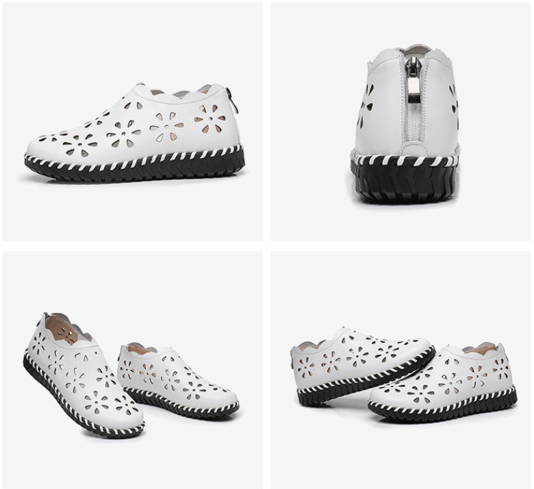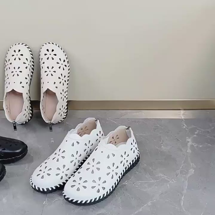 These high-quality genuine leather shoes boast a stunning pressed flower pattern on the exterior that adds an air of elegance to any ensemble. Their flexible and lightweight design provides all-day comfort while their slip-resistant outsole provides safety and stability with every step.
