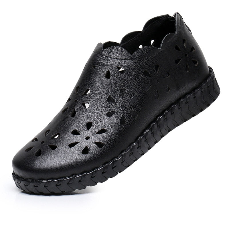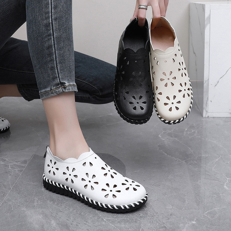 Women's Genuine Leather Flower Pressed Print Flexible Lightweight Sand Shoes