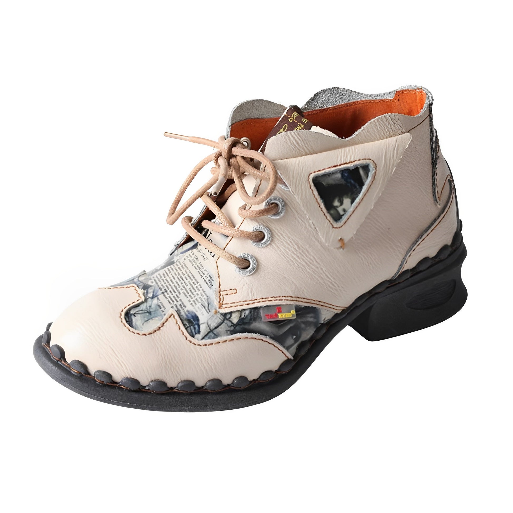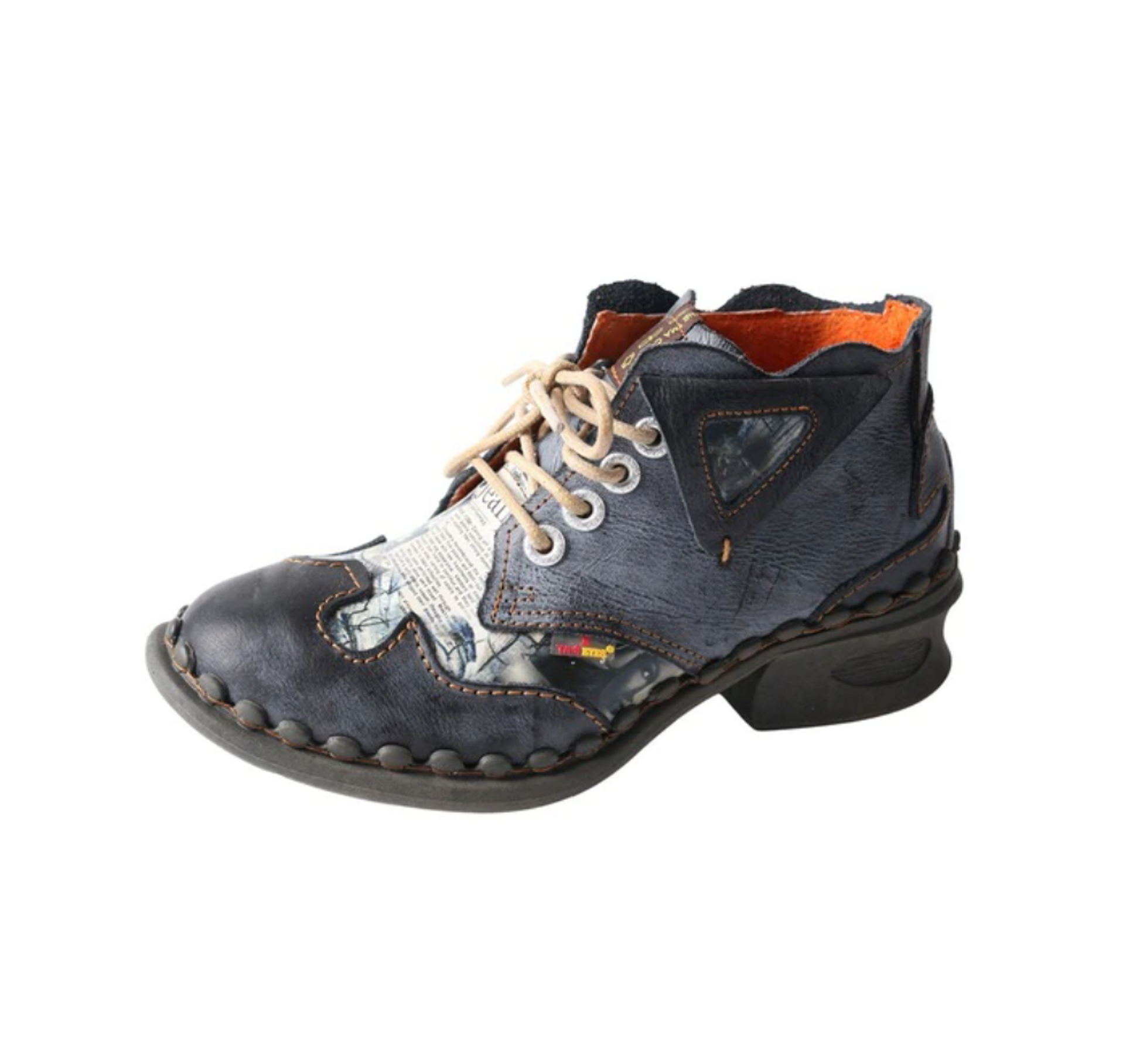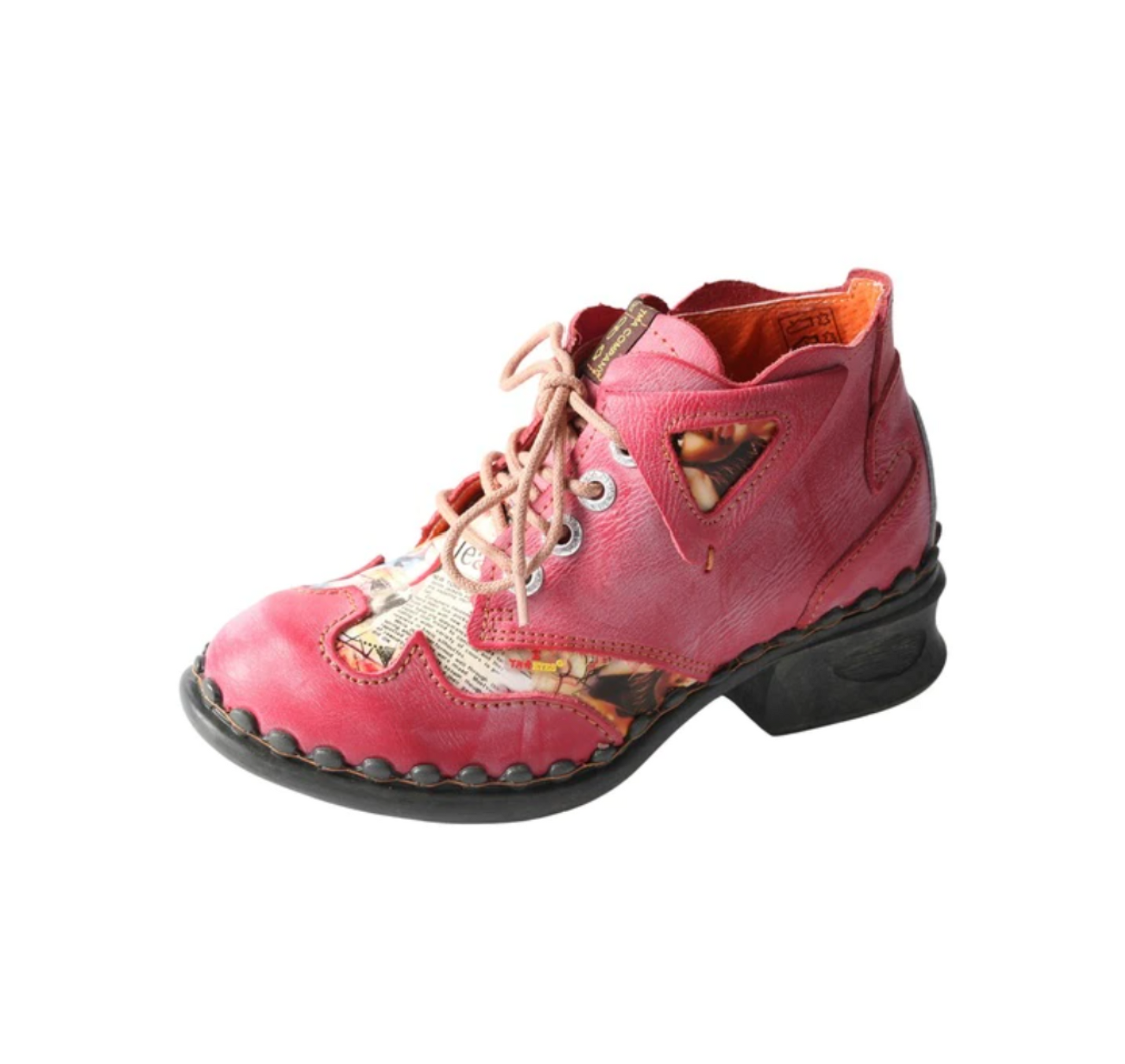 Women's Hand Stitched Leather Newspaper Print Ankle | Brogue Durable Comfortable Unique Short Boot | 4 Colors | Great Gift