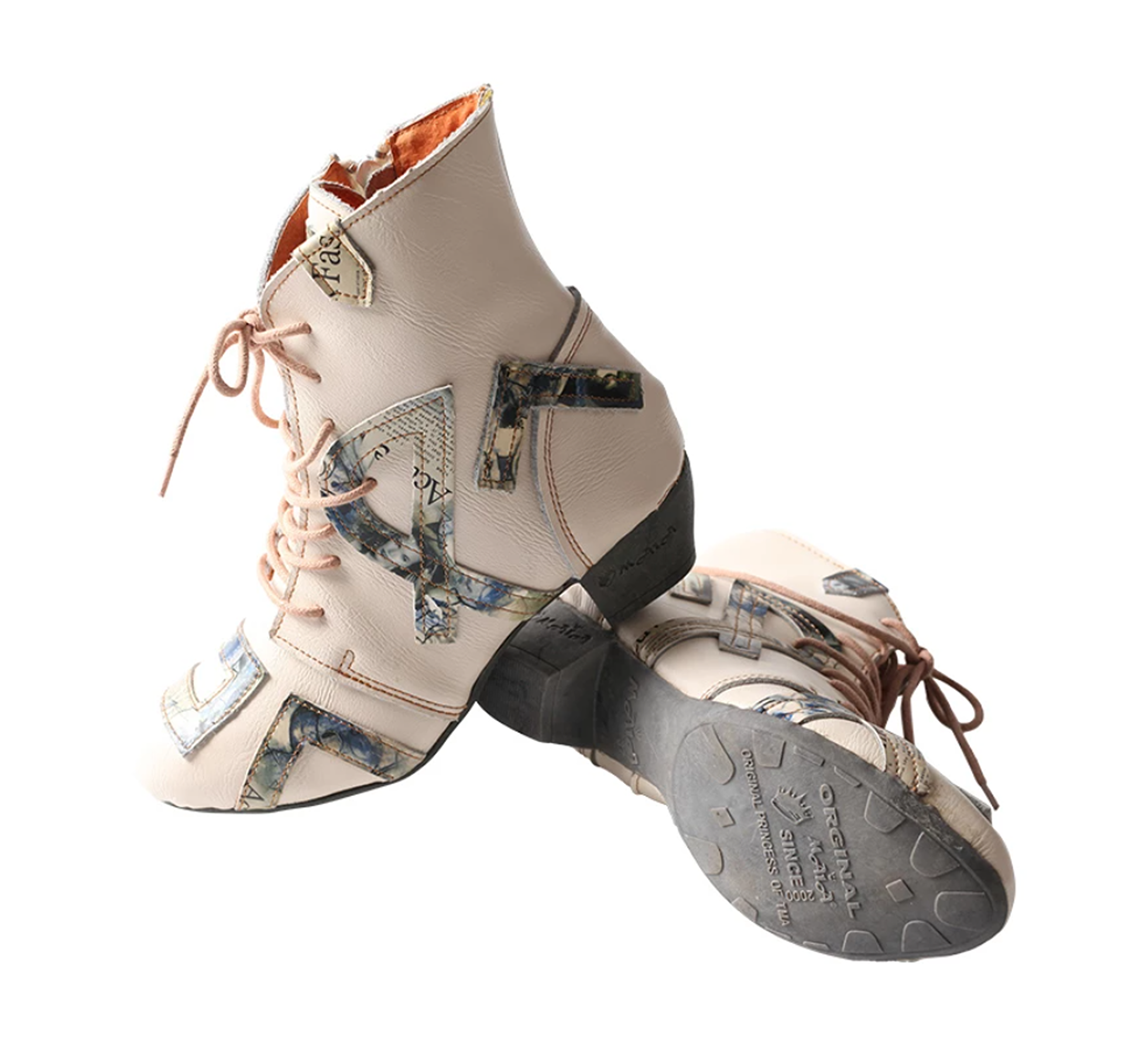 Women's Leather Applique Style Short Brogue Ankle Boot