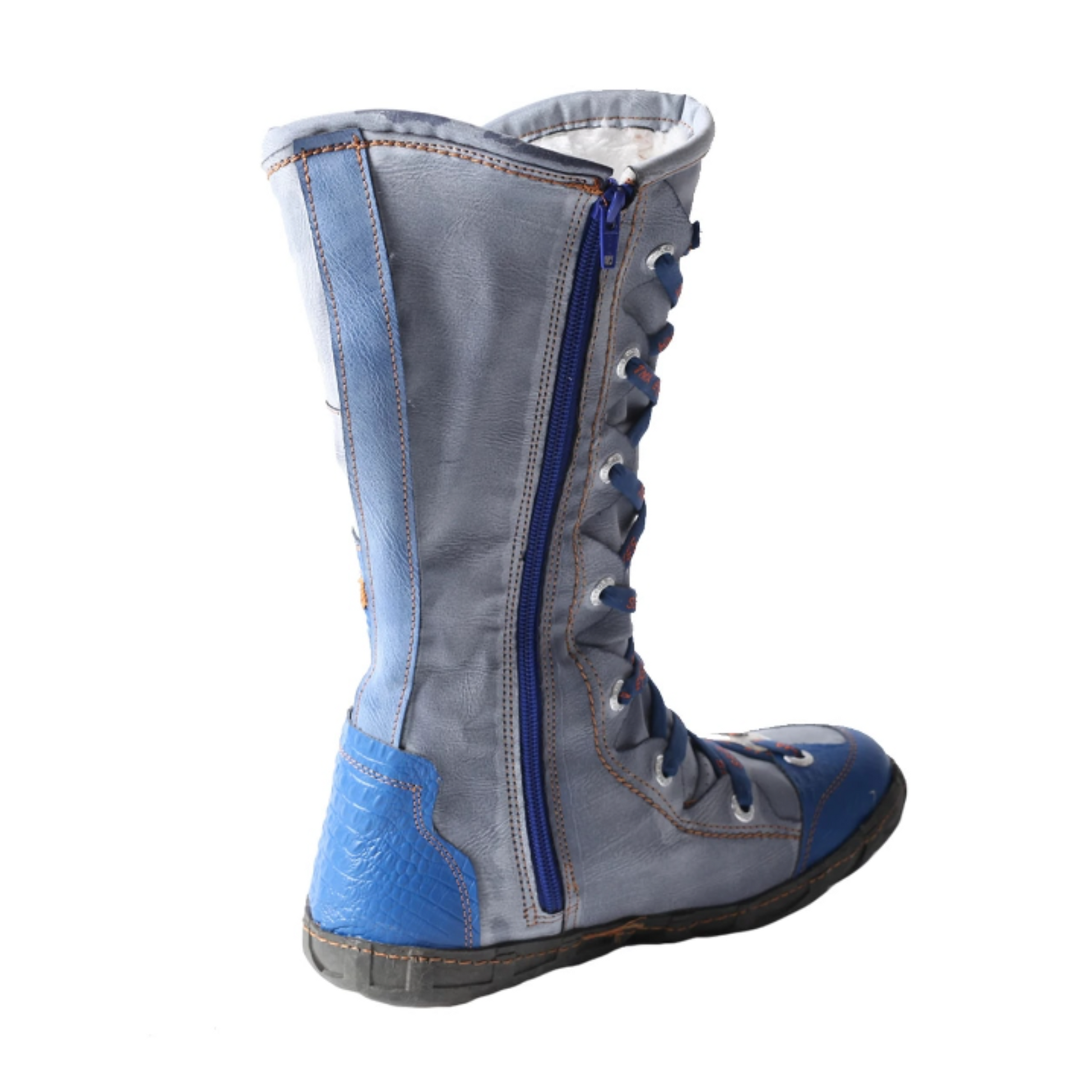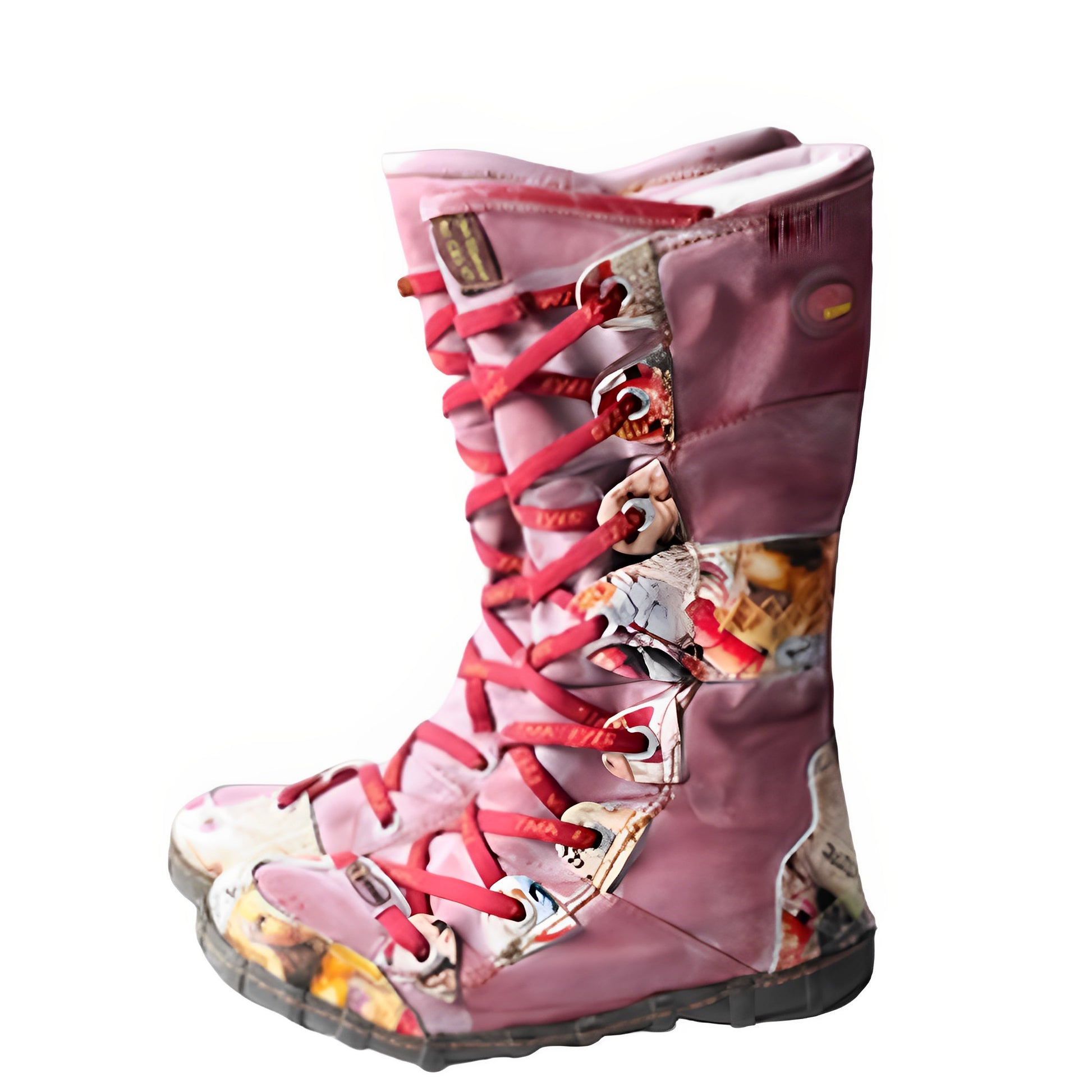 Women's Leather Faux Fur Lining Long Washed Contrast-Stitched Water Resistant Fall/Winter Boots